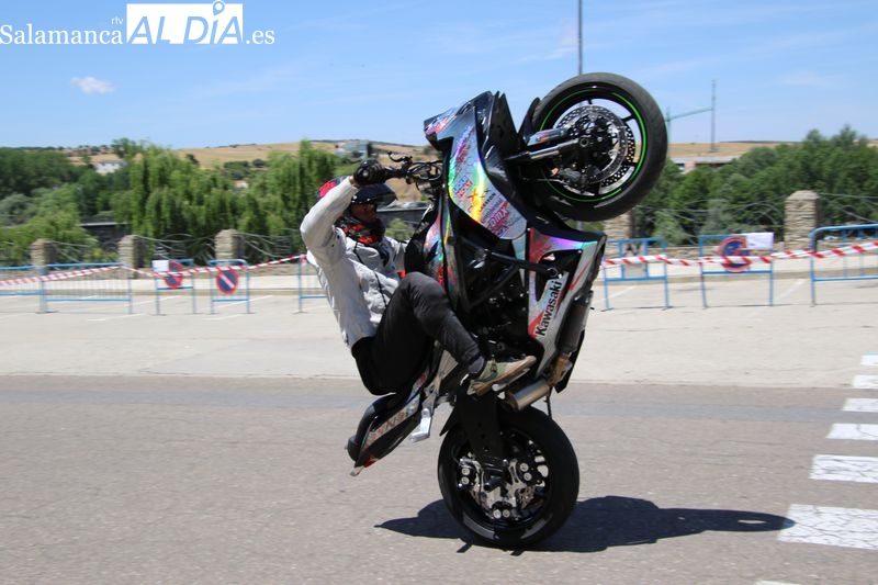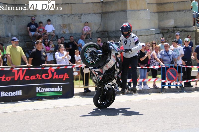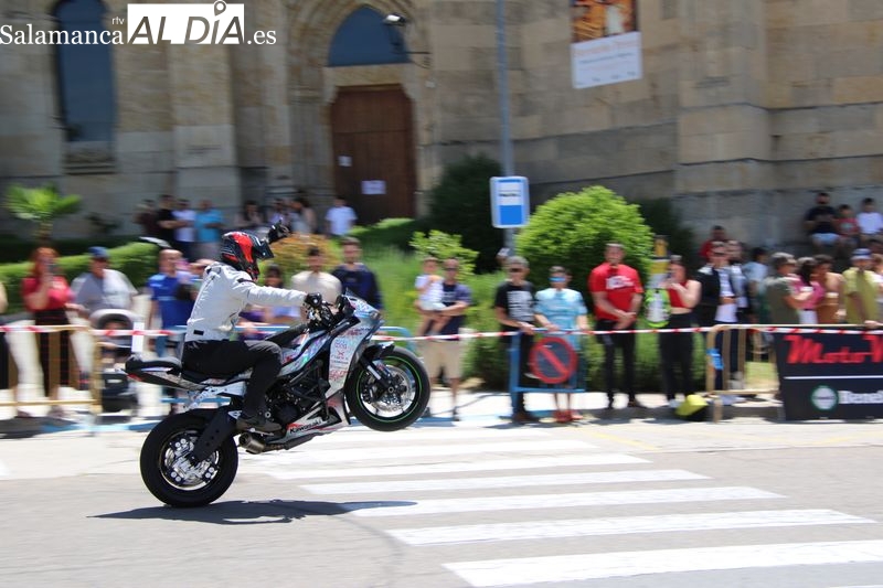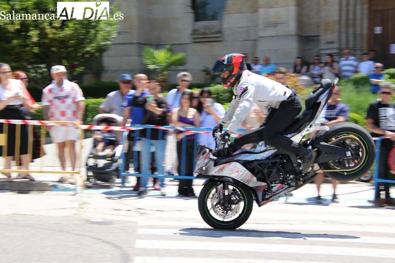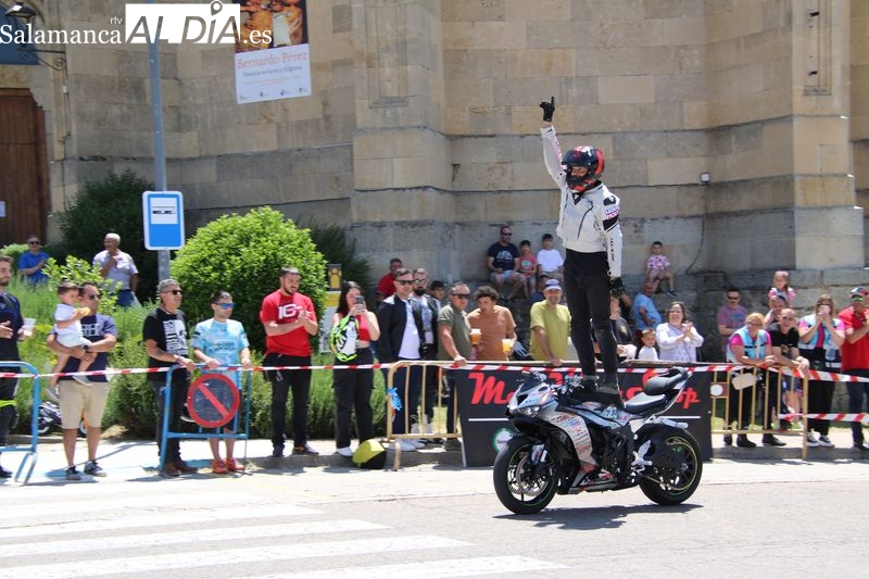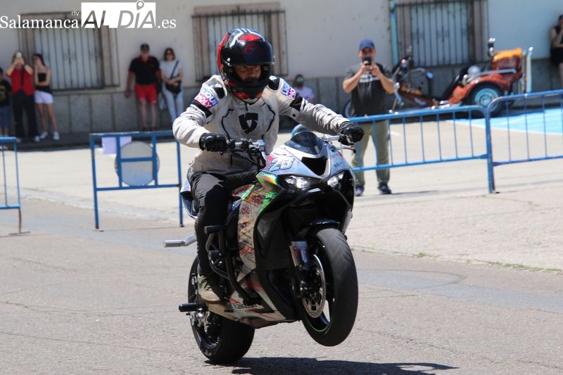 Esta espectacular demostración de habilidad y control fue uno de los platos fuertes programados por los clubes organizadores de la concentración: los salmantinos 125 y Gas Salamanca y Cacharras Charras. La Quedada Motera continúa ofreciendo un gran ambiente y pasión por las motos en la villa ducal.