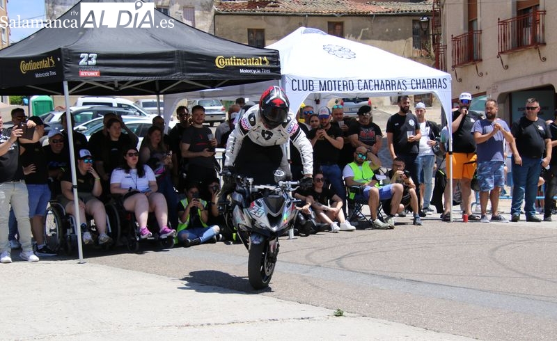 La exhibición de acrobacias moteras fue el plato fuerte del mediodía del sábado en el aparcamiento de la Basílica, dentro de la concentración organizada por 125 y Gas Salamanca y Cacharras Charras