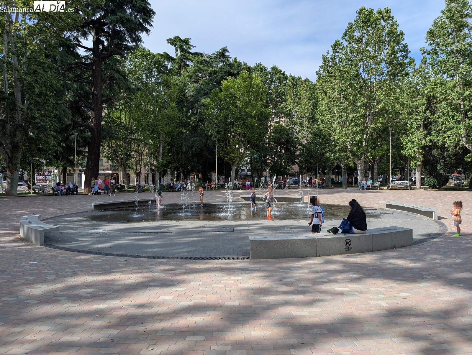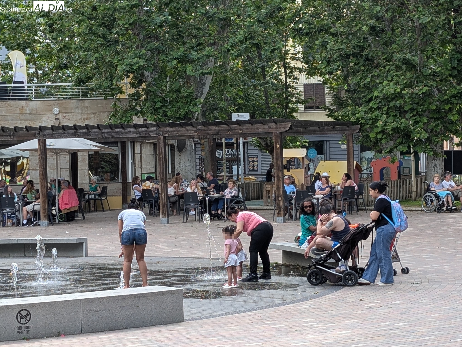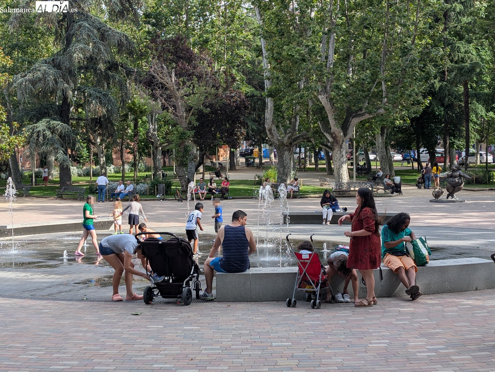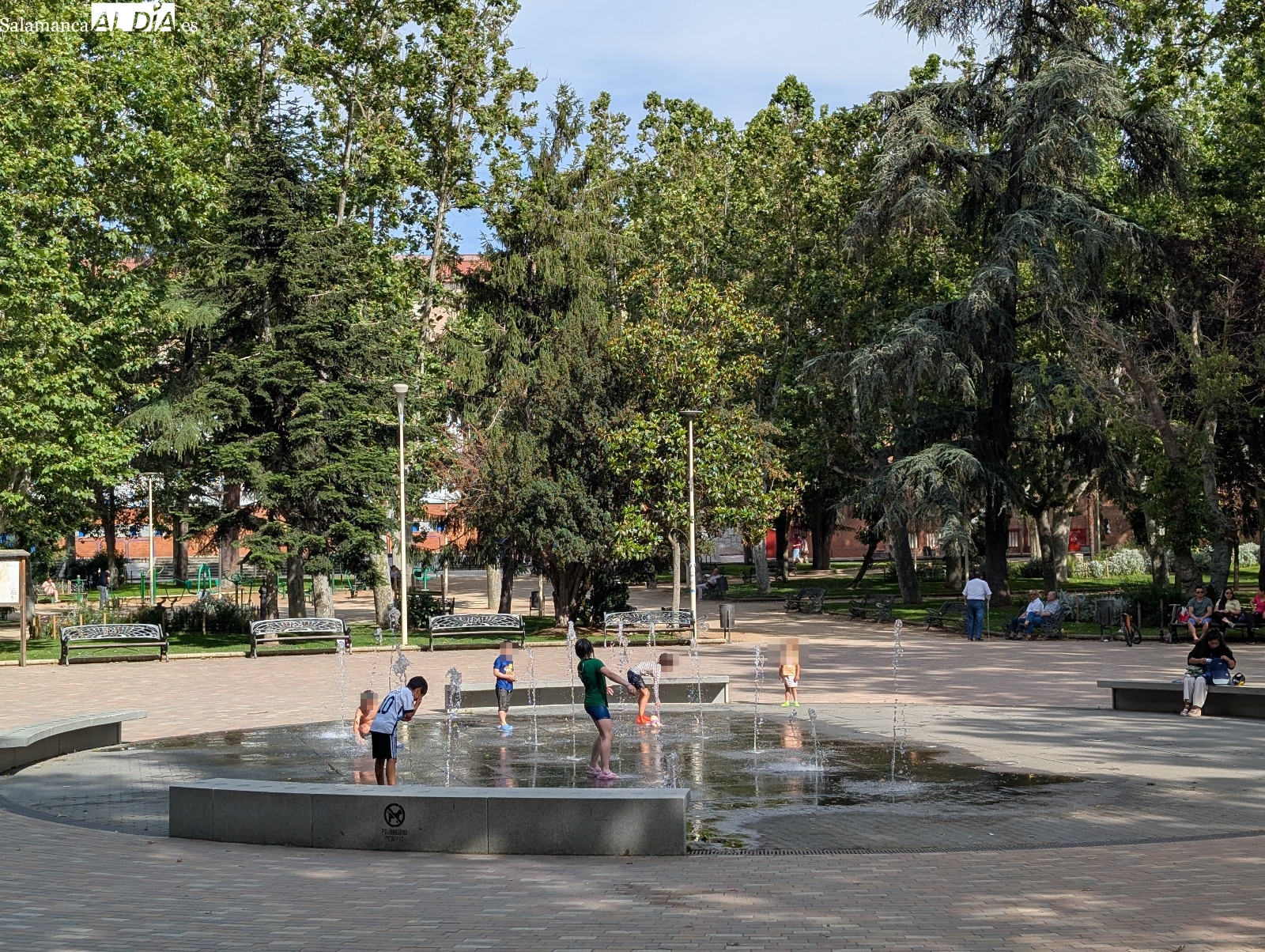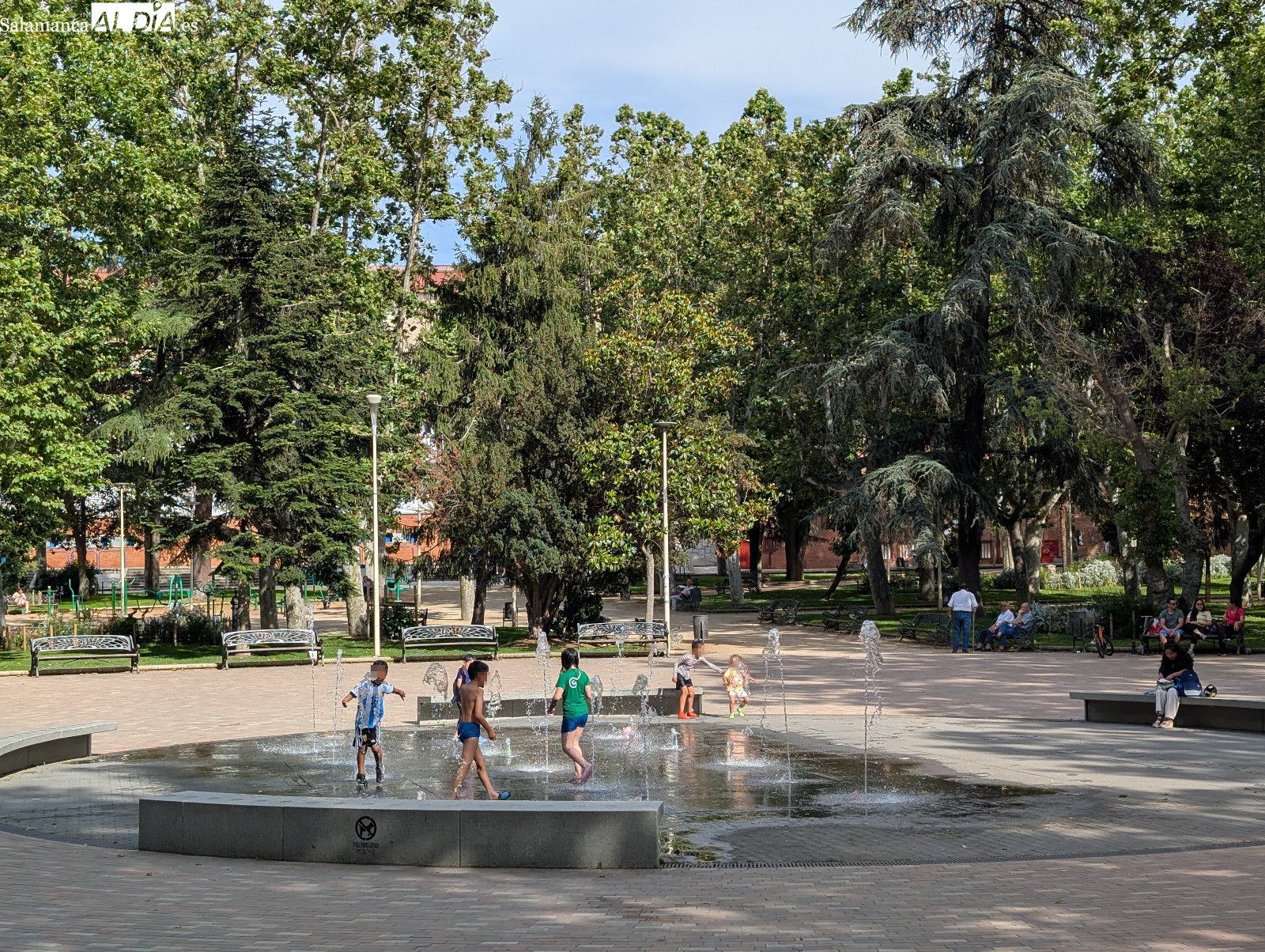 El mercurio no da tregua en Salamanca y los ciudadanos buscan cualquier resquicio para combatir el sofocante calor que se ha instalado en la capital charra este mes de junio. En este escenario, uno de los puntos neurálgicos de la ciudad, el parque de La Alamedilla, ha mudado su piel para convertirse en un particular oasis urbano donde el agua y la sombra son los bienes más preciados.