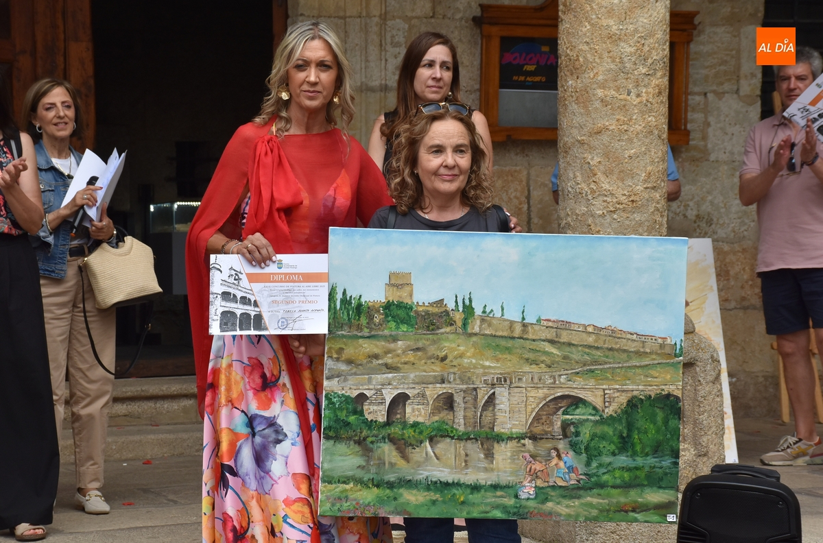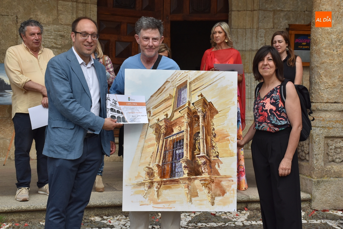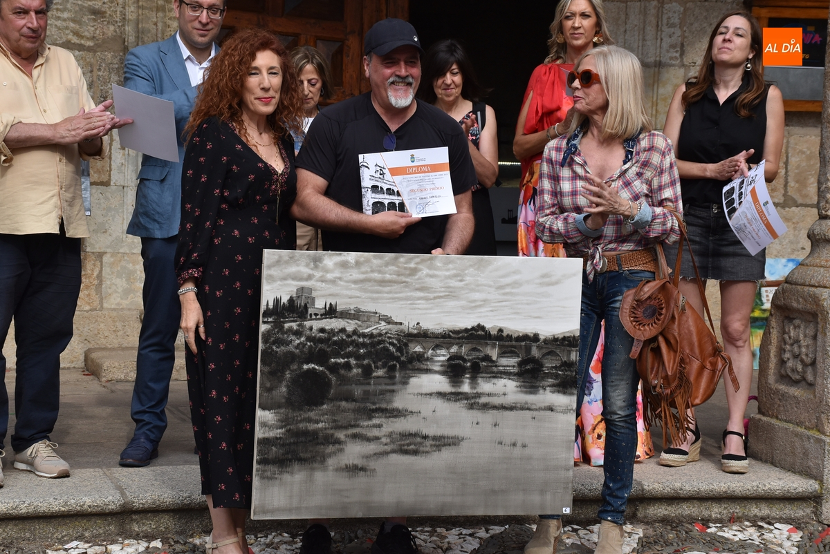 Francisco Tomás Medina Pérez -que se acercó a Ciudad Rodrigo pese a tener concurso en su propia localidad- se lleva 850€ de premio. En 2ª posición (con 485€ de recompensa), ha quedado Rafael Carrascal García, con un cuadro pintado desde el Puente Nuevo en el que aparecen el Parador y el Puente Mayor; y en la 3ª (con 365€ de premio), Pablo Sevillano Sanz, con un cuadro realizado en la calle Puerta de Santiago con la Iglesia de San Agustín al fondo.