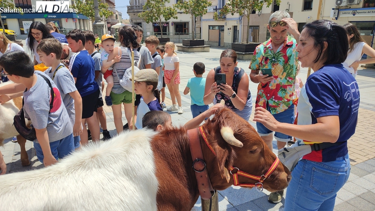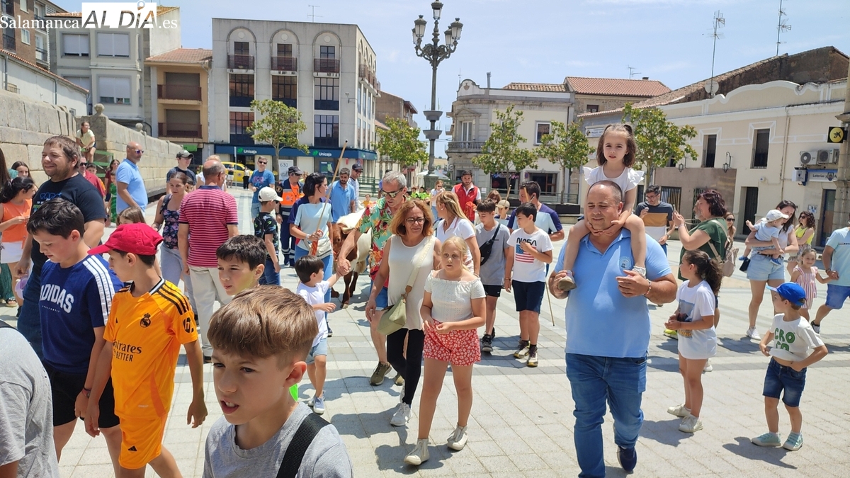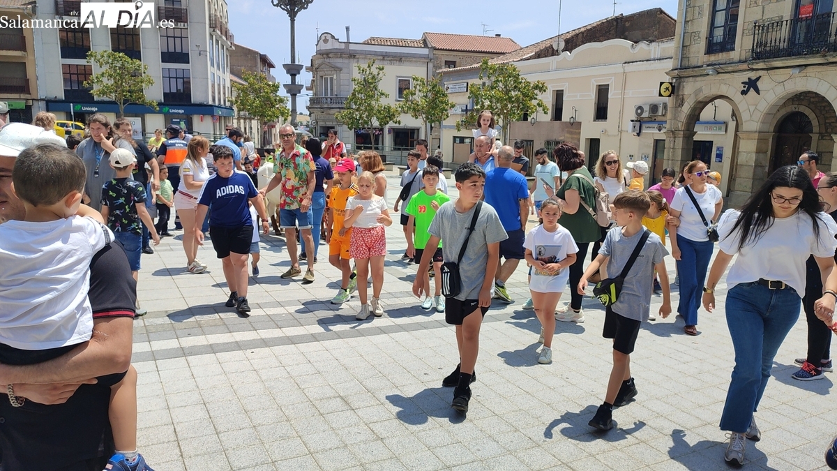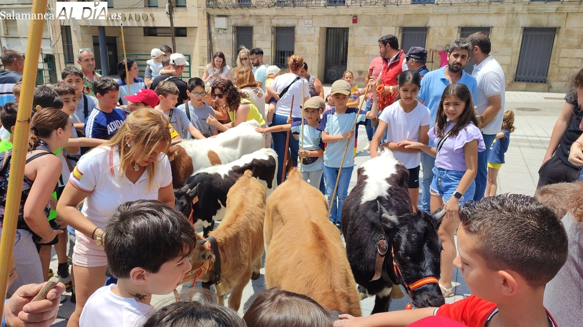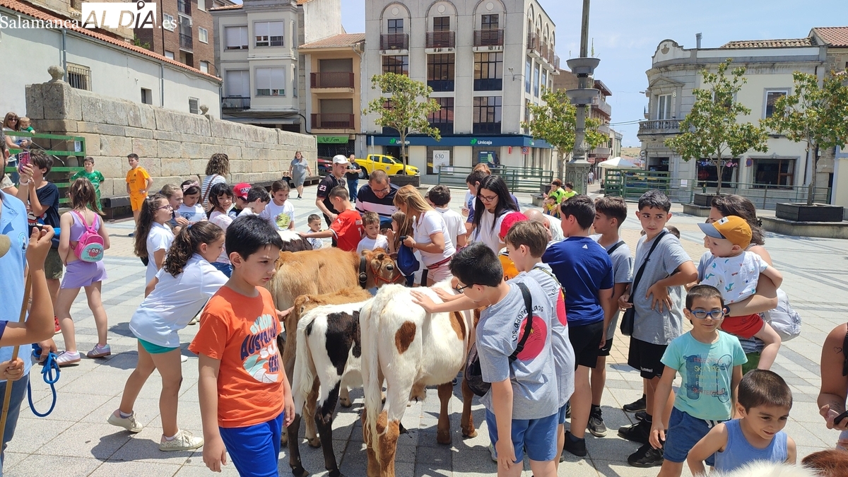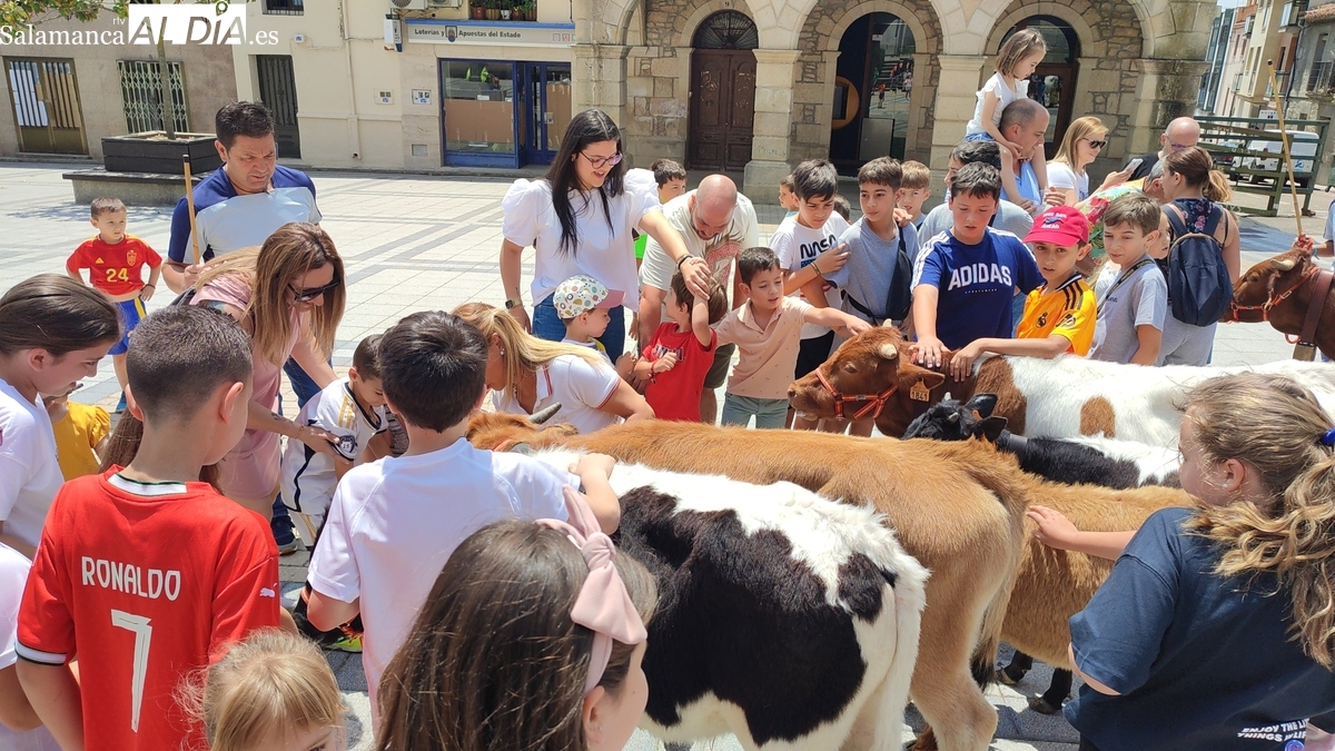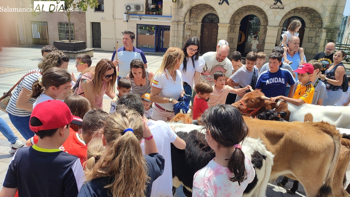 La bueyada infantil Tauro Tormes promovida por la Asociación Cultural Taurina Villa de Virtigudino llenaba de expectación este sábado las calles de Vitigudino, un espectáculo conmovedor para madres y padres cuando observaban cómo sus hijos acariciaban con ternura los pequeños mansos que recorrieron las calles hasta la Plaza de España.