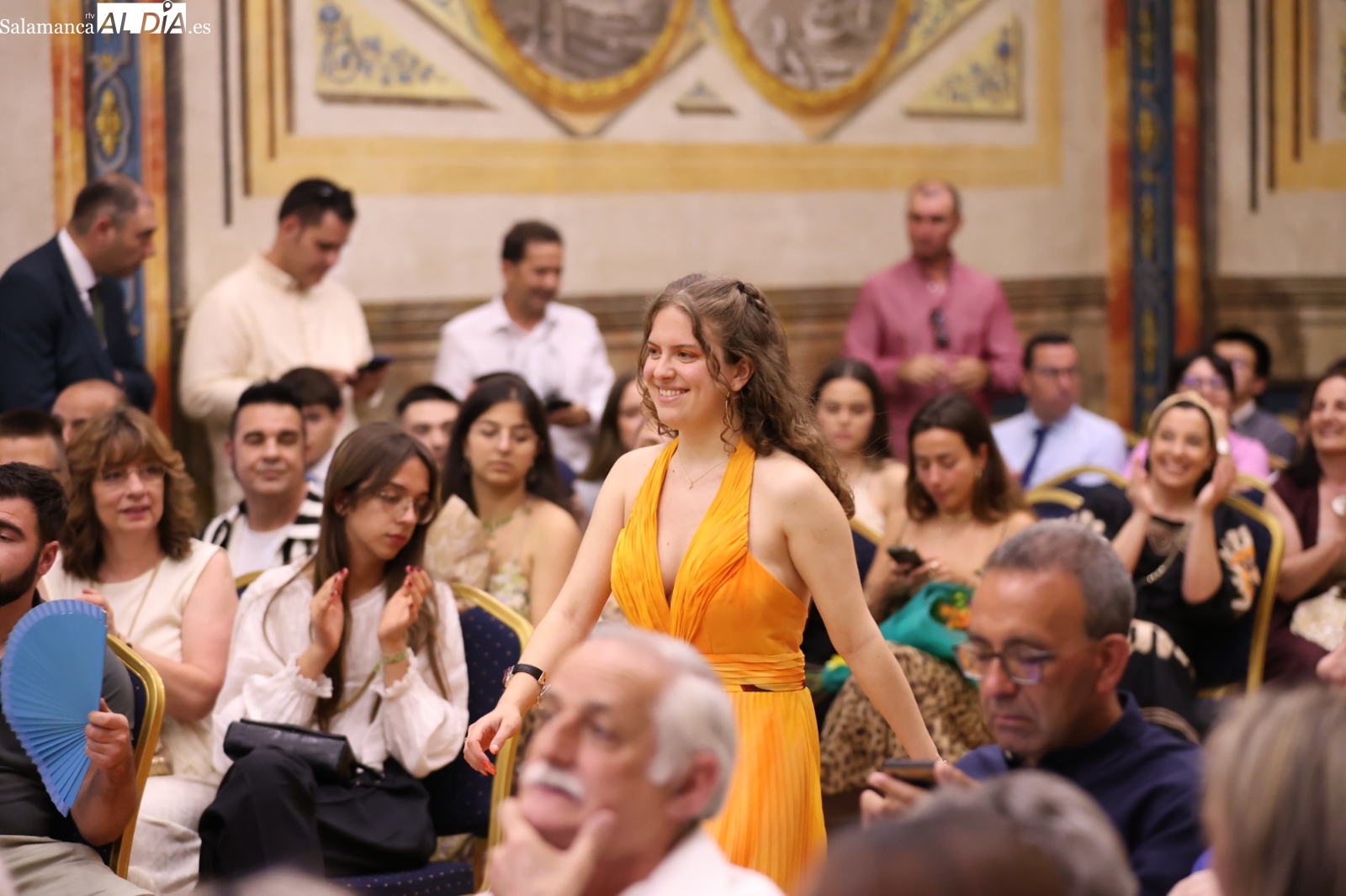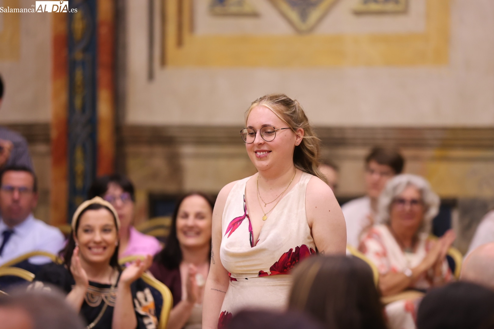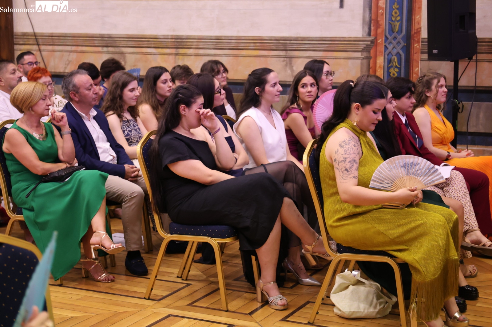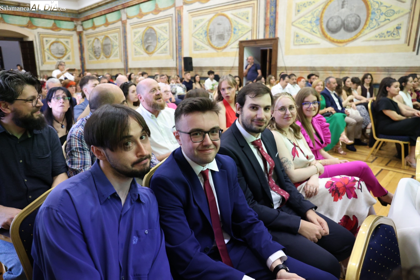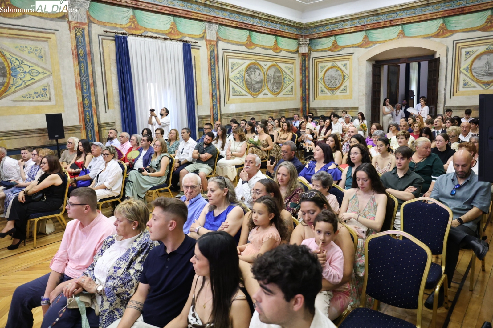 La histórica Sala de las Pinturas del Colegio Arzobispo Fonseca se llenó de emoción y alegría, al acoger el acto de graduación de los estudiantes del Grado en Información y Documentación de la Universidad de Salamanca (USAL), así como de sus dobles grados.