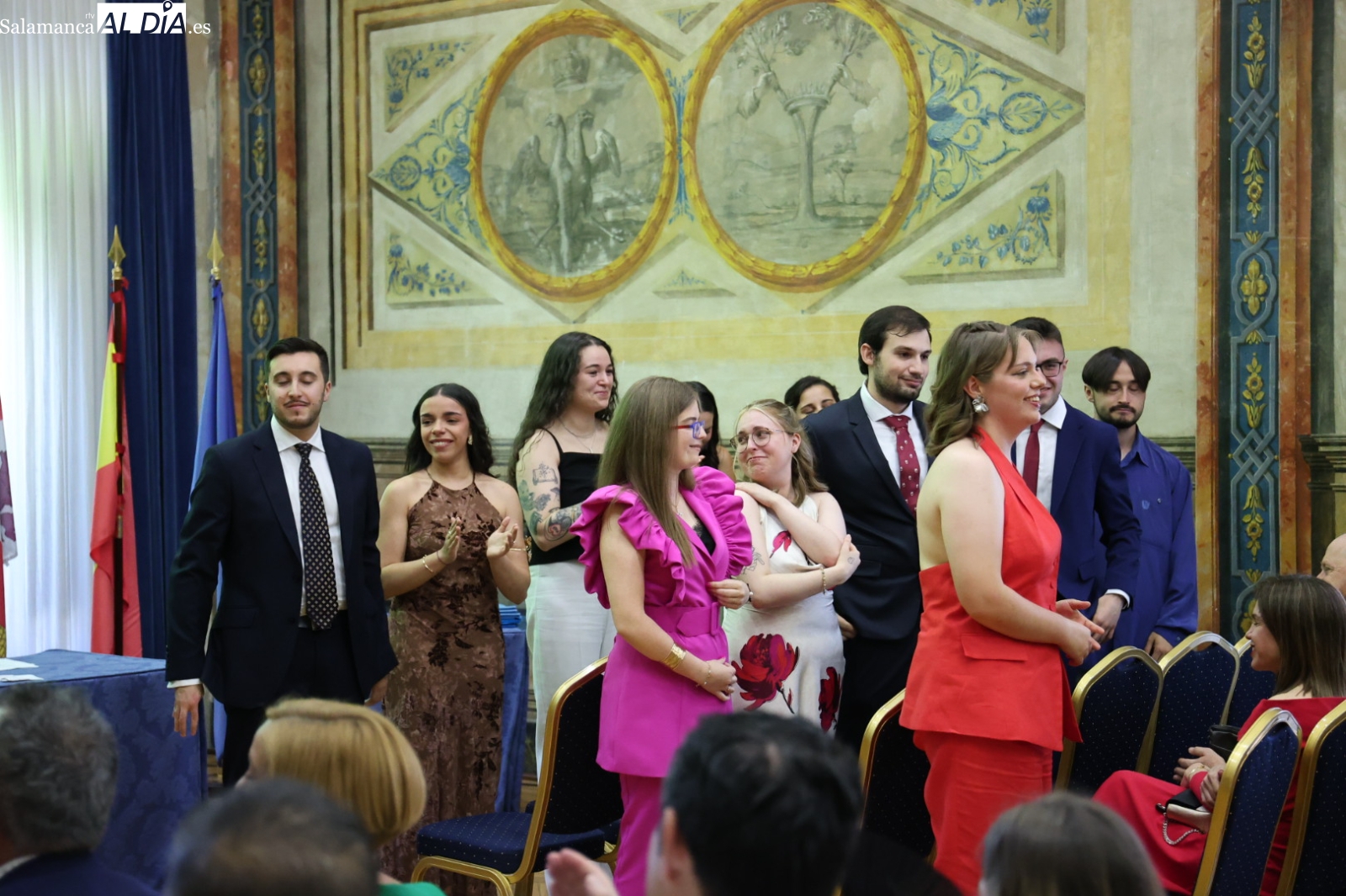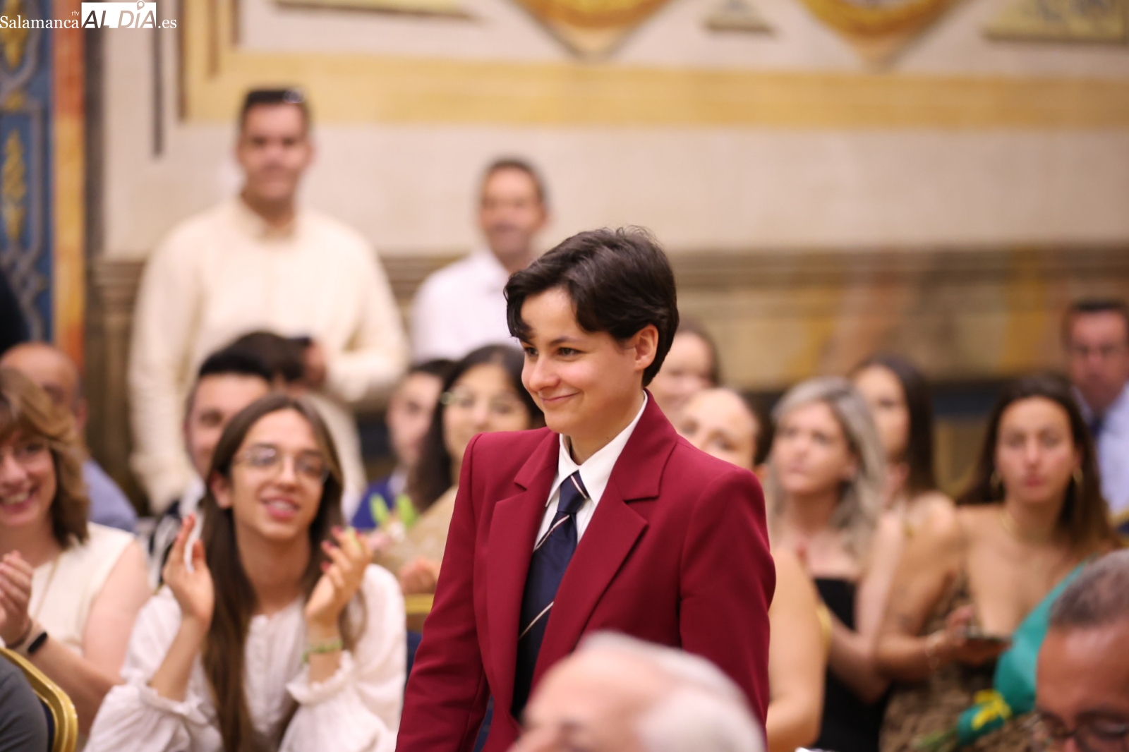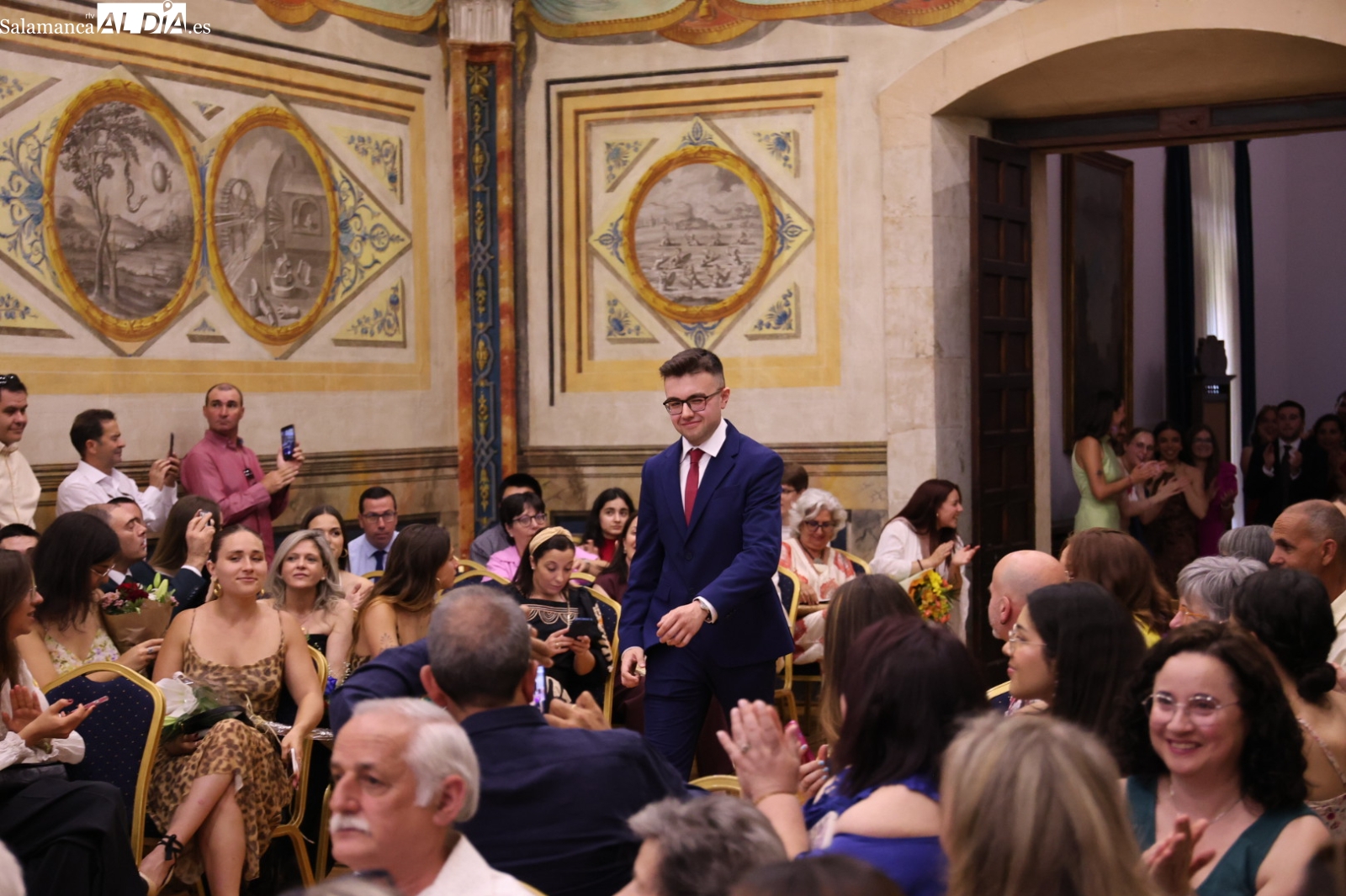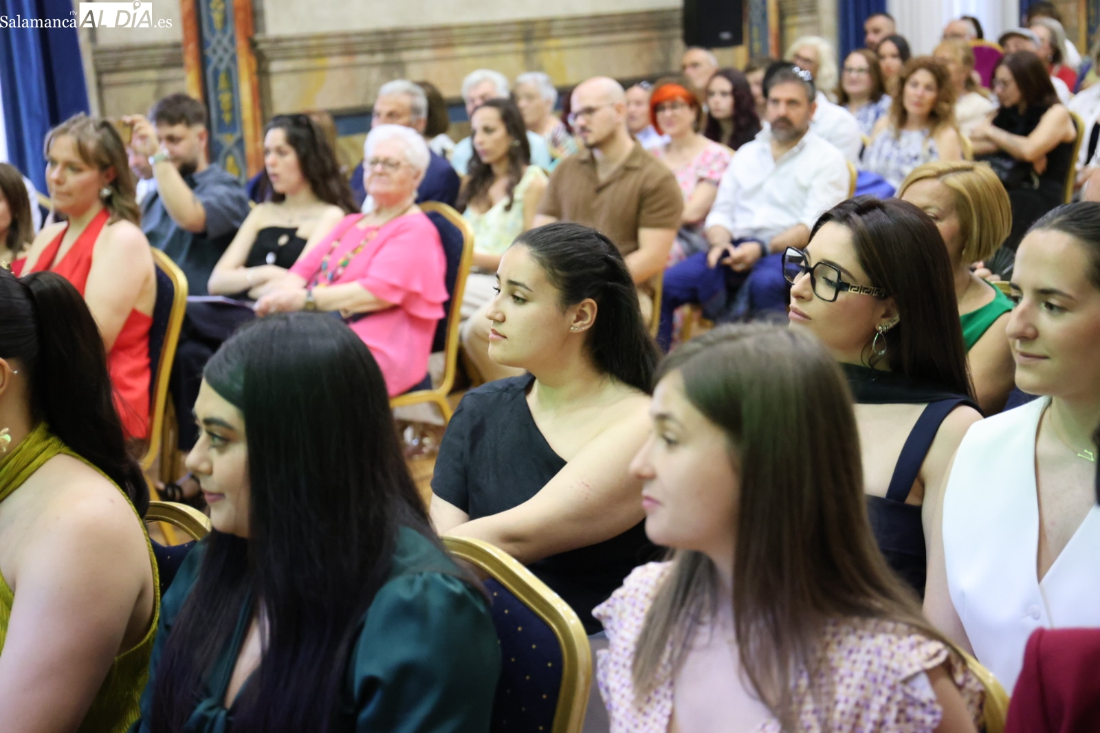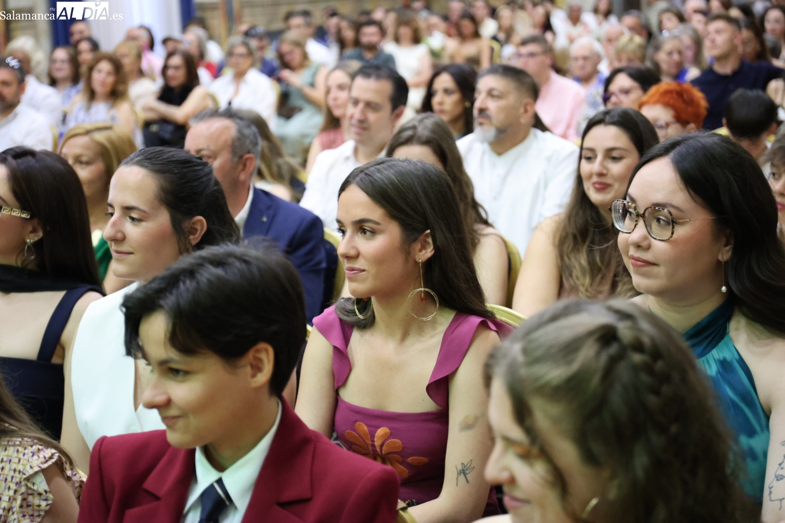 La histórica Sala de las Pinturas del Colegio Arzobispo Fonseca se llenó de emoción y alegría, al acoger el acto de graduación de los estudiantes del Grado en Información y Documentación de la Universidad de Salamanca (USAL), así como de sus dobles grados.