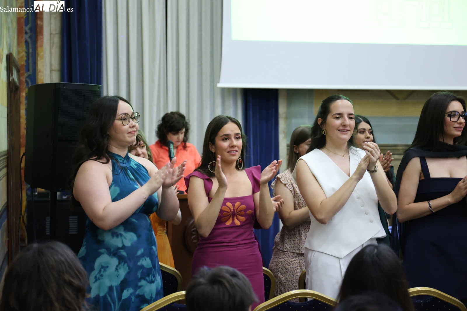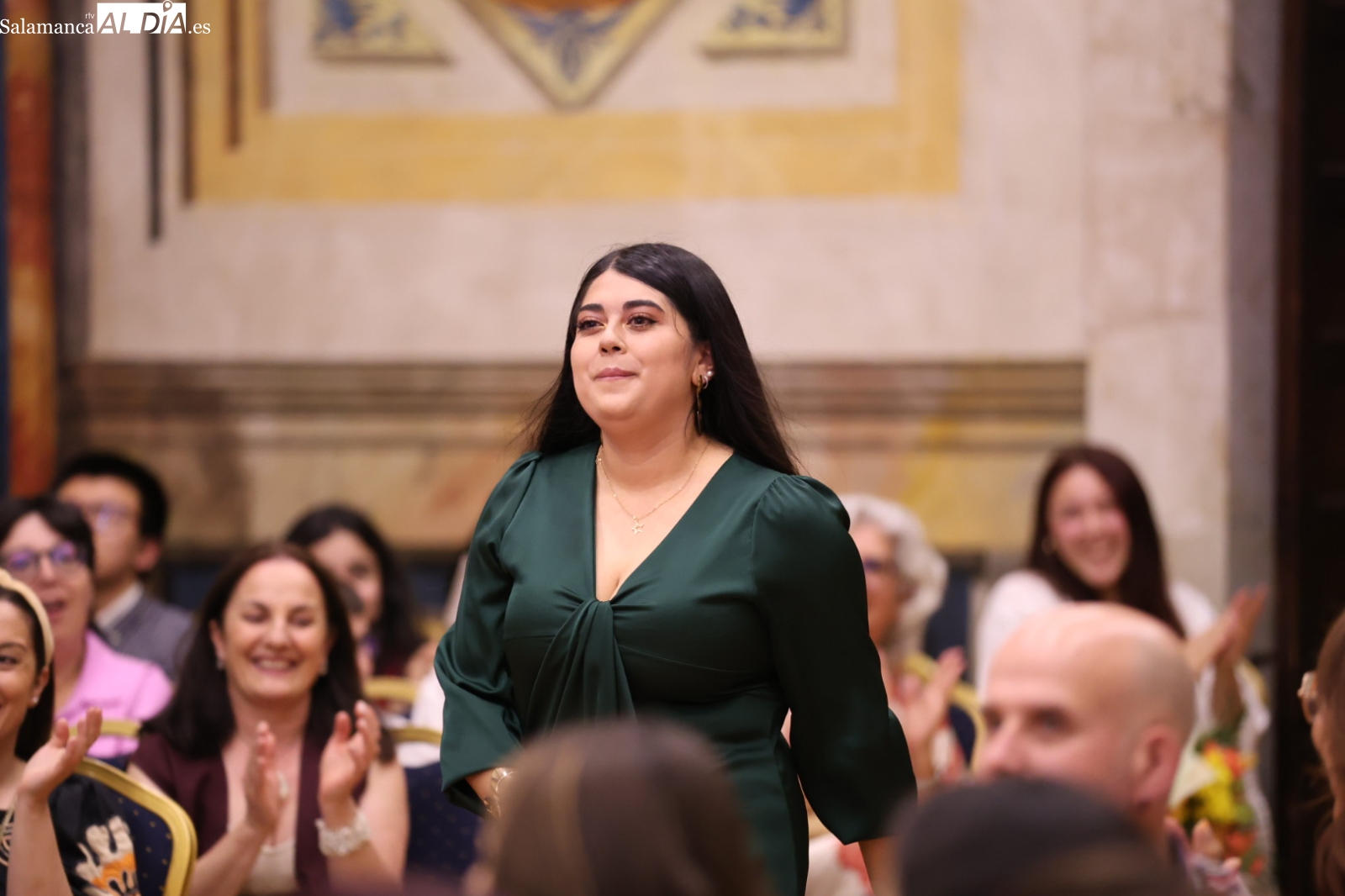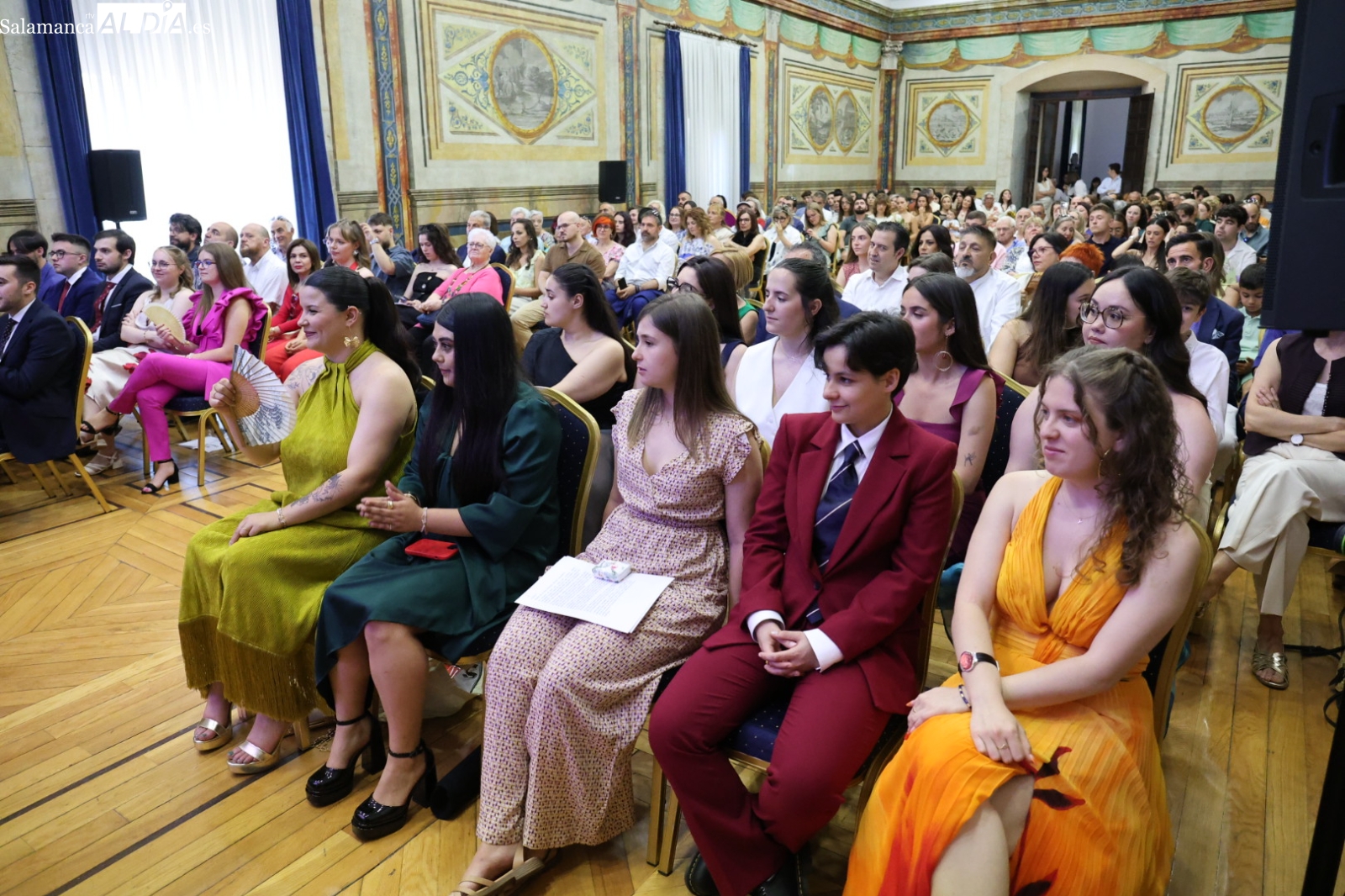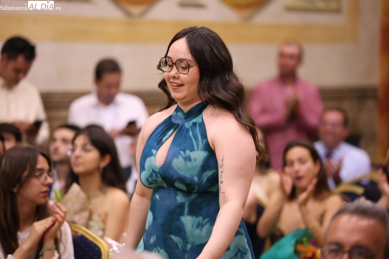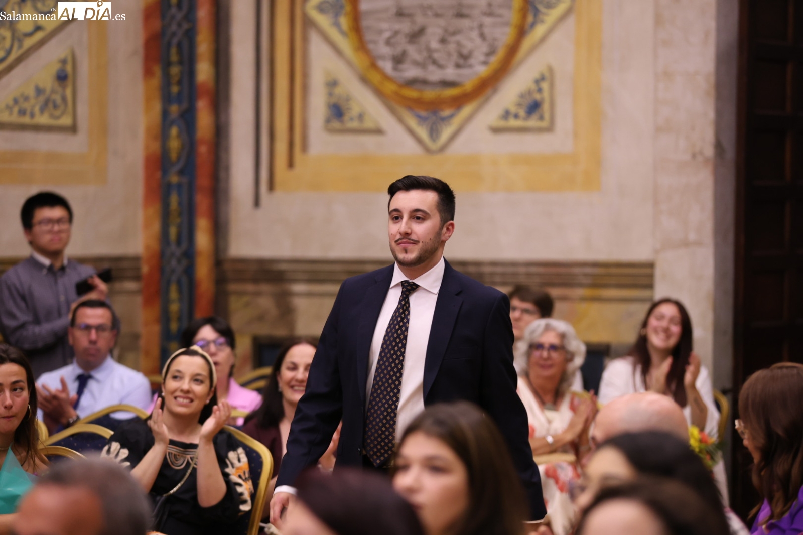 La histórica Sala de las Pinturas del Colegio Arzobispo Fonseca se llenó de emoción y alegría, al acoger el acto de graduación de los estudiantes del Grado en Información y Documentación de la Universidad de Salamanca (USAL), así como de sus dobles grados.