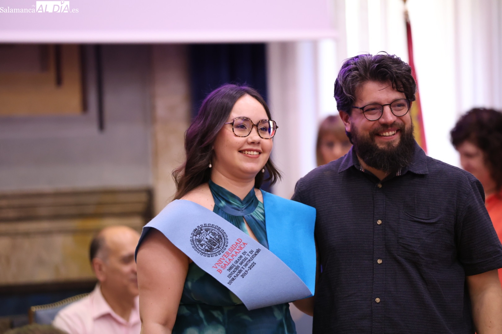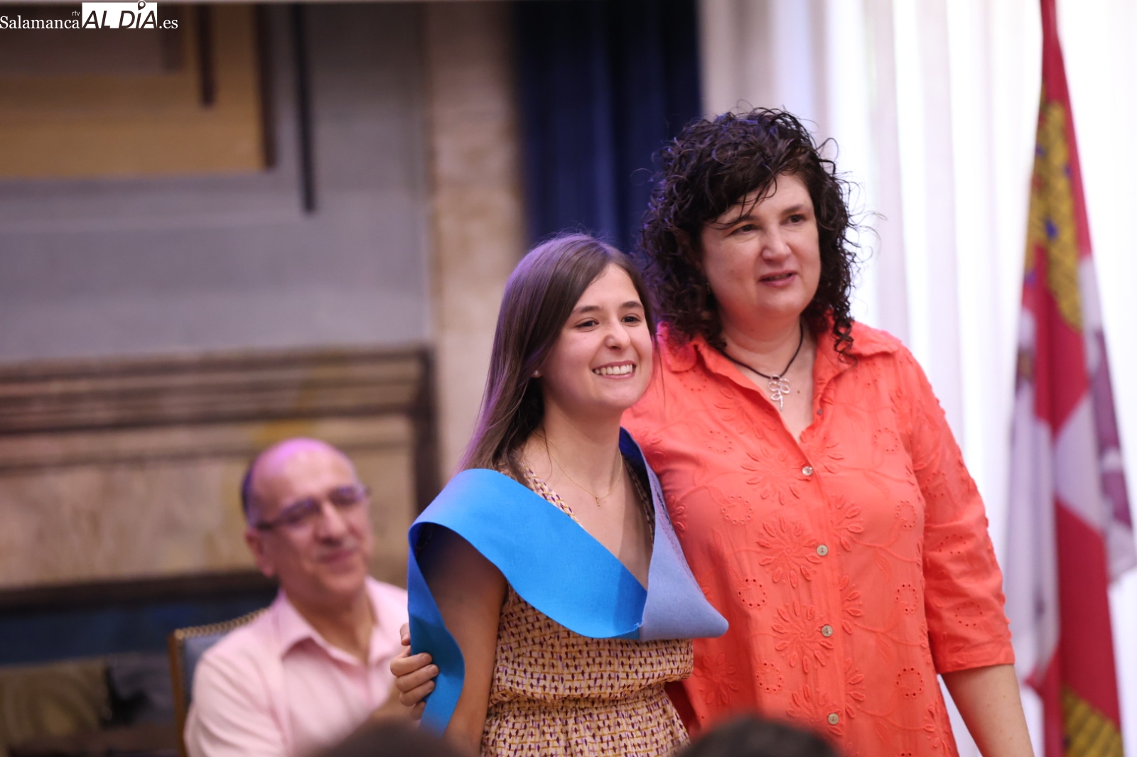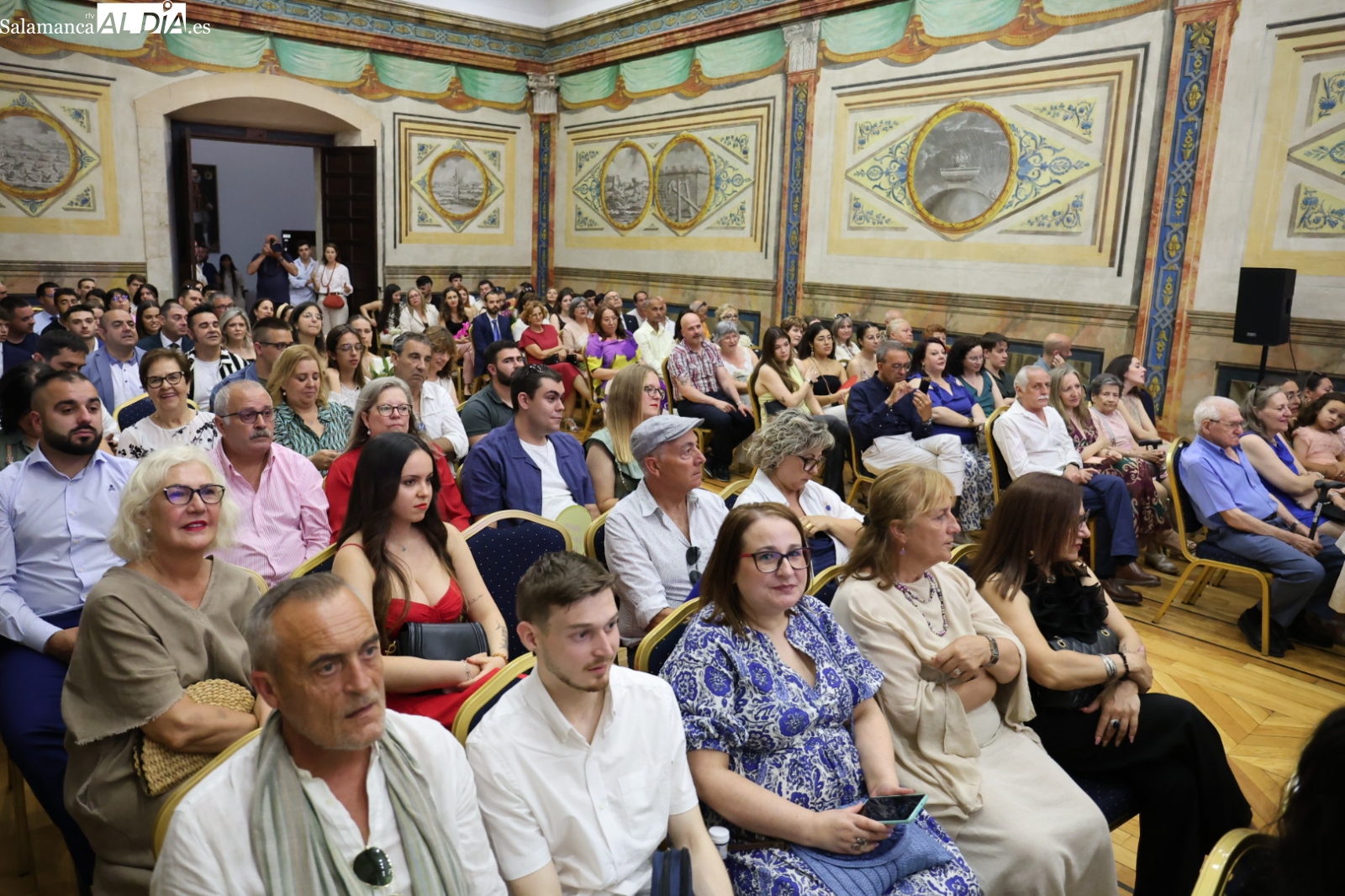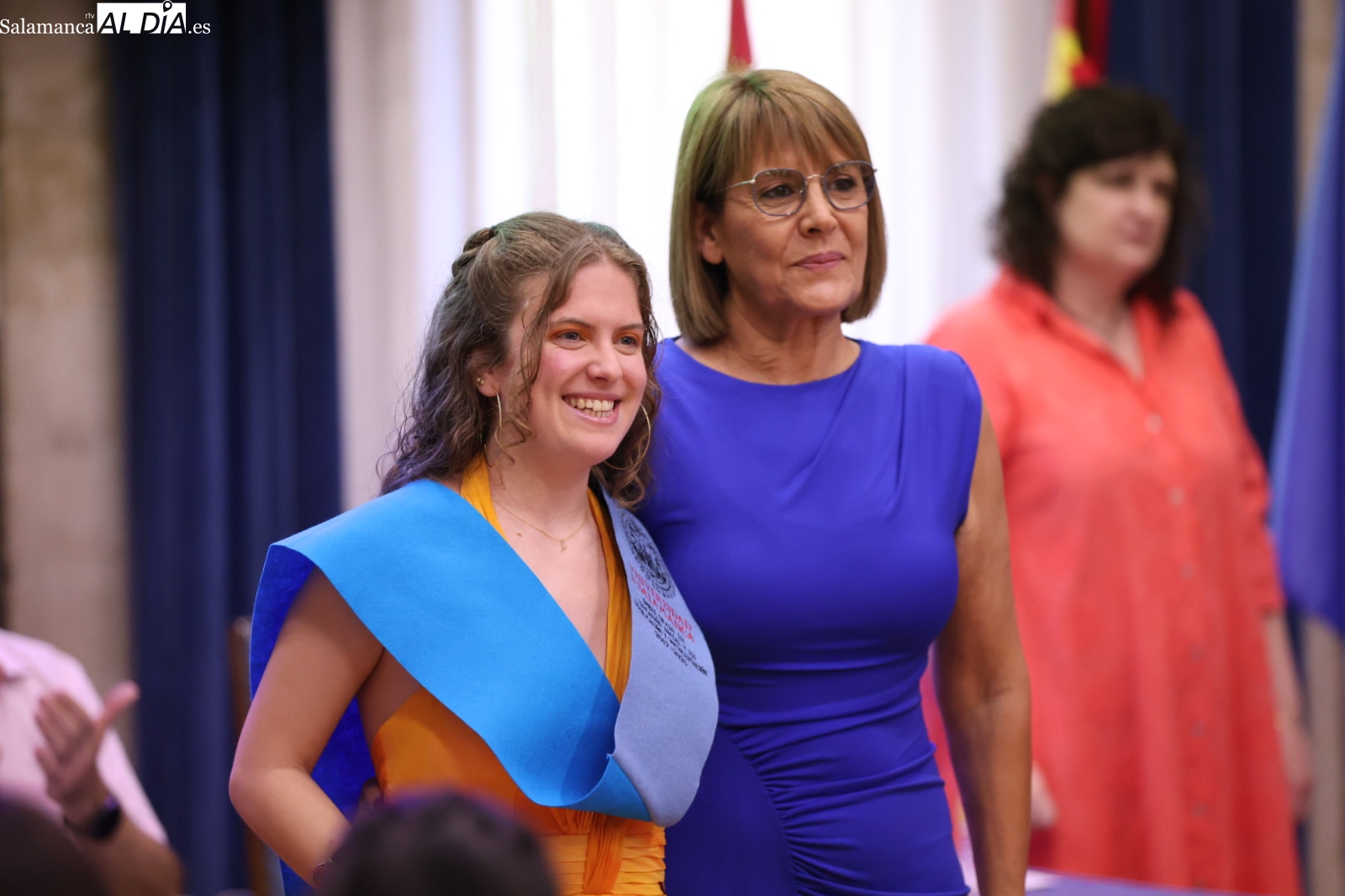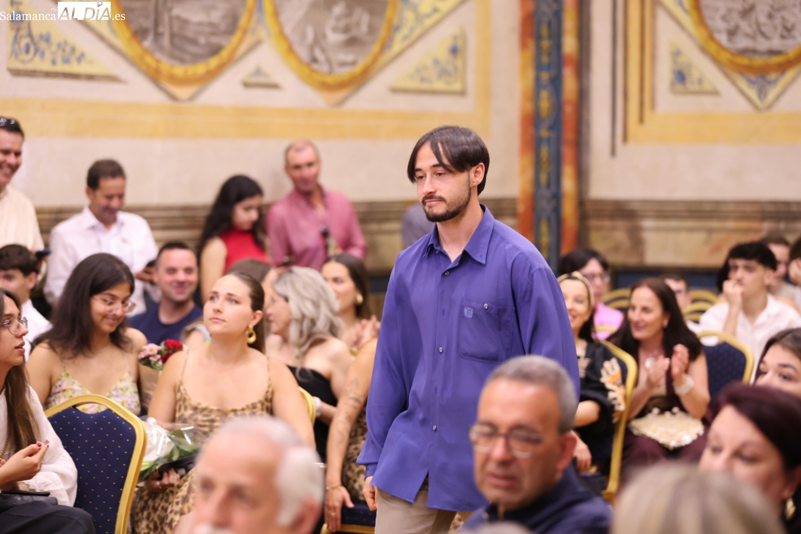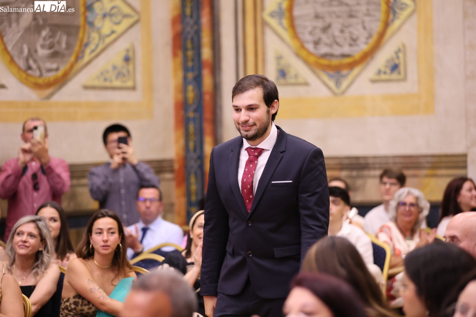La histórica Sala de las Pinturas del Colegio Arzobispo Fonseca se llenó de emoción y alegría, al acoger el acto de graduación de los estudiantes del Grado en Información y Documentación de la Universidad de Salamanca (USAL), así como de sus dobles grados.