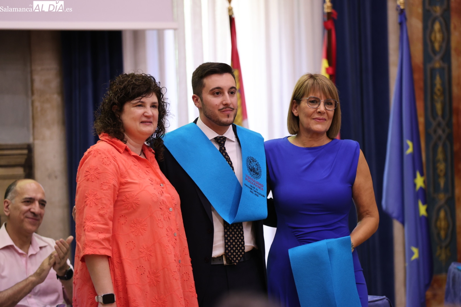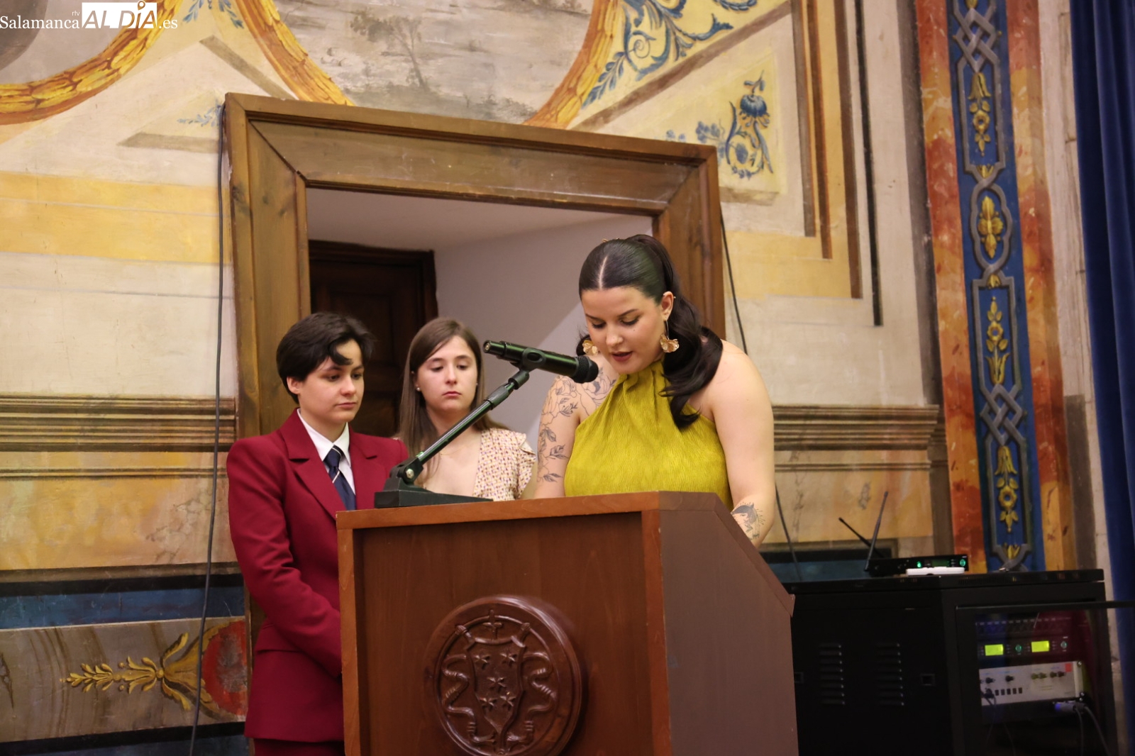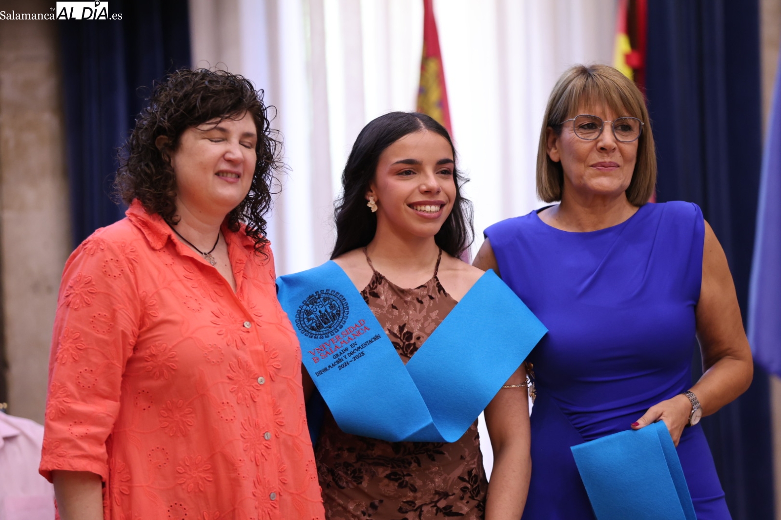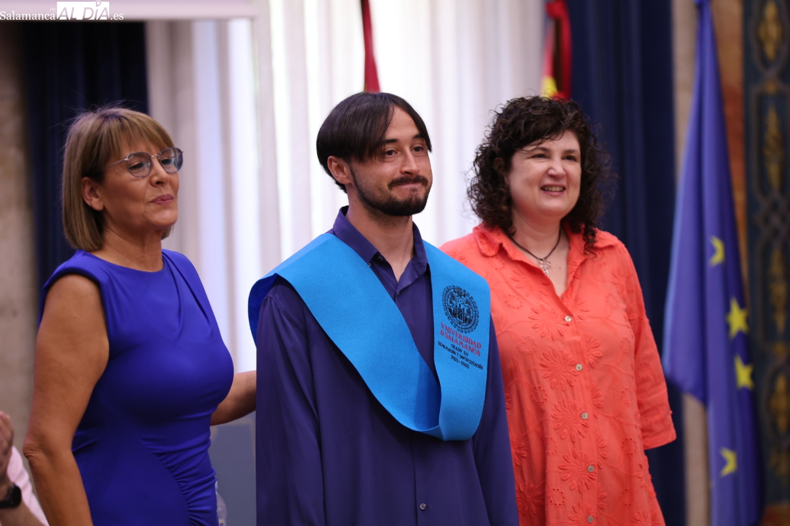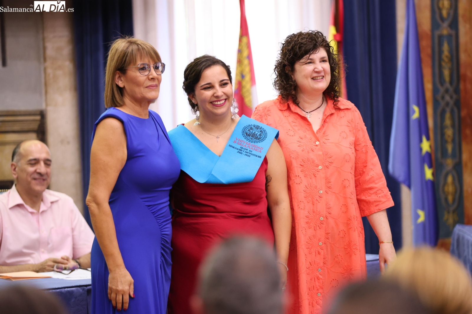 La histórica Sala de las Pinturas del Colegio Arzobispo Fonseca se llenó de emoción y alegría, al acoger el acto de graduación de los estudiantes del Grado en Información y Documentación de la Universidad de Salamanca (USAL), así como de sus dobles grados.