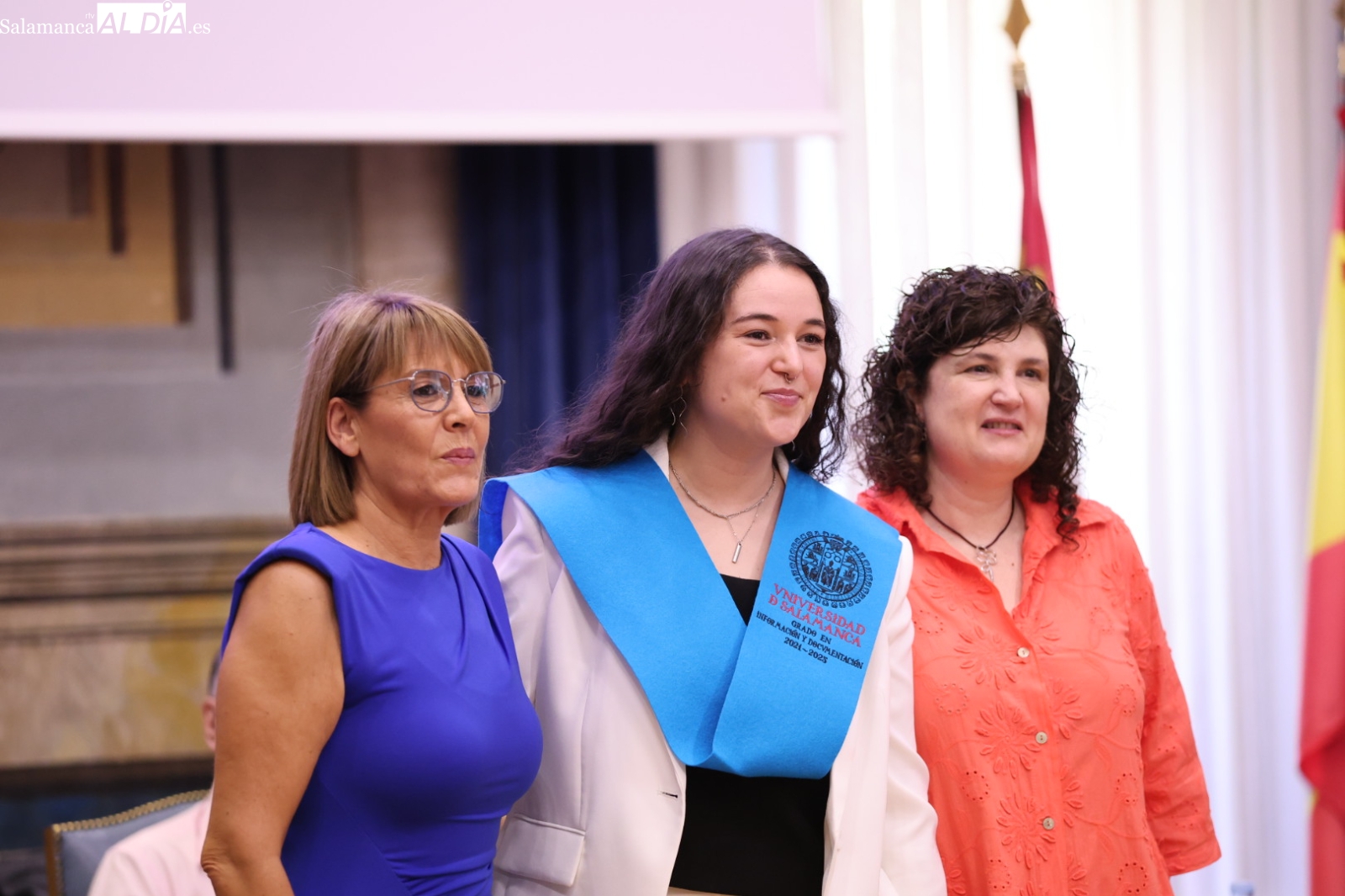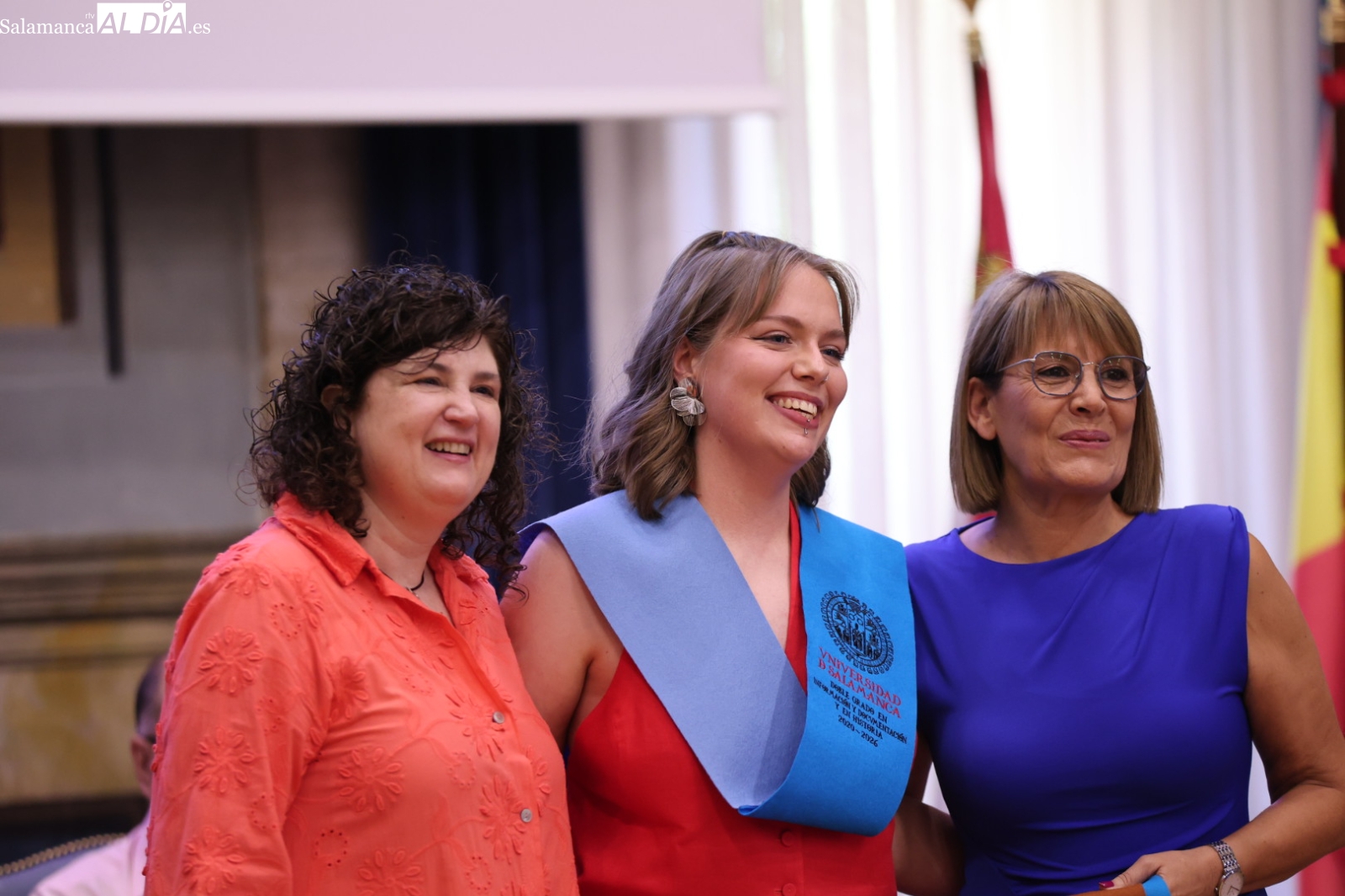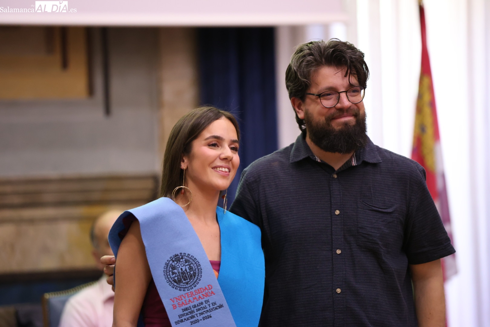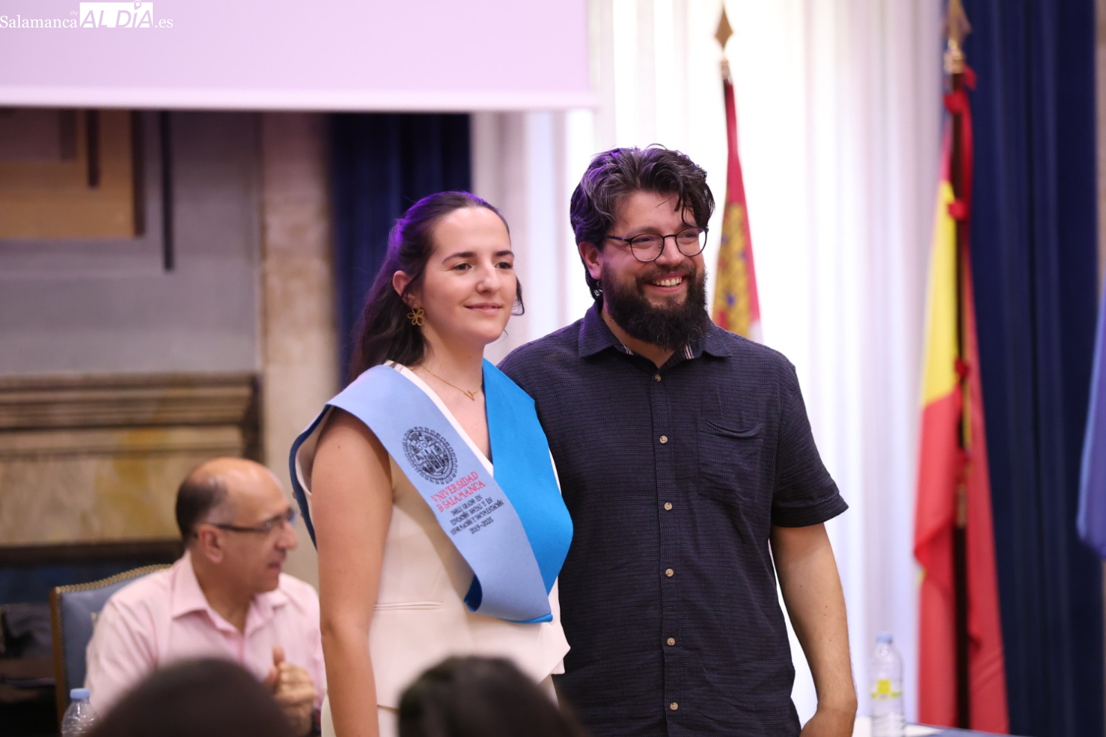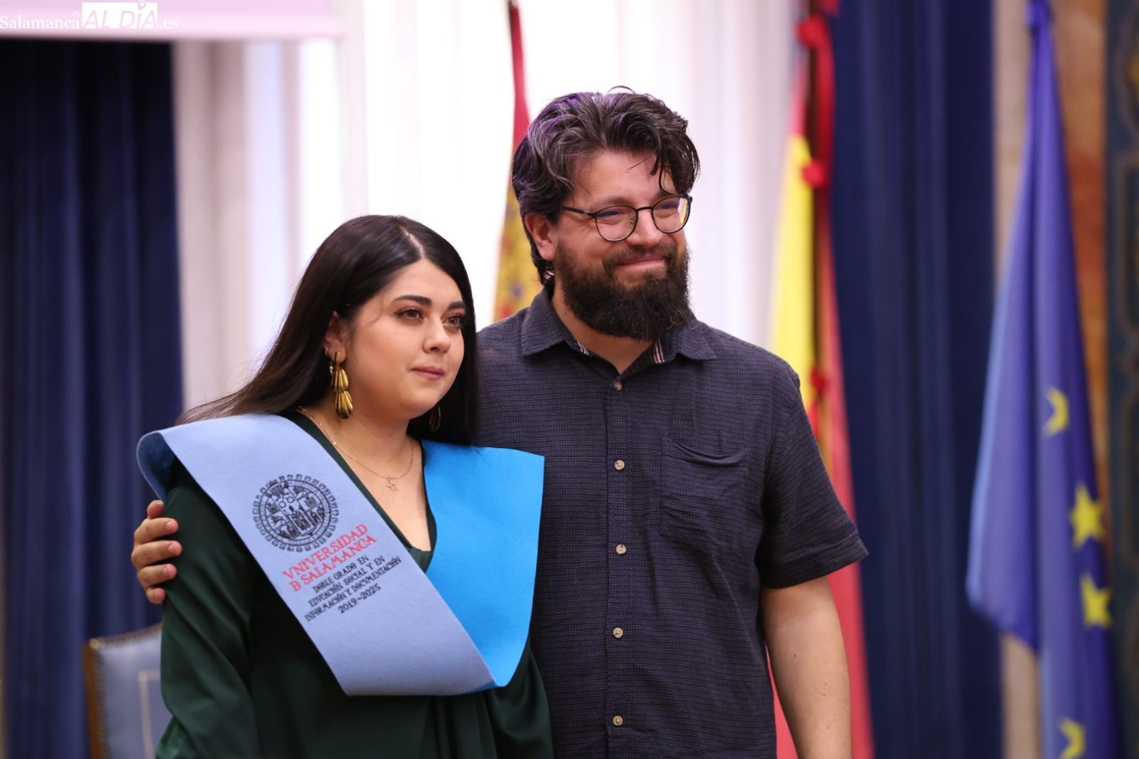 La histórica Sala de las Pinturas del Colegio Arzobispo Fonseca se llenó de emoción y alegría, al acoger el acto de graduación de los estudiantes del Grado en Información y Documentación de la Universidad de Salamanca (USAL), así como de sus dobles grados.