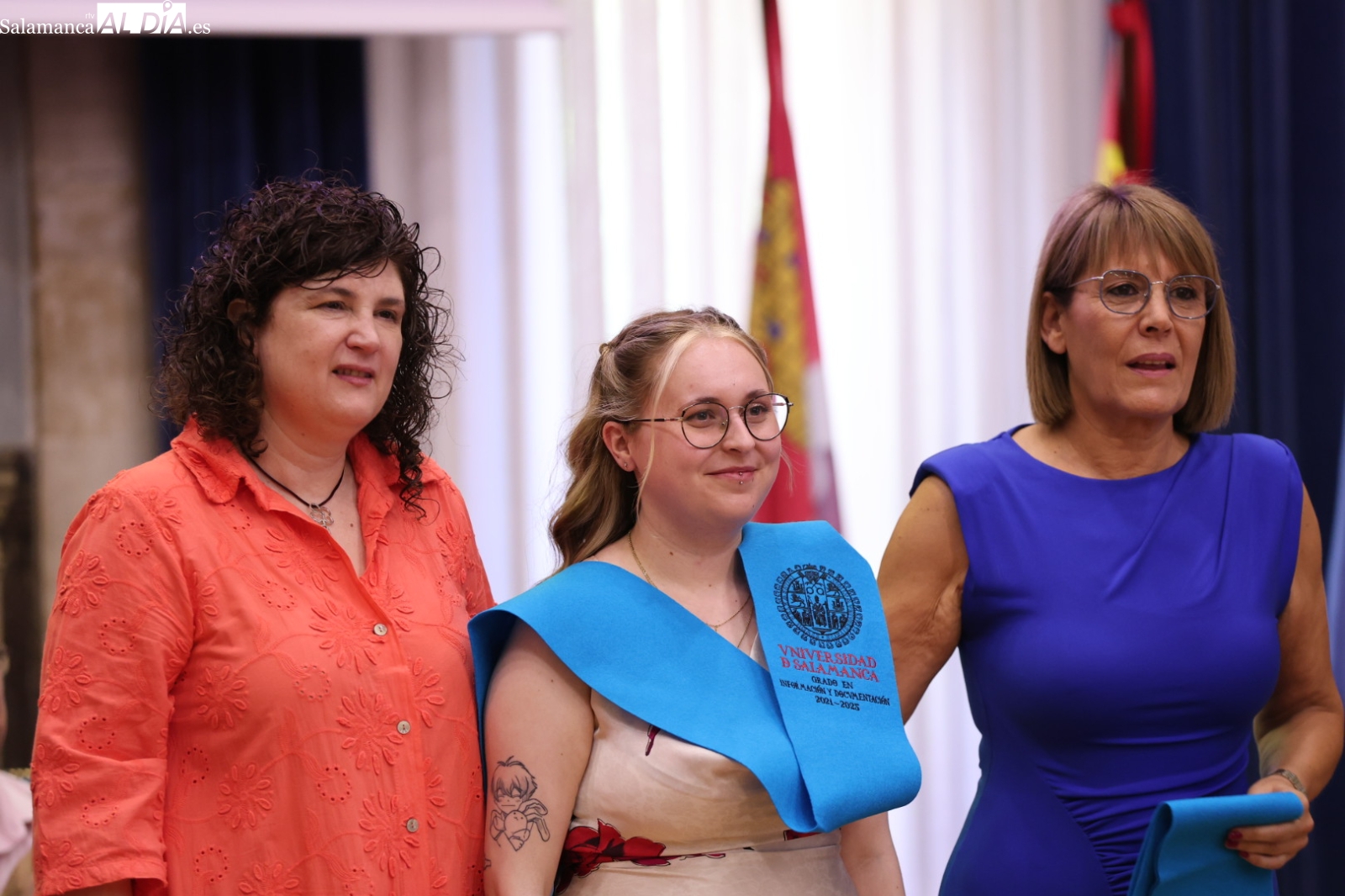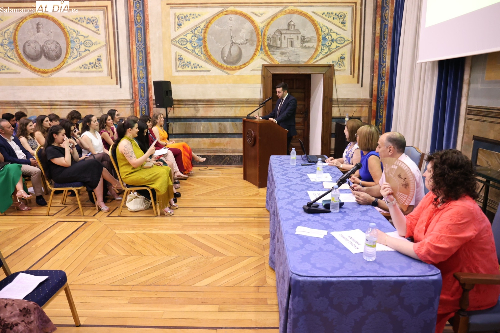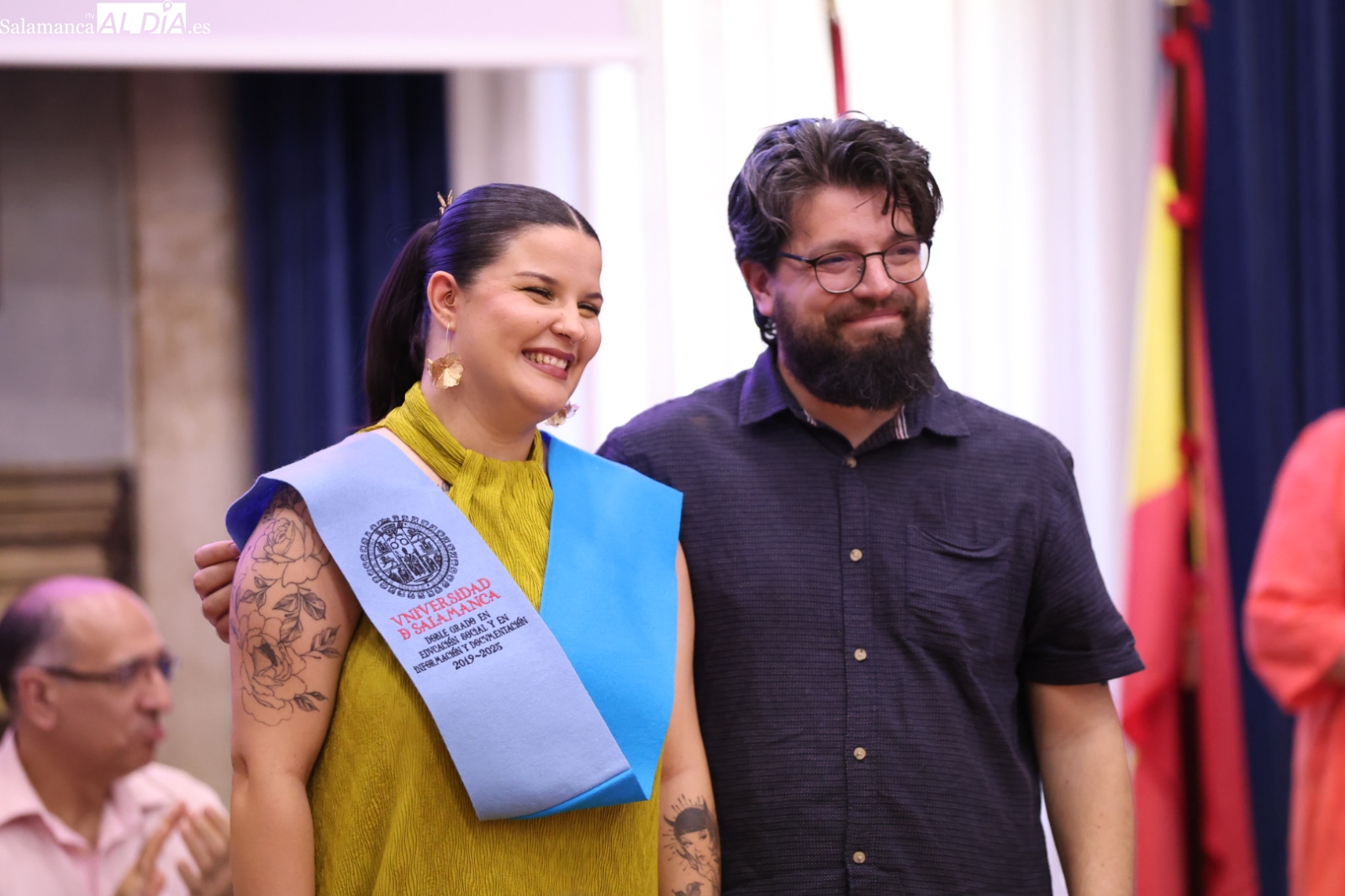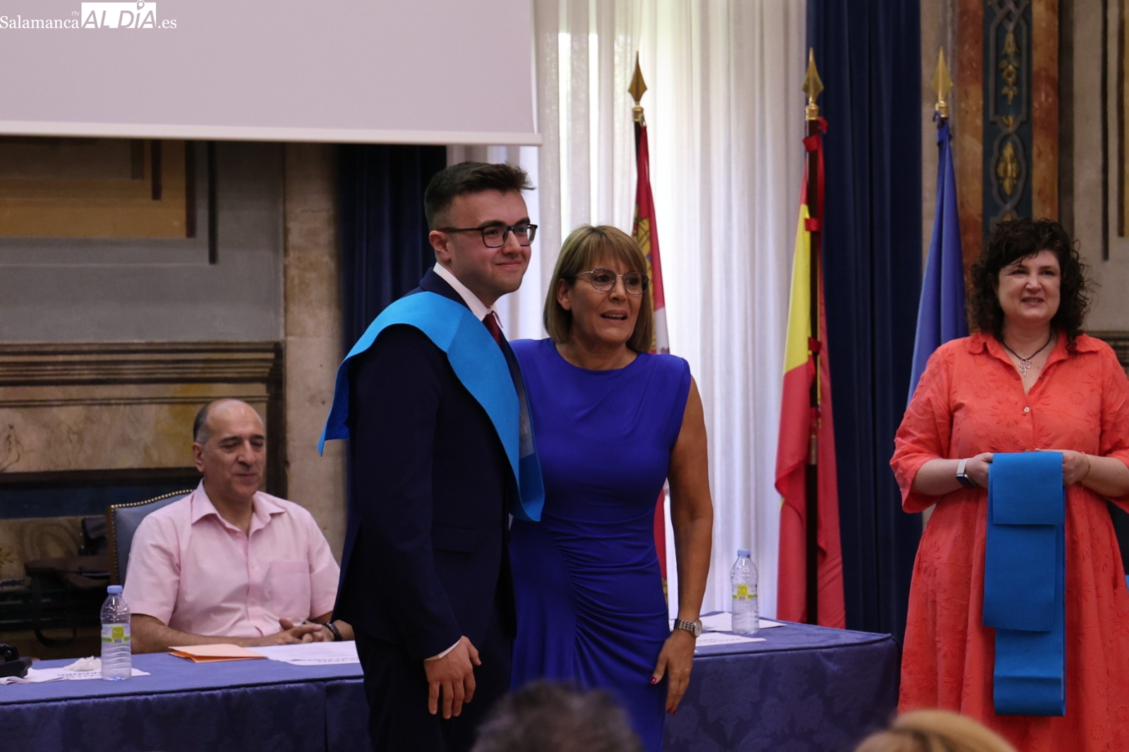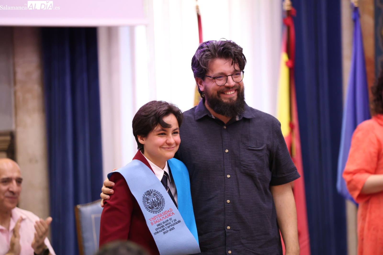 La histórica Sala de las Pinturas del Colegio Arzobispo Fonseca se llenó de emoción y alegría, al acoger el acto de graduación de los estudiantes del Grado en Información y Documentación de la Universidad de Salamanca (USAL), así como de sus dobles grados.