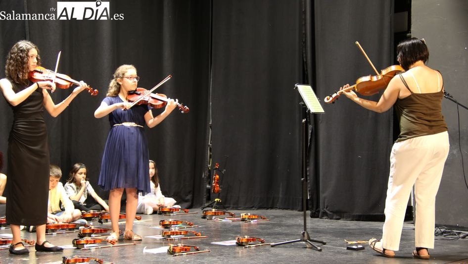 El murmullo expectante del público en el teatro de Alba de Tormes ha dado paso a una experiencia sonora y visual conmovedora. Pequeños músicos, algunos apenas levantando unos palmos del suelo, han empuñado sus violines y violas con una seriedad y concentración que ha desmentido su corta edad.