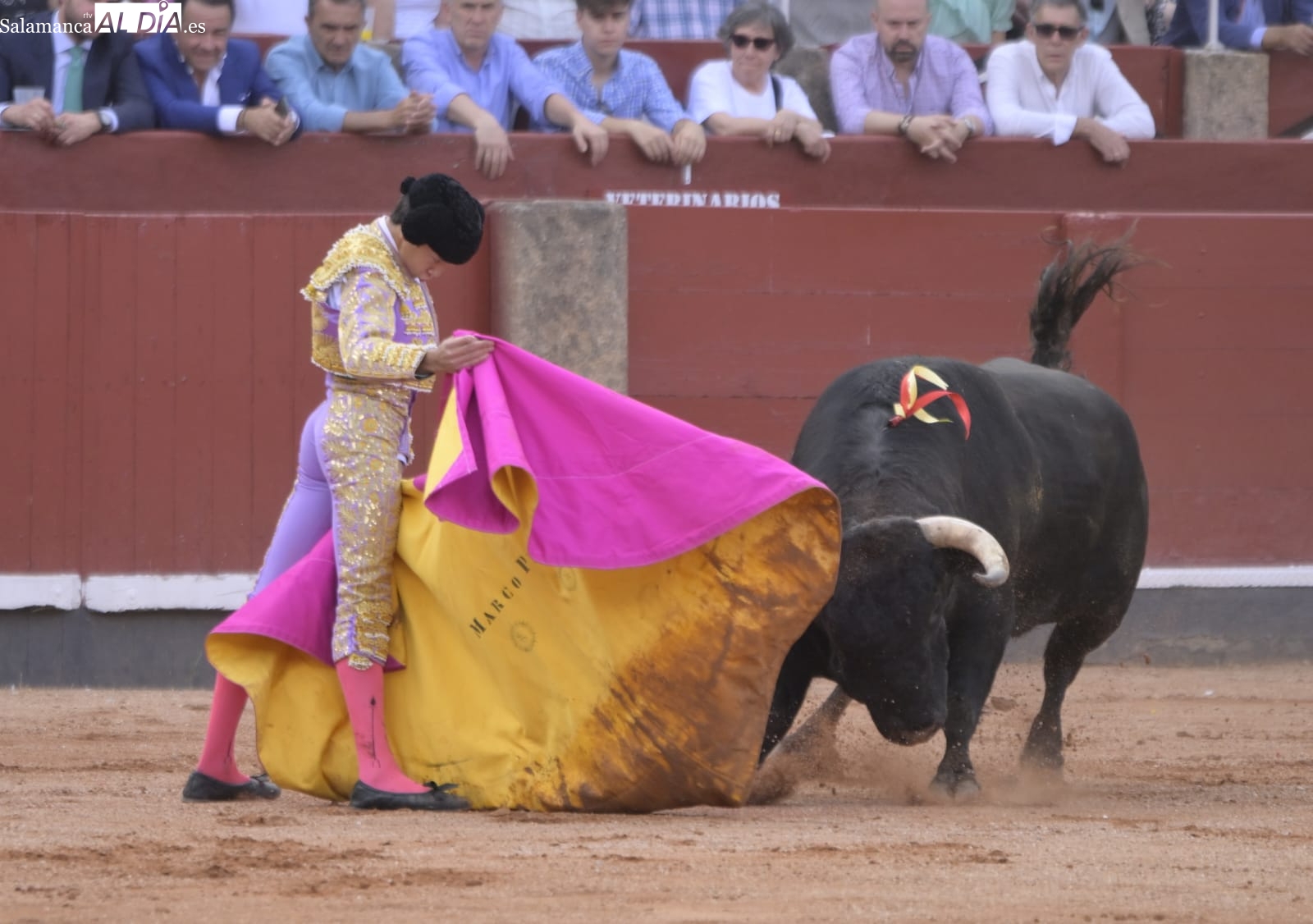 El público, que prácticamente lleno los tendidos del coso salmantino, tuvo que esperar cuatro episodios antes de emocionarse con dos faenas que serán, posiblemente, de las más rotundas que se hayan visto en los últimos tiempos en Salamanca. A lo de Morante se le acaban los calificativos que ponerle, y a lo de Marco Pérez teniendo en cuenta que esta era su segunda corrida de toros, también.