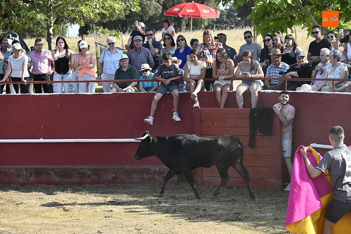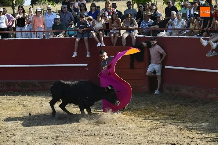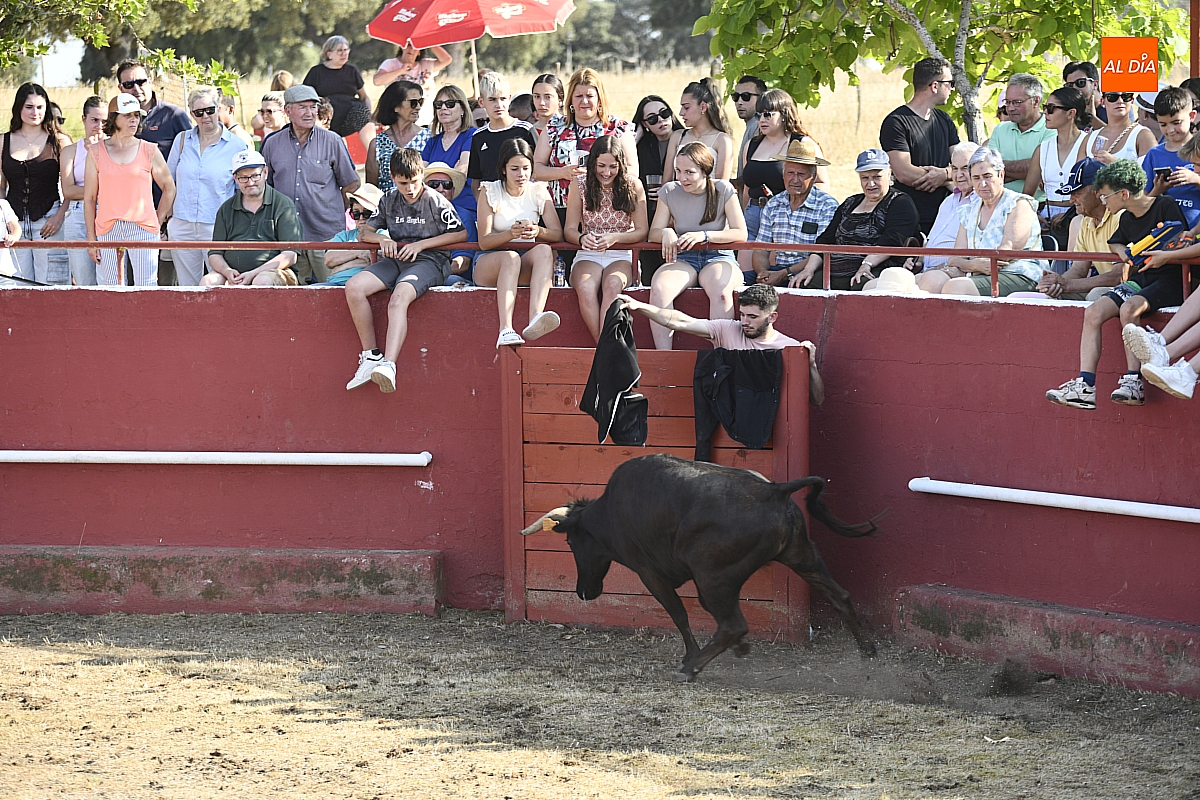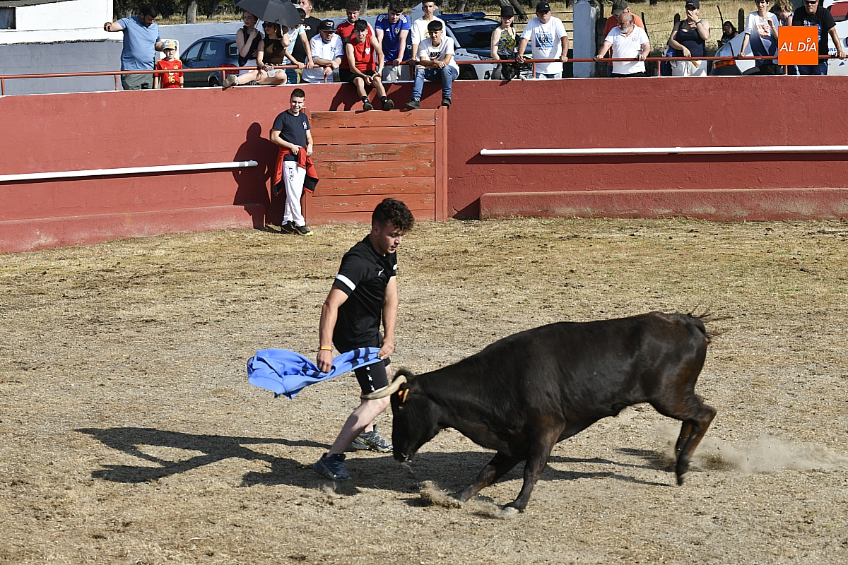 Una capea al estilo tradicional en la cual los mozos más valientes demostraban a los aficionados su arte para el engaño y estilo con el capote, sorteando con soltura los embistes de las bravas vacas que daban un buen juego en el ruedo. Todo este ambiente contado, estuvo amenizado por las notas musicales de la charanga mirobrigense Al Rojo, que hacía olvidar el calor con sus agradables melodías charangueras.