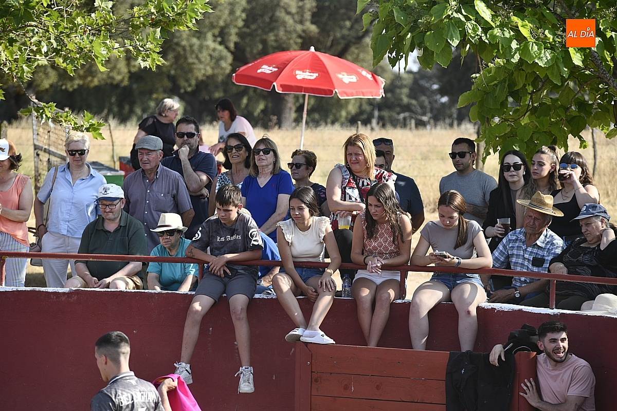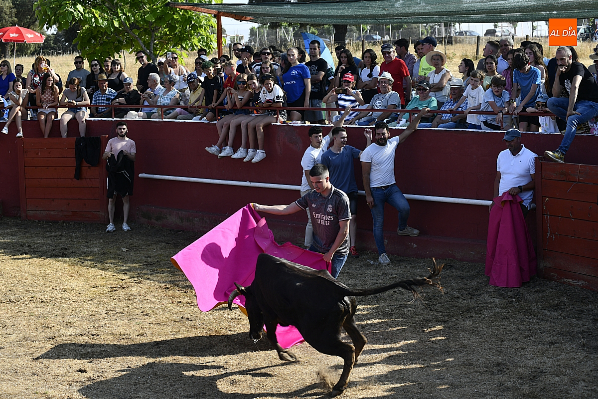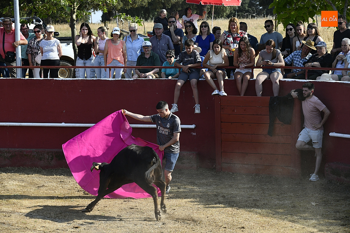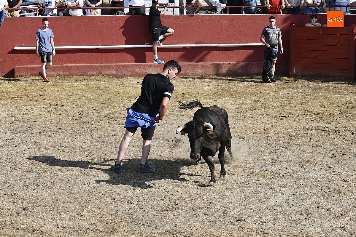 Una capea al estilo tradicional en la cual los mozos más valientes demostraban a los aficionados su arte para el engaño y estilo con el capote, sorteando con soltura los embistes de las bravas vacas que daban un buen juego en el ruedo. Todo este ambiente contado, estuvo amenizado por las notas musicales de la charanga mirobrigense Al Rojo, que hacía olvidar el calor con sus agradables melodías charangueras.