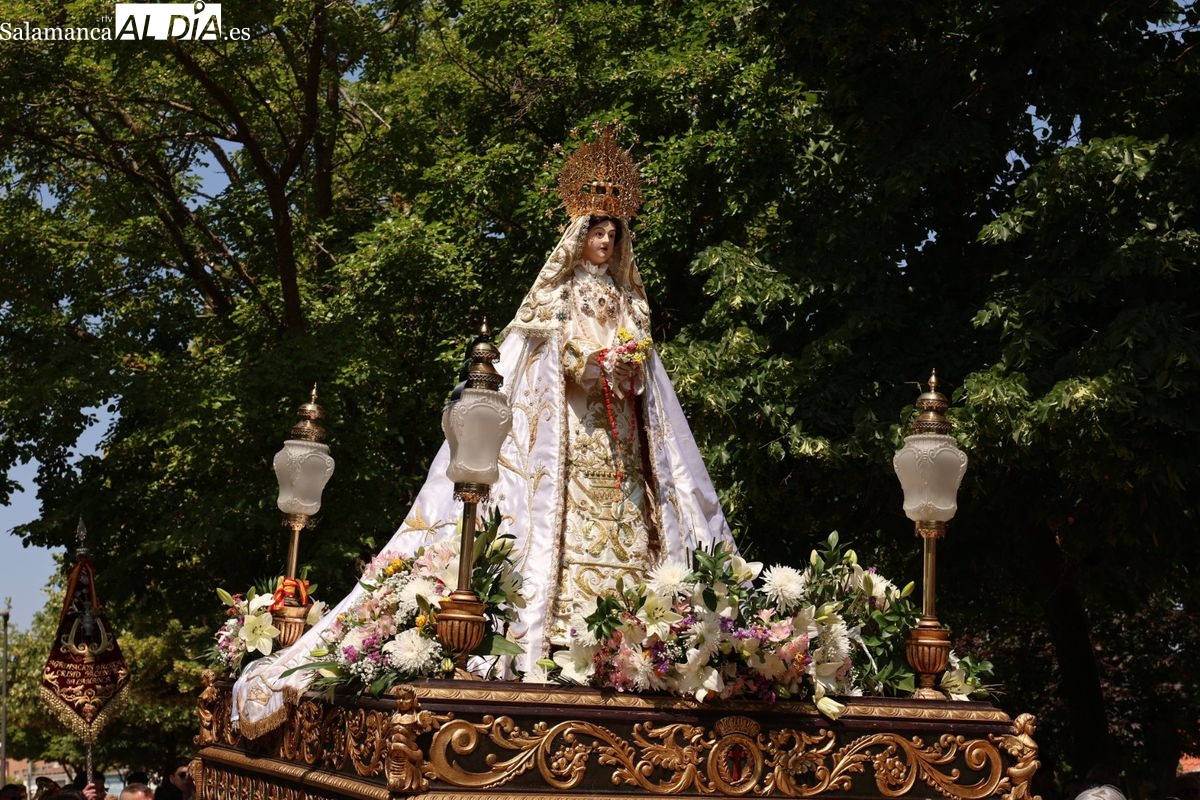 Posteriormente, la imagen de la Virgen de la Salud recorrió en procesión diversas calles del barrio. Este tradicional desfile religioso es uno de los momentos más esperados por los residentes de Tejares, quienes acompañaron a su patrona mostrando su devoción y respeto.