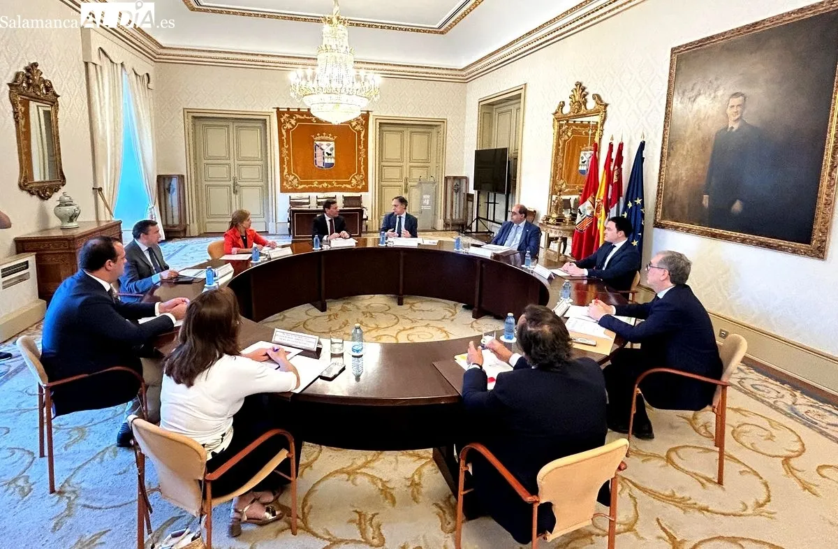 En la reunión de seguimiento de este lunes en el Consistorio se constató el progreso de estas iniciativas. Al encuentro asistieron el consejero de Economía de la Junta, Carlos Fernández Carriedo; el alcalde de Salamanca, Carlos García Carbayo; el secretario general de la Universidad de Salamanca, Alfredo Ávila; y el vicepresidente primero de la Diputación Provincial, David Mingo. También estuvieron presentes la directora general de Política Económica y Competitividad de la Junta, Rosa Cuesta; el delegado territorial de la Junta en Salamanca, Eloy Ruiz; los concejales de Economía y Hacienda y de Promoción Económica del Ayuntamiento, Fernando Rodríguez y Pedro Martínez, respectivamente; y la diputada de Medio Ambiente y Fomento de la Diputación, Pilar Sánchez.