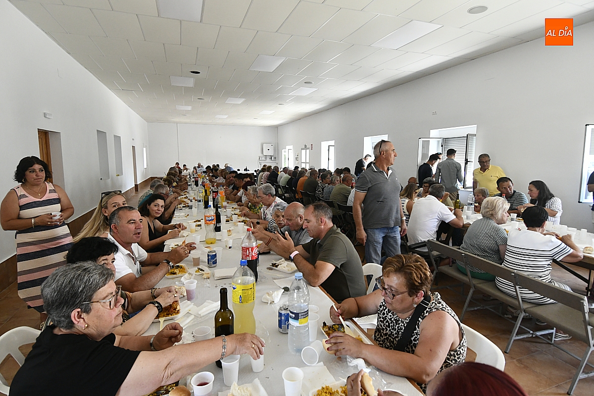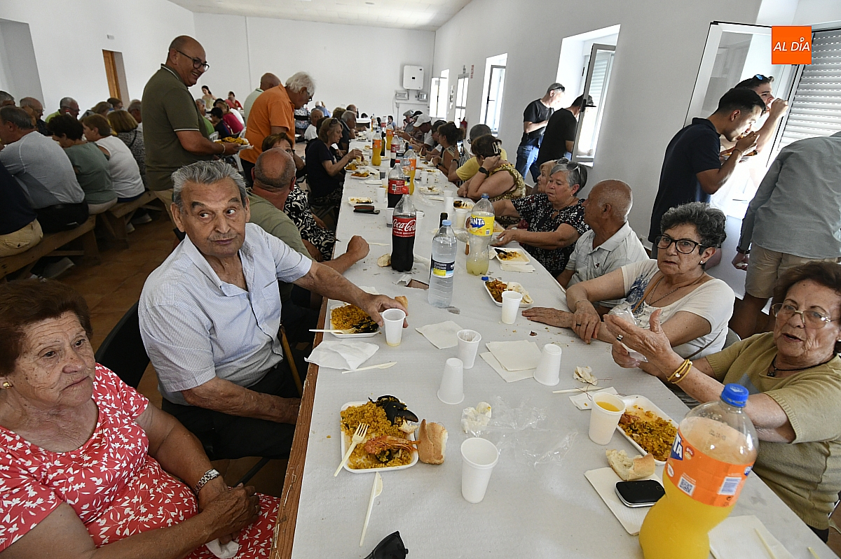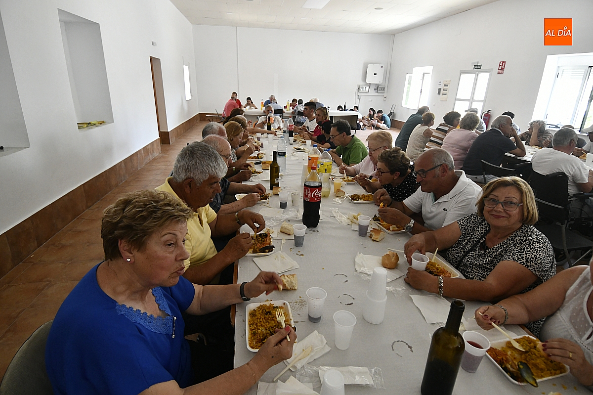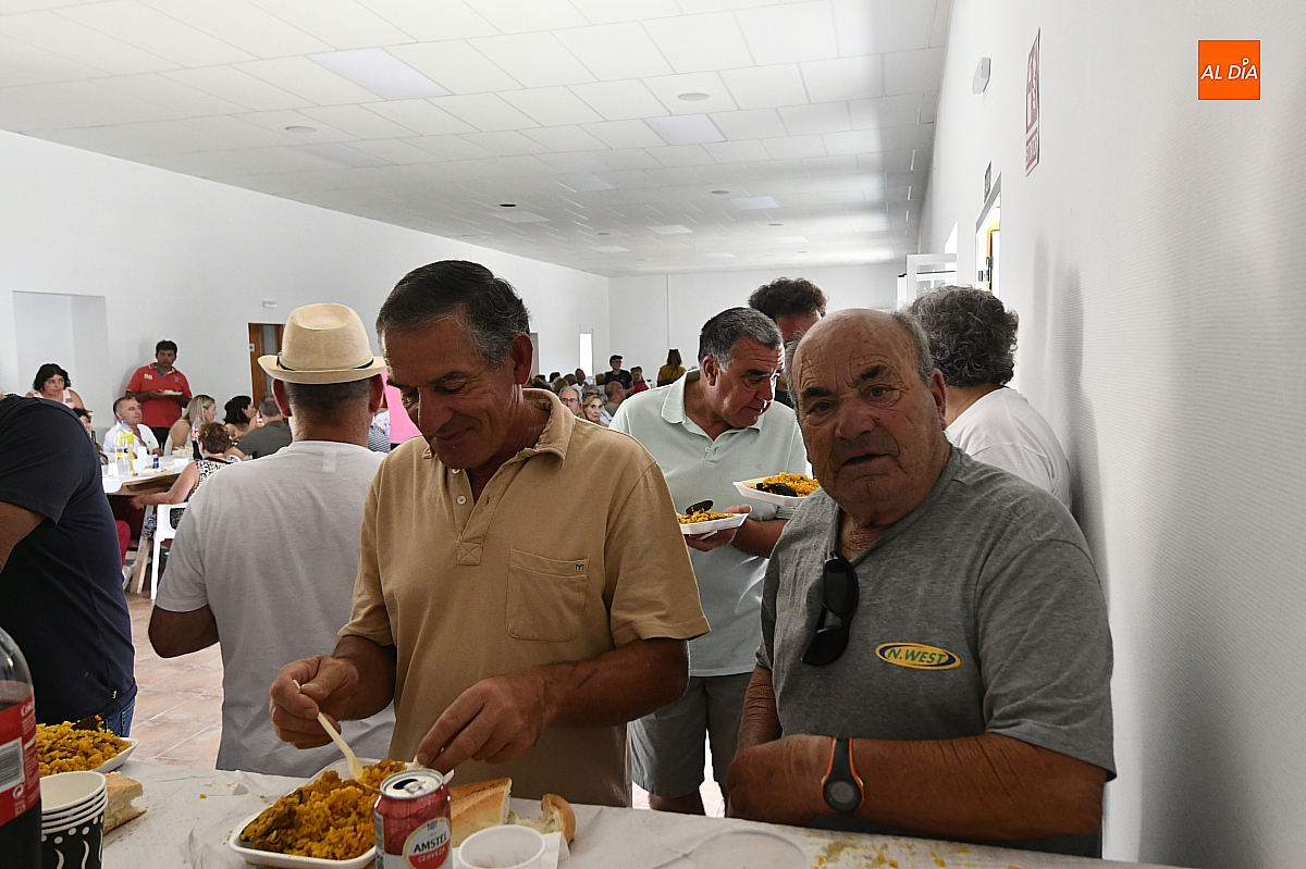Martín de Yeltes puso fin a las fiestas de San Antonio de Padua con una gran paella popular que acogió a más de 400 personas. El evento se celebró en el salón multiusos y sus alrededores, donde los asistentes encontraron refugio del intenso calor —más de 32 grados— bajo las sombras de los árboles del exterior, mientras disfrutaban de un ambiente festivo y familiar.