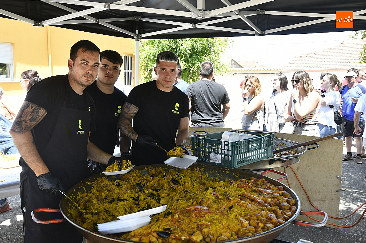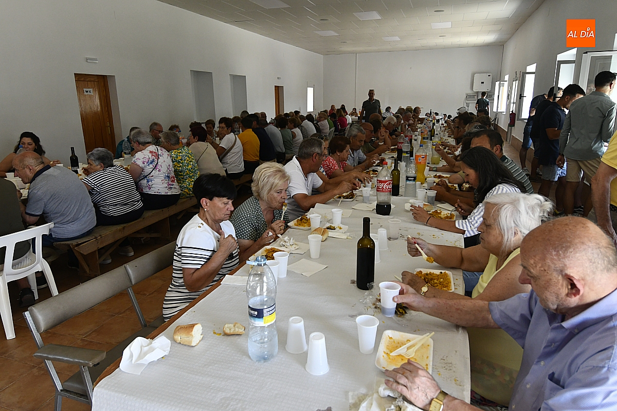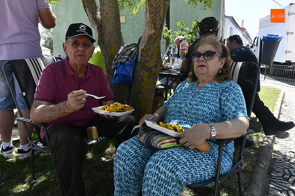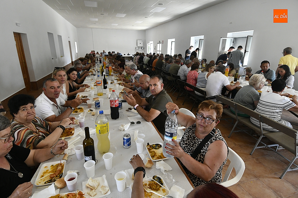 Martín de Yeltes puso fin a las fiestas de San Antonio de Padua con una gran paella popular que acogió a más de 400 personas. El evento se celebró en el salón multiusos y sus alrededores, donde los asistentes encontraron refugio del intenso calor —más de 32 grados— bajo las sombras de los árboles del exterior, mientras disfrutaban de un ambiente festivo y familiar.