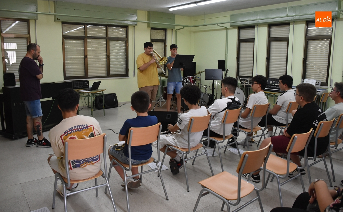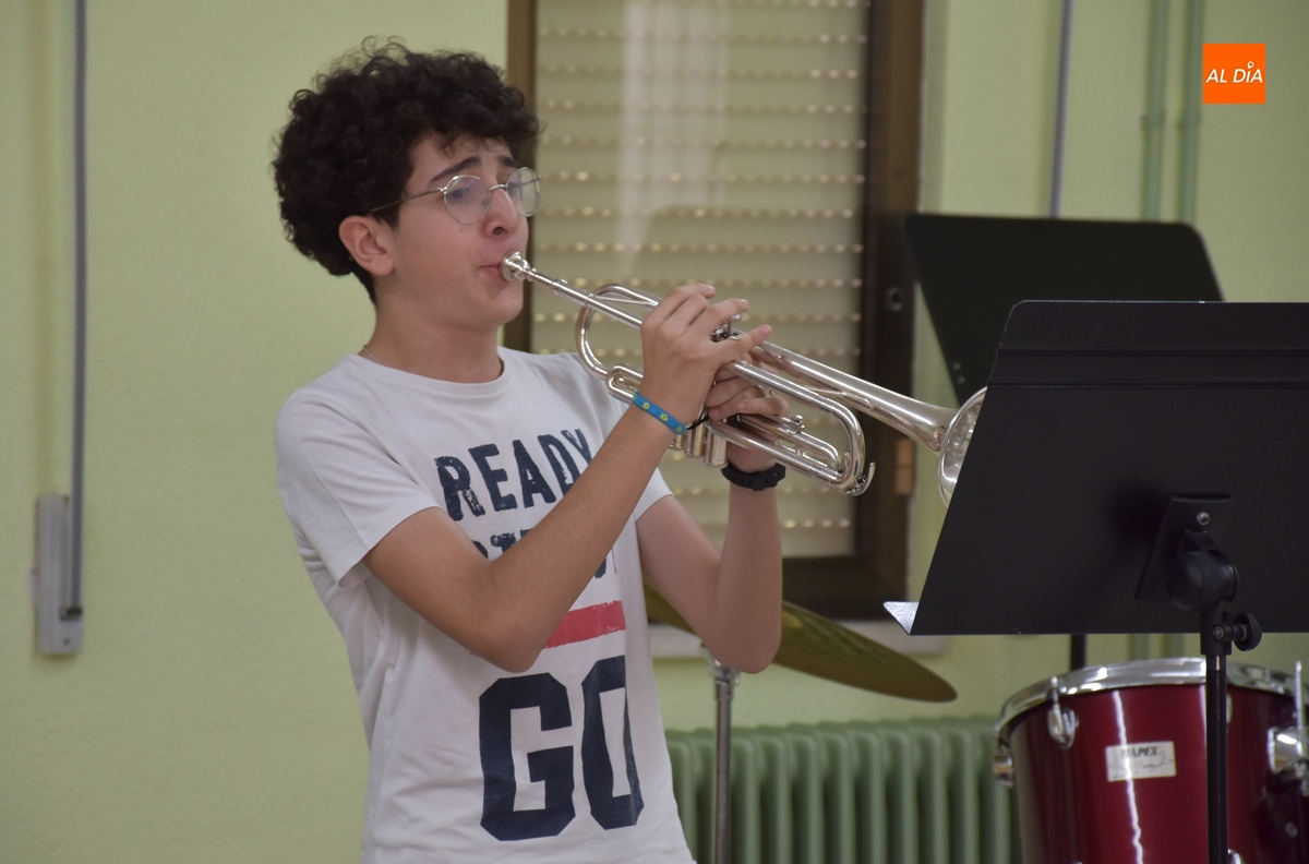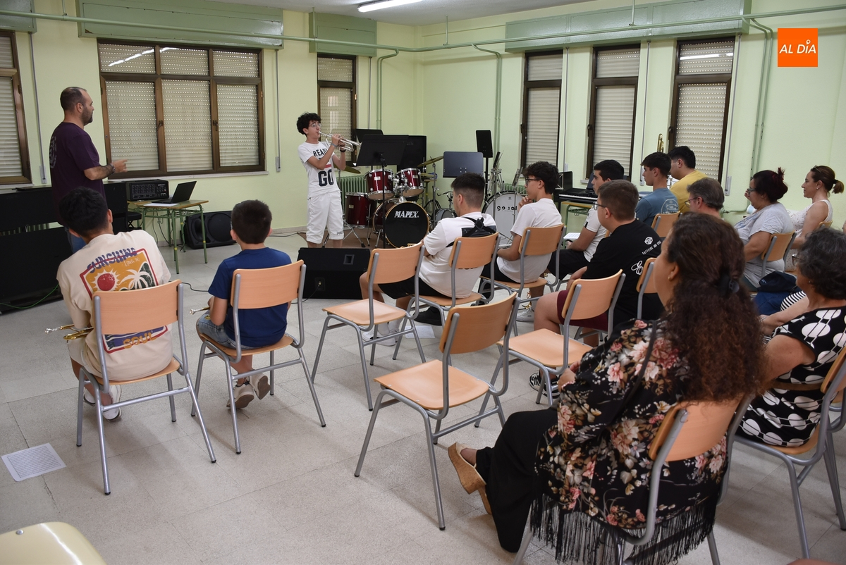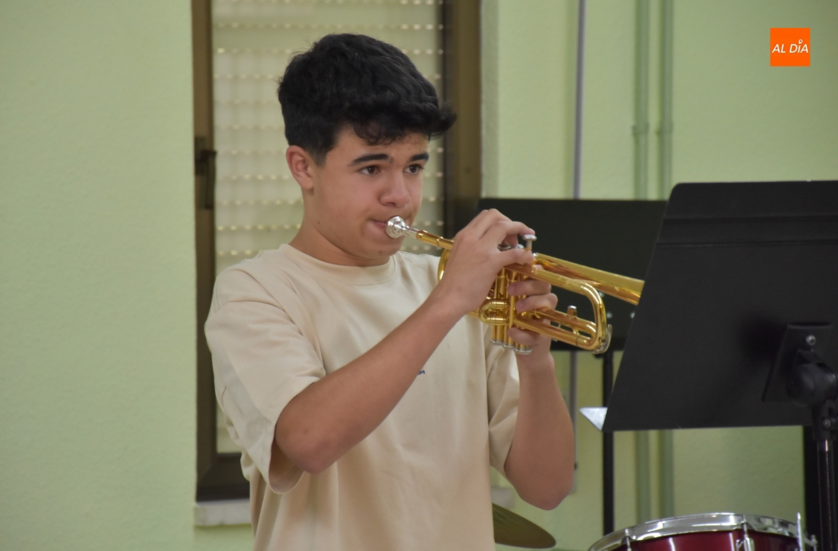 Precisamente con una de las trompetas y el saxofón se pudieron escuchar dos interpretaciones de La Potra Salvaje de Isabel Aaiún. En lo que respecta al resto de piezas (cada alumno tocó un tema), hubo un poco de todo, como el Será porque te amo, el Contando lunares de Don Patricio, La Morocha, la banda sonora de Piratas del Caribe, las Lágrimas desordenadas de Melendi o La vereda de la puerta de atrás de Extremoduro con el trombón. Para cerrar, se tocó una pieza conjunta con una trompeta y el trombón.