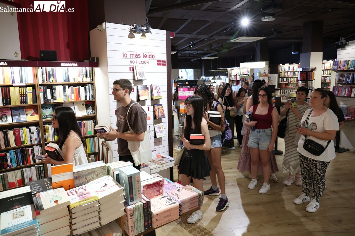 La expectación por este encuentro ha sido notable, consolidando a Joana Marcús como un referente en la literatura juvenil actual. La popular librería salmantina ha vivido momentos de gran afluencia, con visibles colas de seguidores que aguardaban con ilusión su turno incluso antes de la hora programada para el inicio de la firma, demostrando el fervor que despiertan las narrativas de la autora mallorquina.