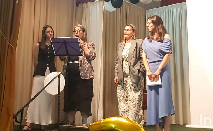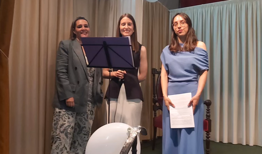 La graduación se desarrolló en el salón de actos del IES, que se quedó pequeño para acoger a todos los familiares y amigos que quisieron acompañar a los graduados (cerca de medio centenar), que en primer lugar escucharon unas palabras de sus tutoras, y de una representante de la Asociación de Madres y Padres de Alumnos del centro.