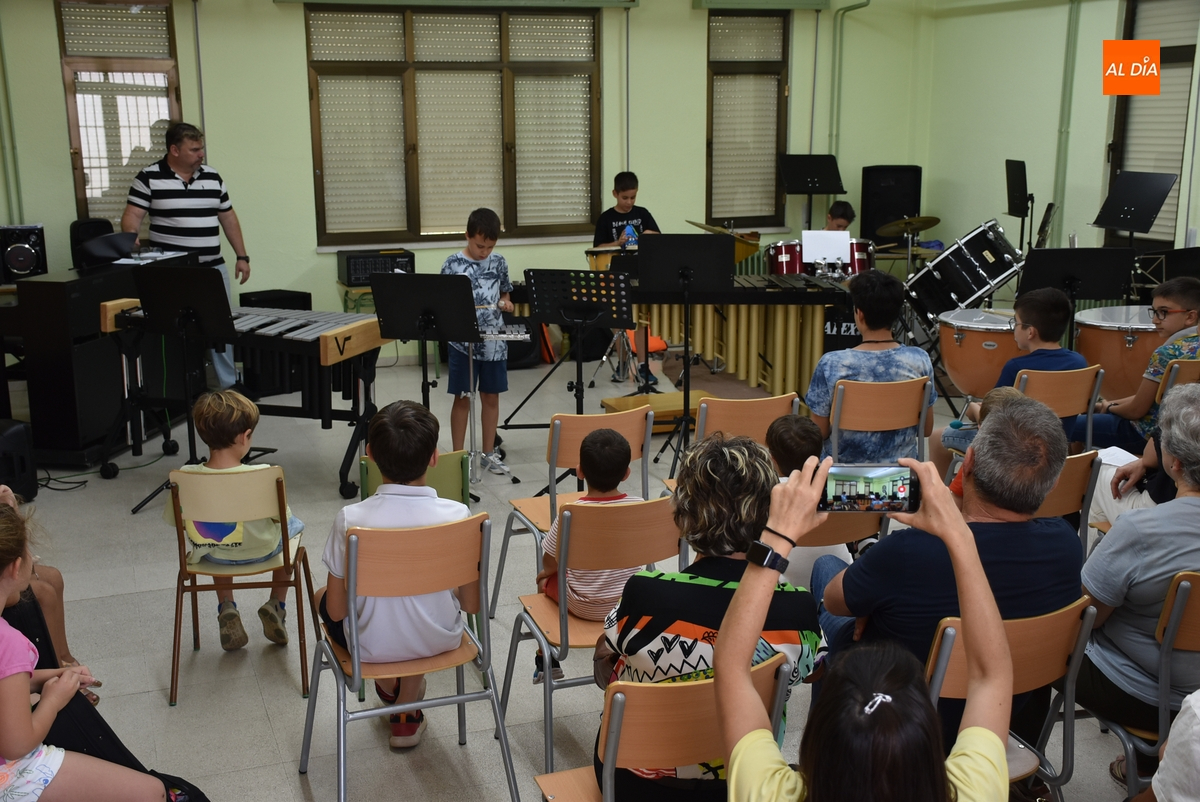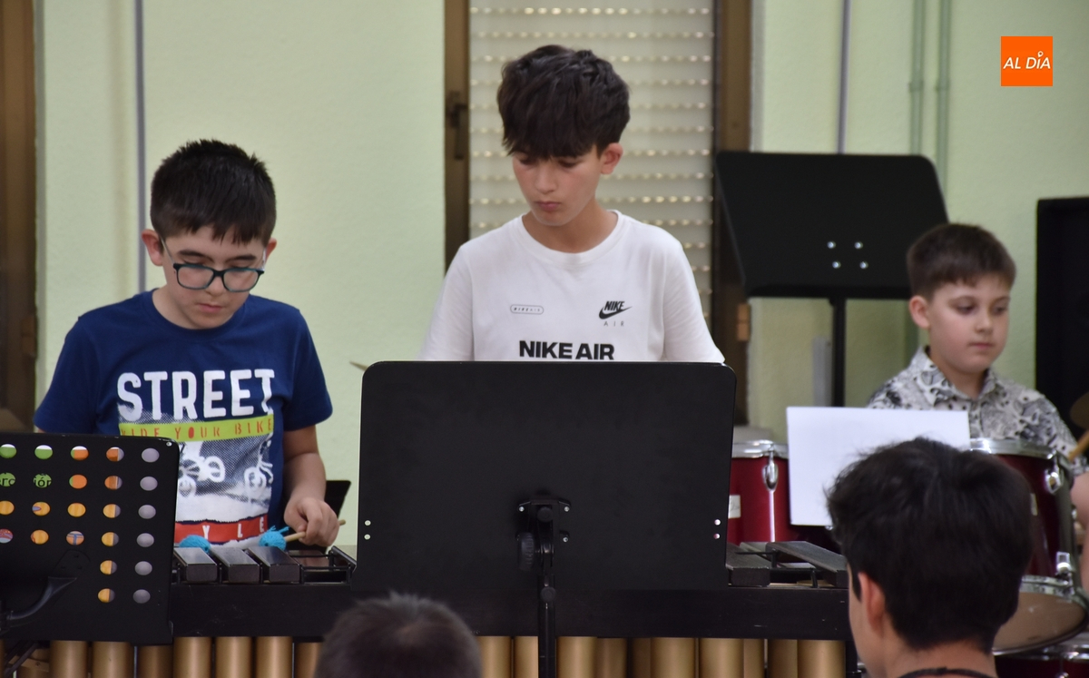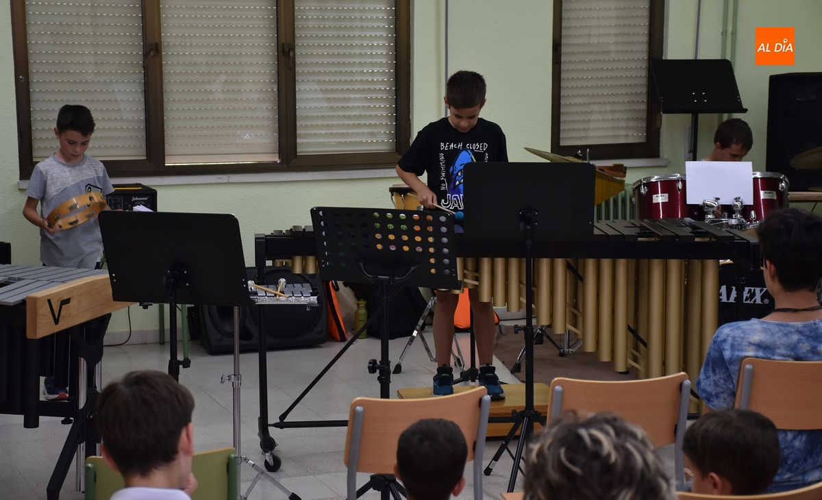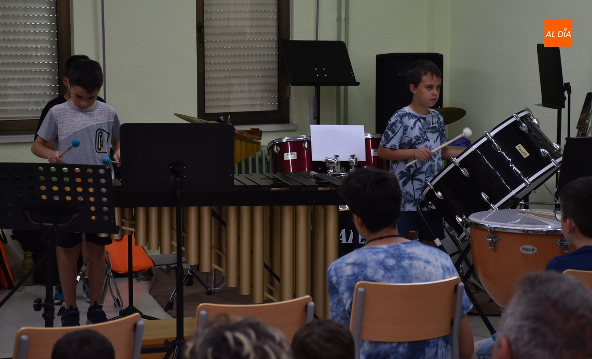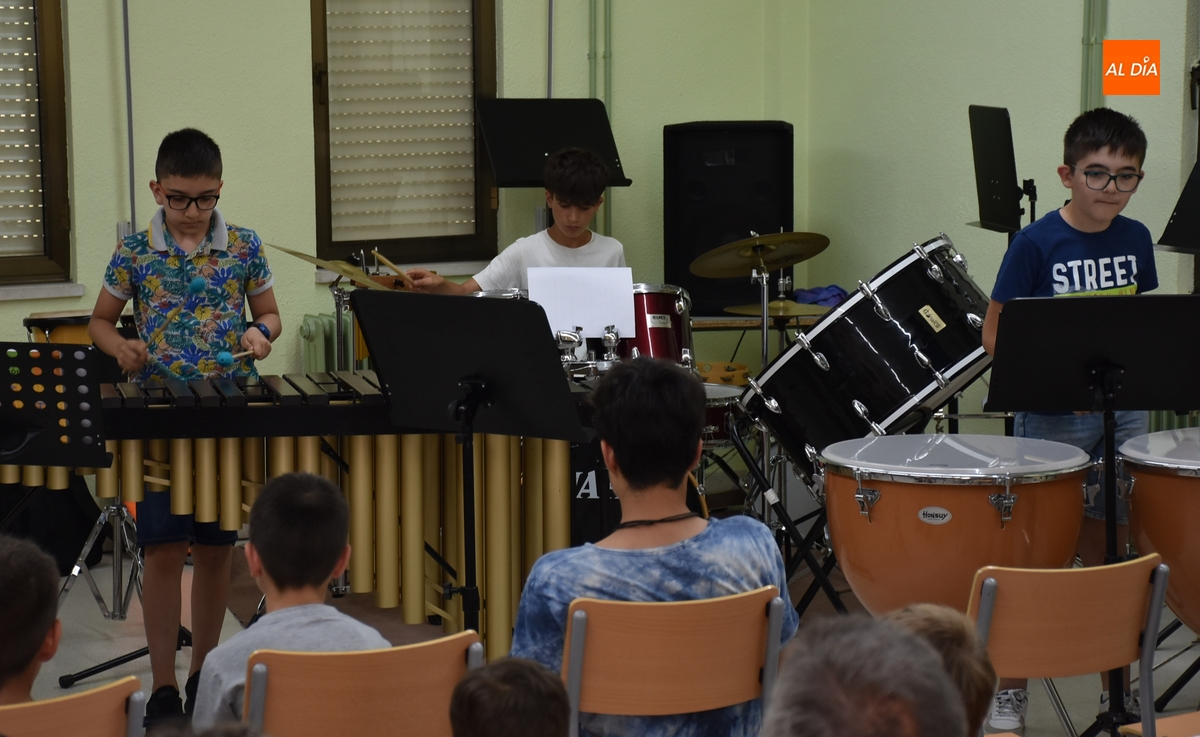 El ciclo de audiciones de fin de curso de la Escuela Municipal de Música Juan Esquivel de Barahona de Ciudad Rodrigo continuó en la tarde del miércoles con los alumnos de Percusión, que ofrecieron a unos cuantos familiares varias piezas tanto de forma individual como grupal empleando varios instrumentos diferentes.