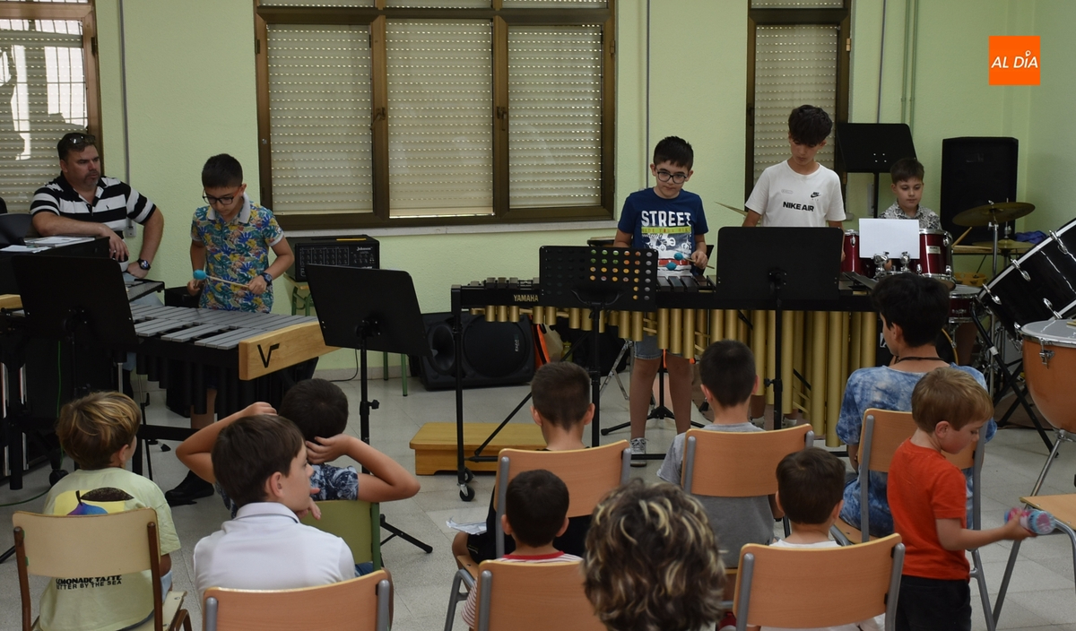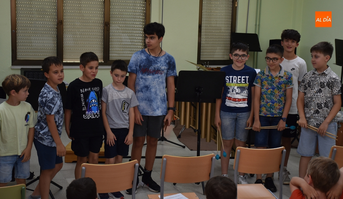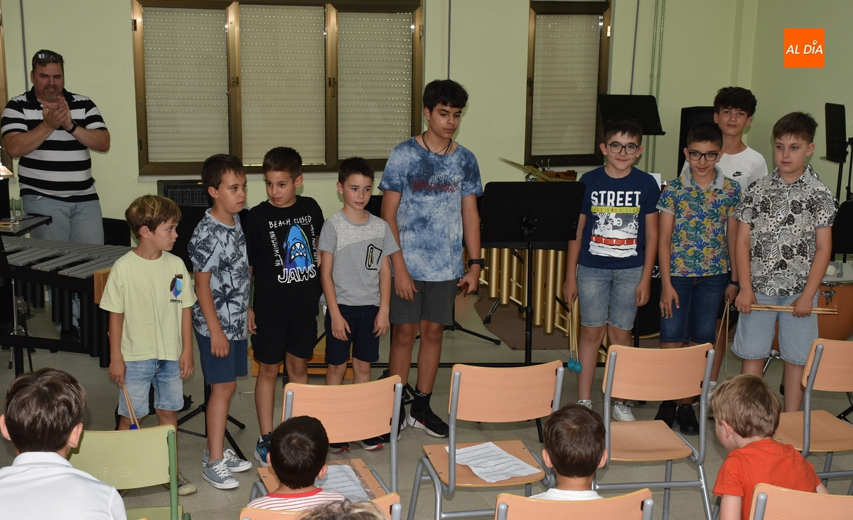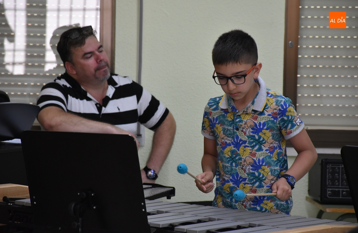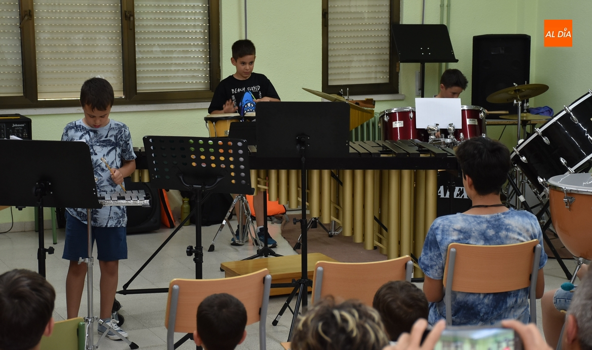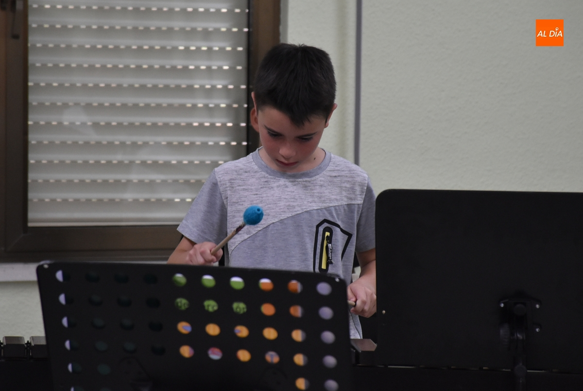 El ciclo de audiciones de fin de curso de la Escuela Municipal de Música Juan Esquivel de Barahona de Ciudad Rodrigo continuó en la tarde del miércoles con los alumnos de Percusión, que ofrecieron a unos cuantos familiares varias piezas tanto de forma individual como grupal empleando varios instrumentos diferentes.