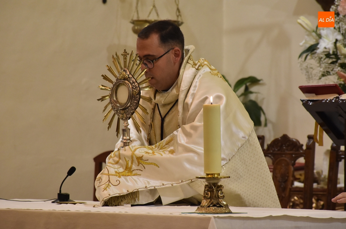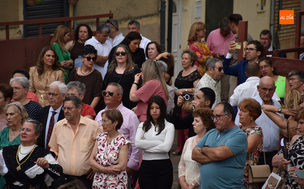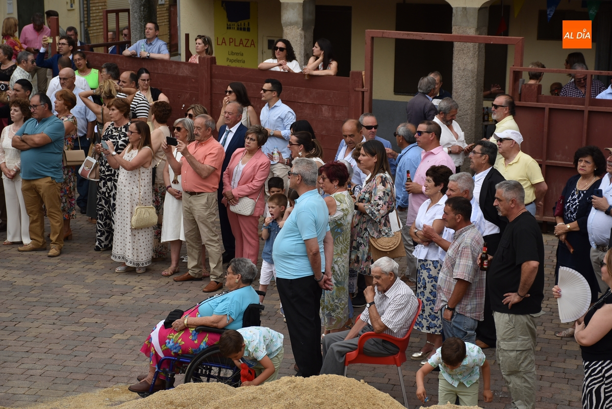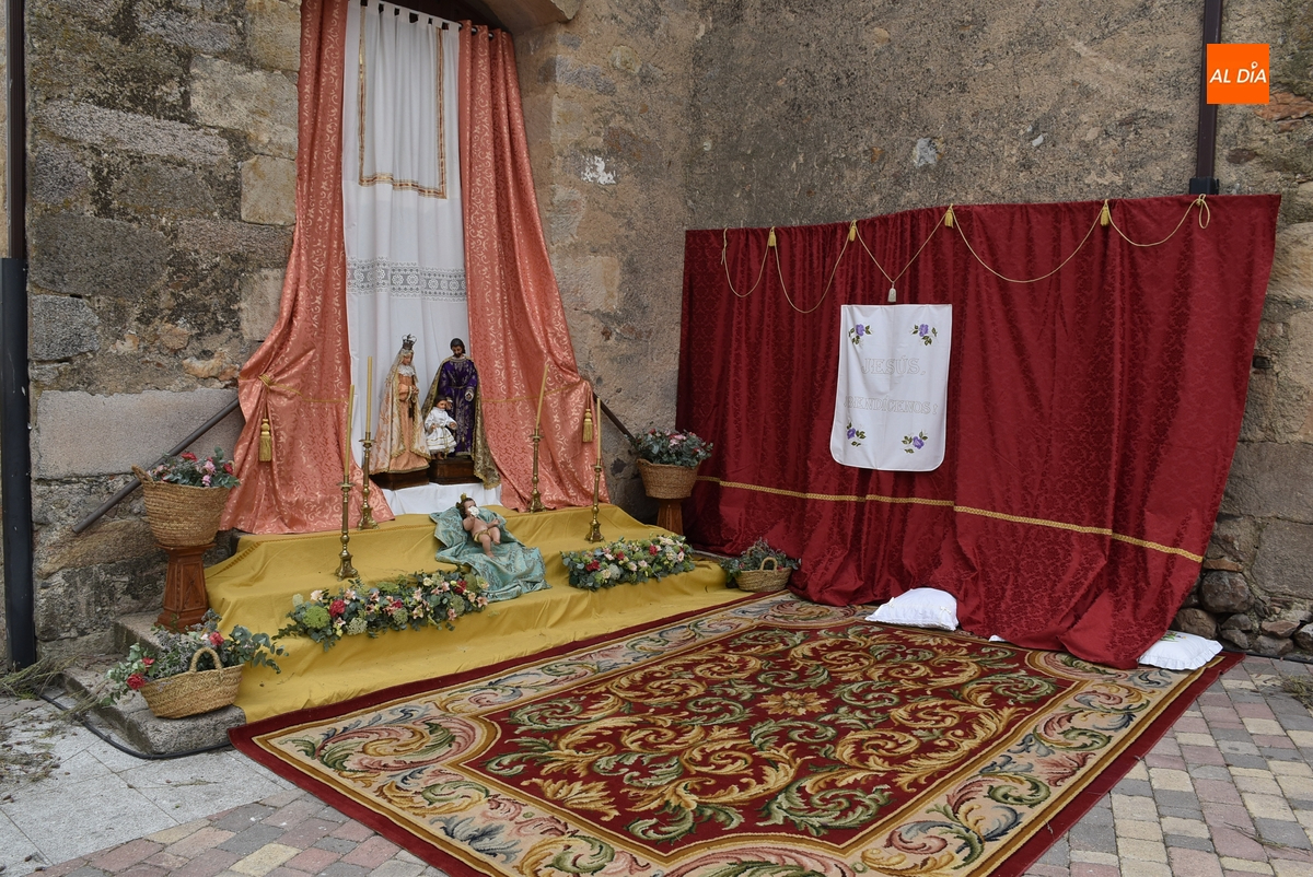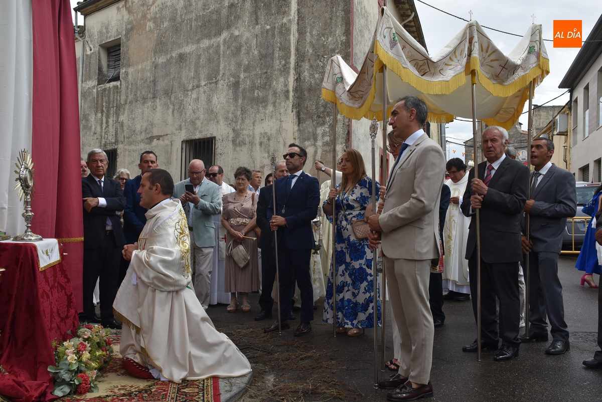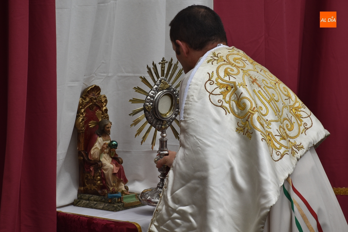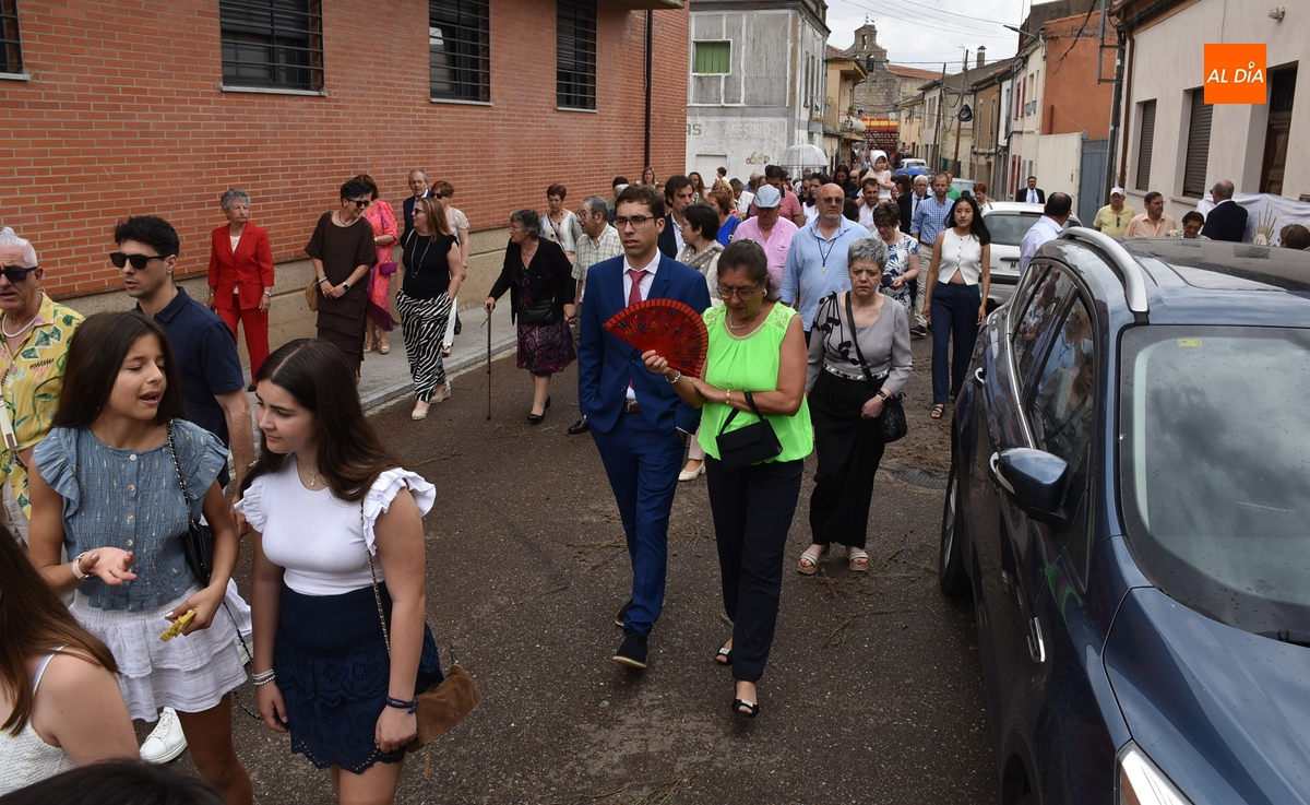 Eso hizo que las integrantes del Grupo de Baile Charro de La Fuente de San Esteban que ya estaban dispuestas para procesionar deshiciesen su formación, y que el Santísimo Sacramento únicamente se llegase a asomar a la puerta del templo en manos del párroco, Anselmo Matilla, quién volvió hacia el interior para llevar a cabo unas oraciones durante varios minutos confiando en que cesase la lluvia, lo que ocurrió.