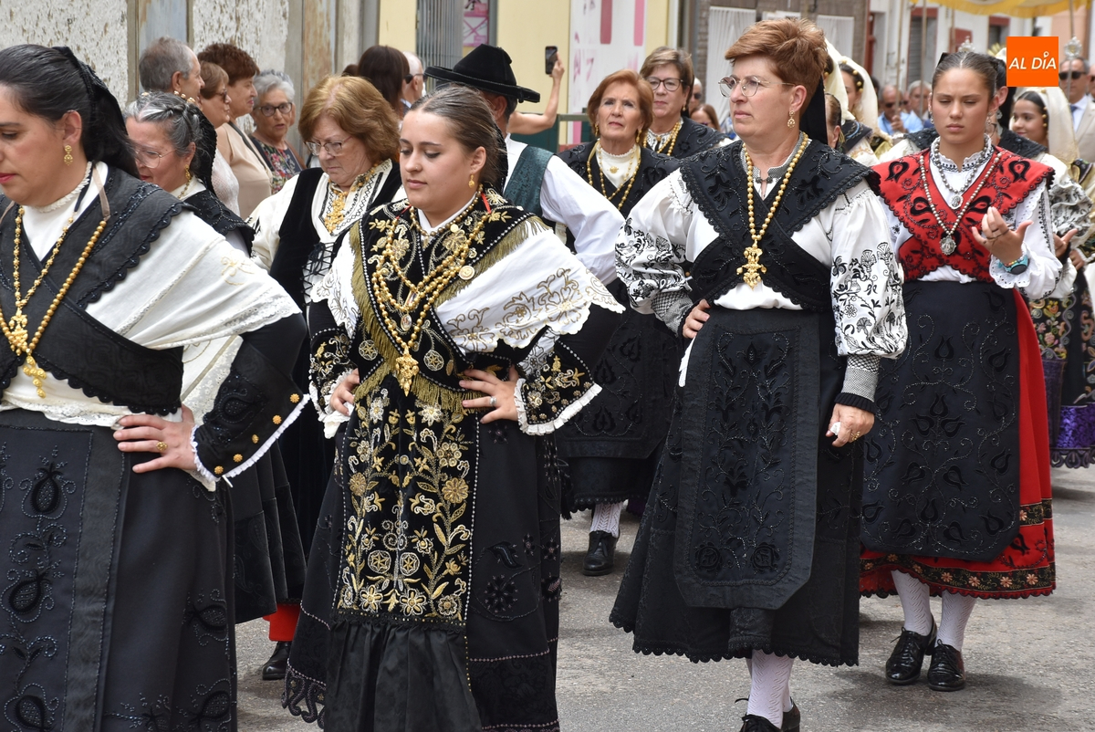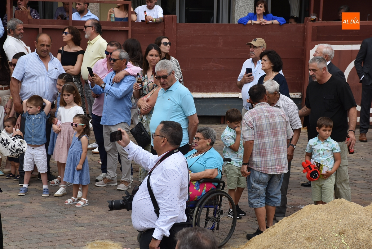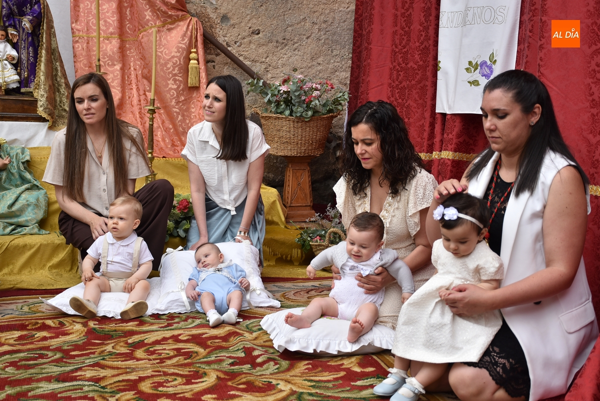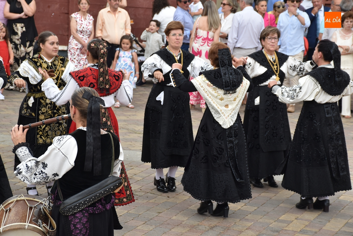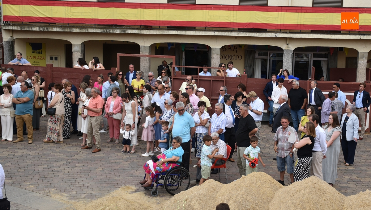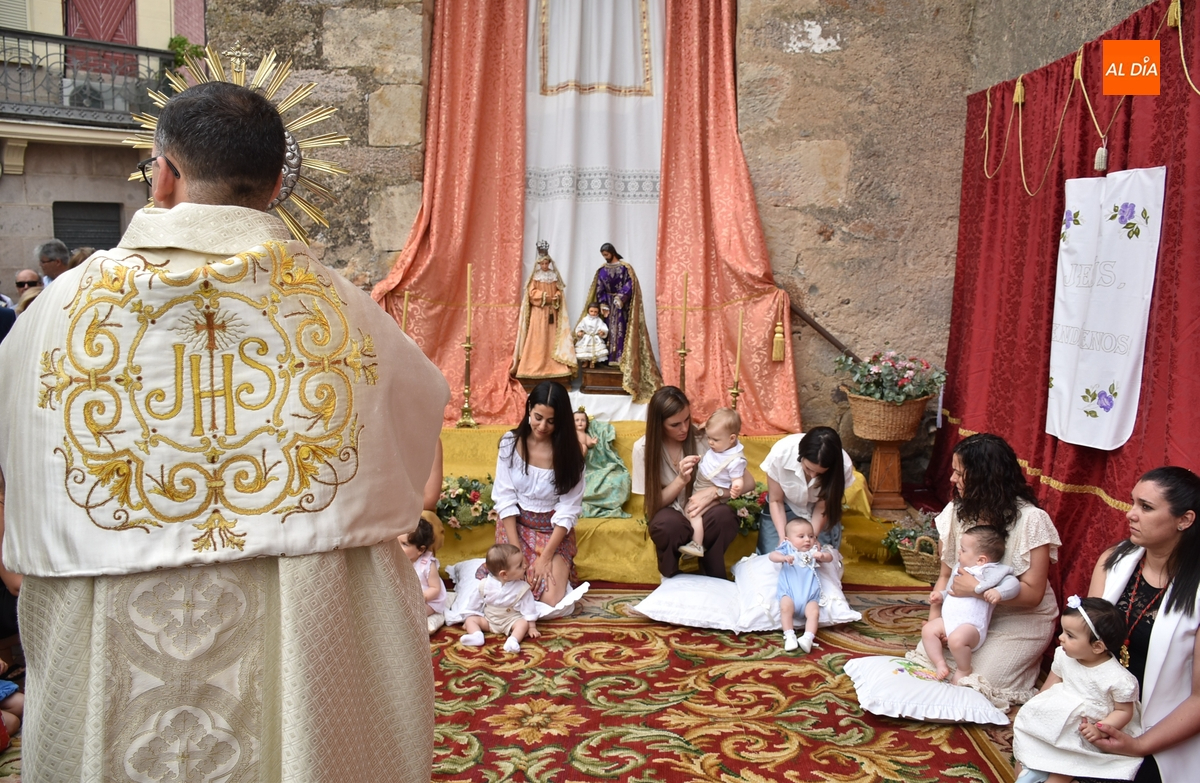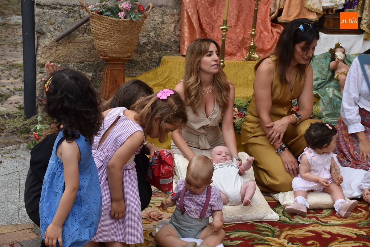 A continuación, siempre bajo palio, fue introducido en la Iglesia Parroquial, donde se impartió la bendición final, mientras en el exterior continuaban los bailes del Grupo de Baile Charro, que se tuvieron que interrumpir de nuevo por culpa de la lluvia, que volvió a hacer acto de presencia con otro chaparrón breve pero intenso. De este modo, todos los presentes se tuvieron que ir a tomar algo a cubierto.