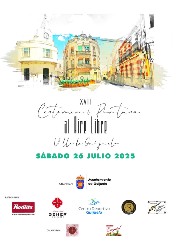 El Ayuntamiento de Guijuelo ha convocado la decimoséptima edición de su certamen de pintura al aire libre, que se celebrará el sábado 26 de julio. El concurso repartirá más de 4.000 euros en siete premios e incluye como novedad un detalle especial para los participantes menores de 14 años, con inscripciones abiertas hasta el 24 de julio