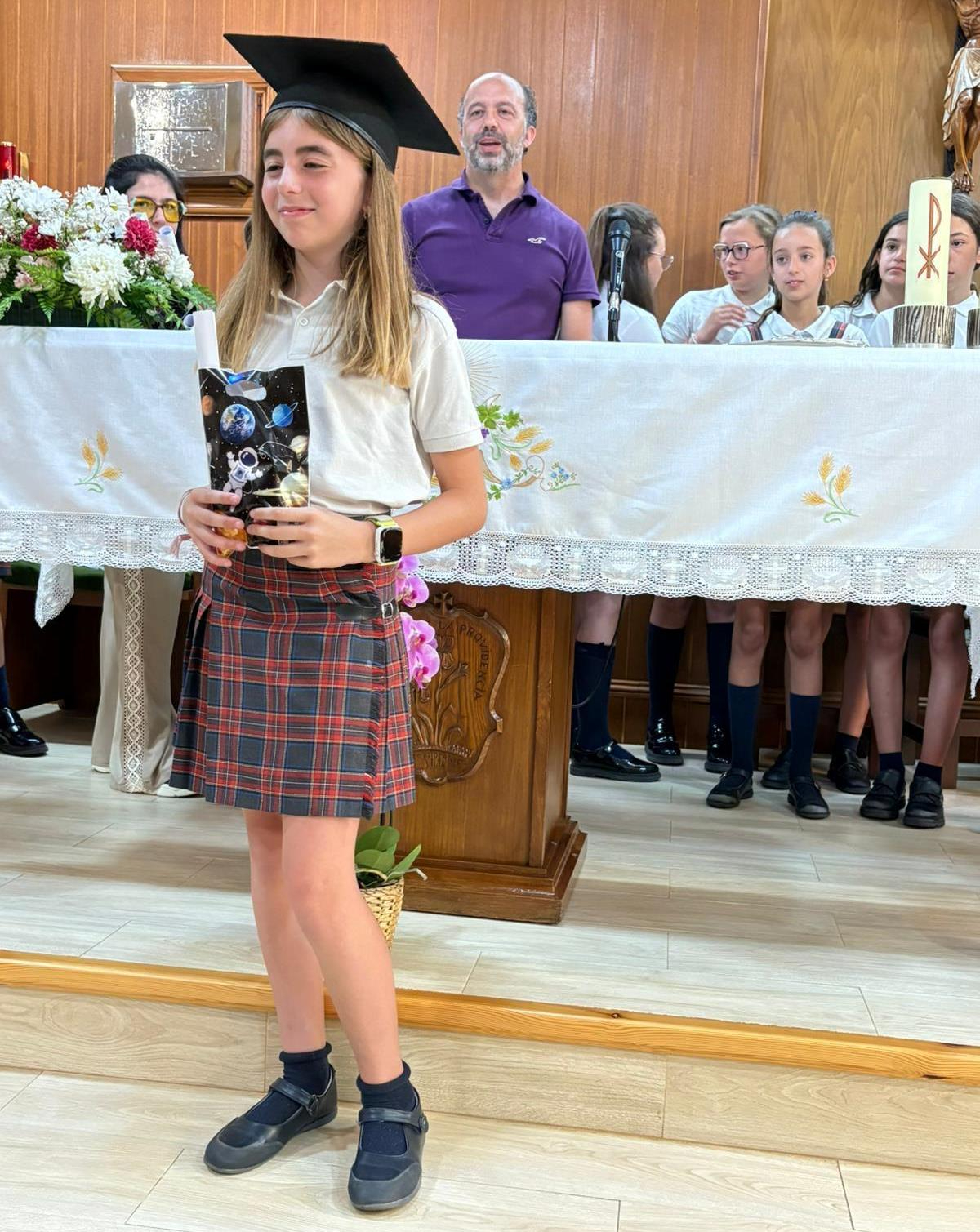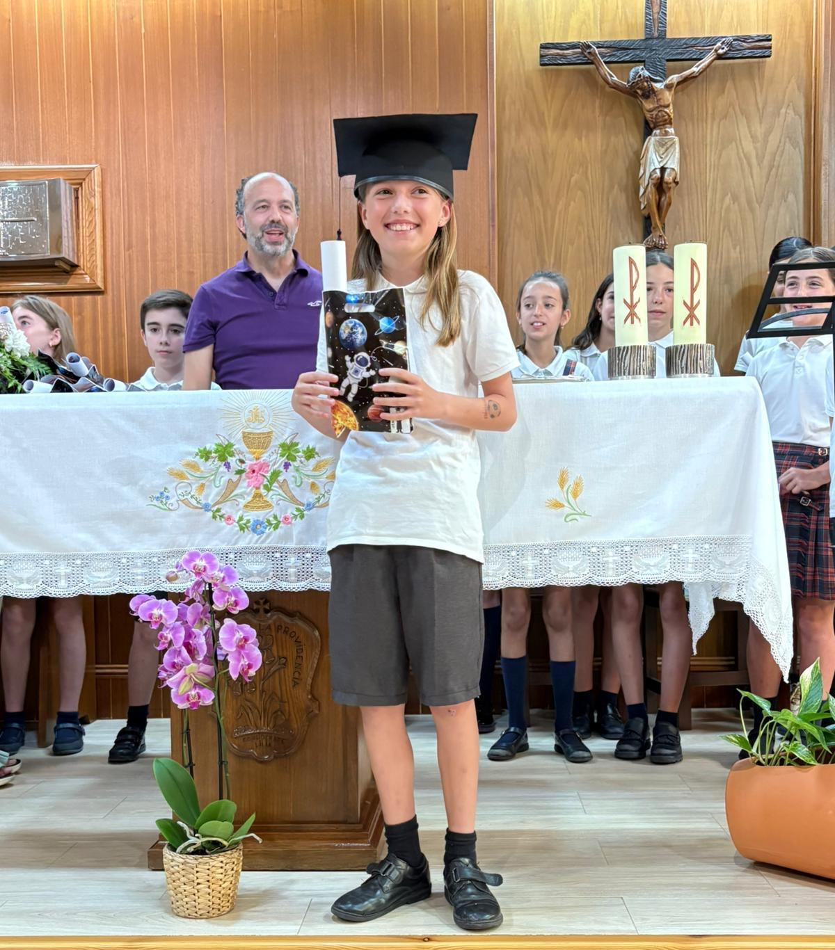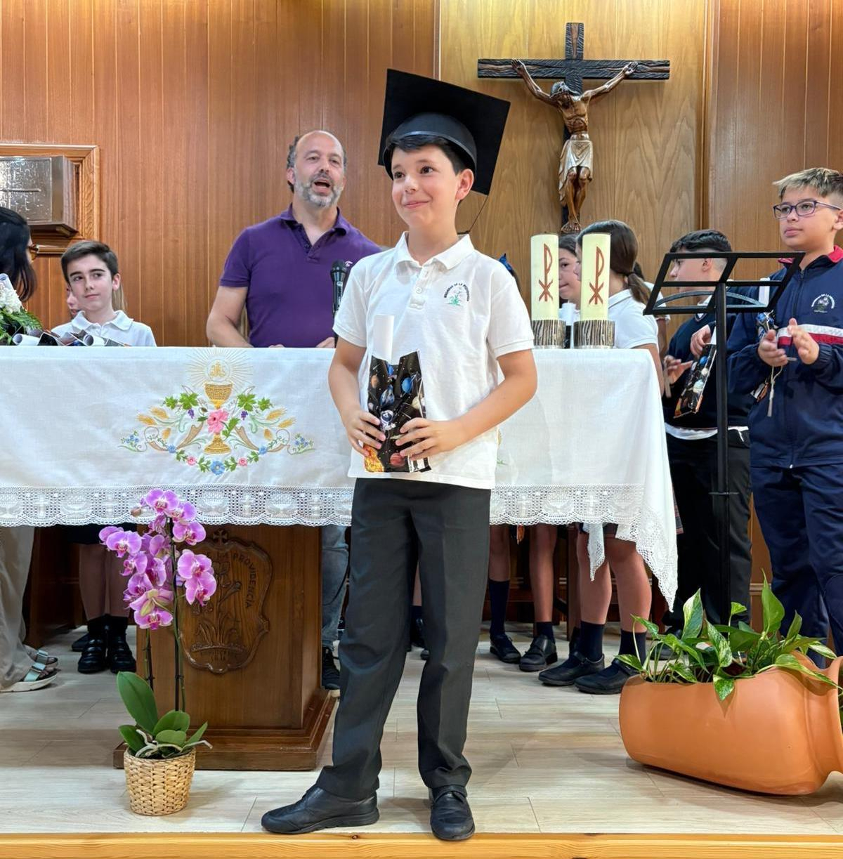 La graduación de la mañana del jueves tuvo lugar en la capilla del edificio de la Avenida Conde de Foxá, donde se congregaron unos cuantos familiares para arropar a los alumnos. El tutor del grupo, Emilio, les dirigió unas palabras, resaltando el crecimiento personal y académico de cada uno de ellos, y animándoles a afrontar la etapa de Secundaria con “ilusión y responsabilidad”.