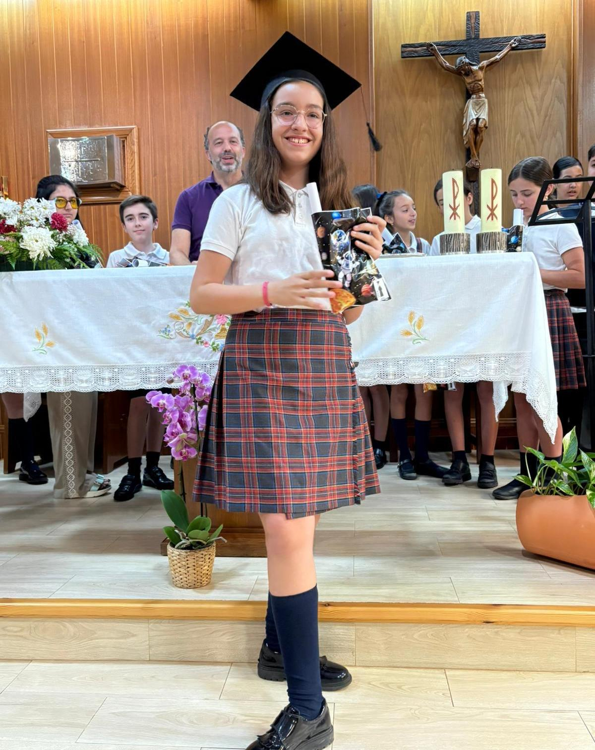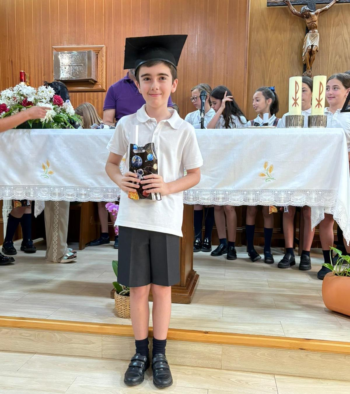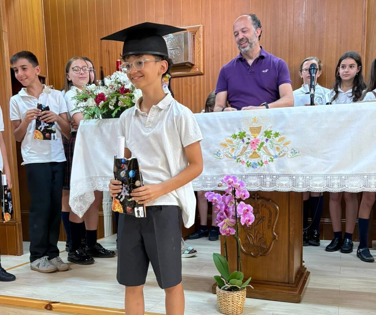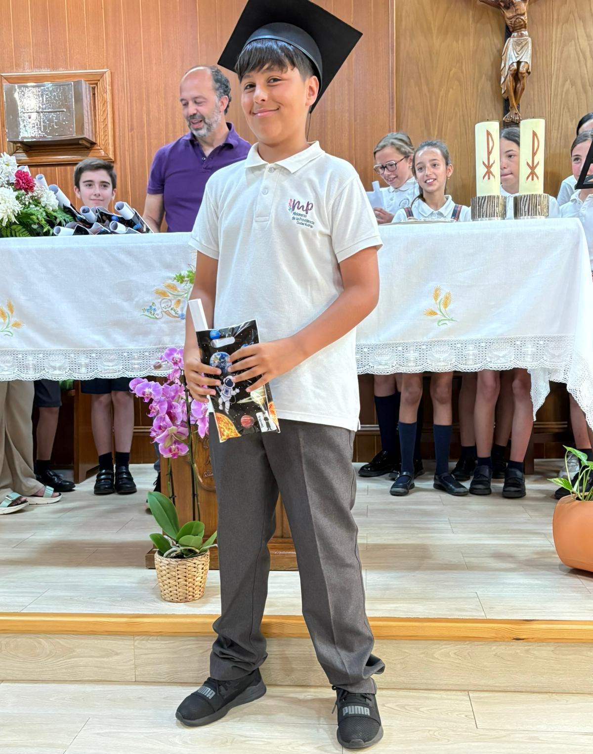 La graduación de la mañana del jueves tuvo lugar en la capilla del edificio de la Avenida Conde de Foxá, donde se congregaron unos cuantos familiares para arropar a los alumnos. El tutor del grupo, Emilio, les dirigió unas palabras, resaltando el crecimiento personal y académico de cada uno de ellos, y animándoles a afrontar la etapa de Secundaria con “ilusión y responsabilidad”.