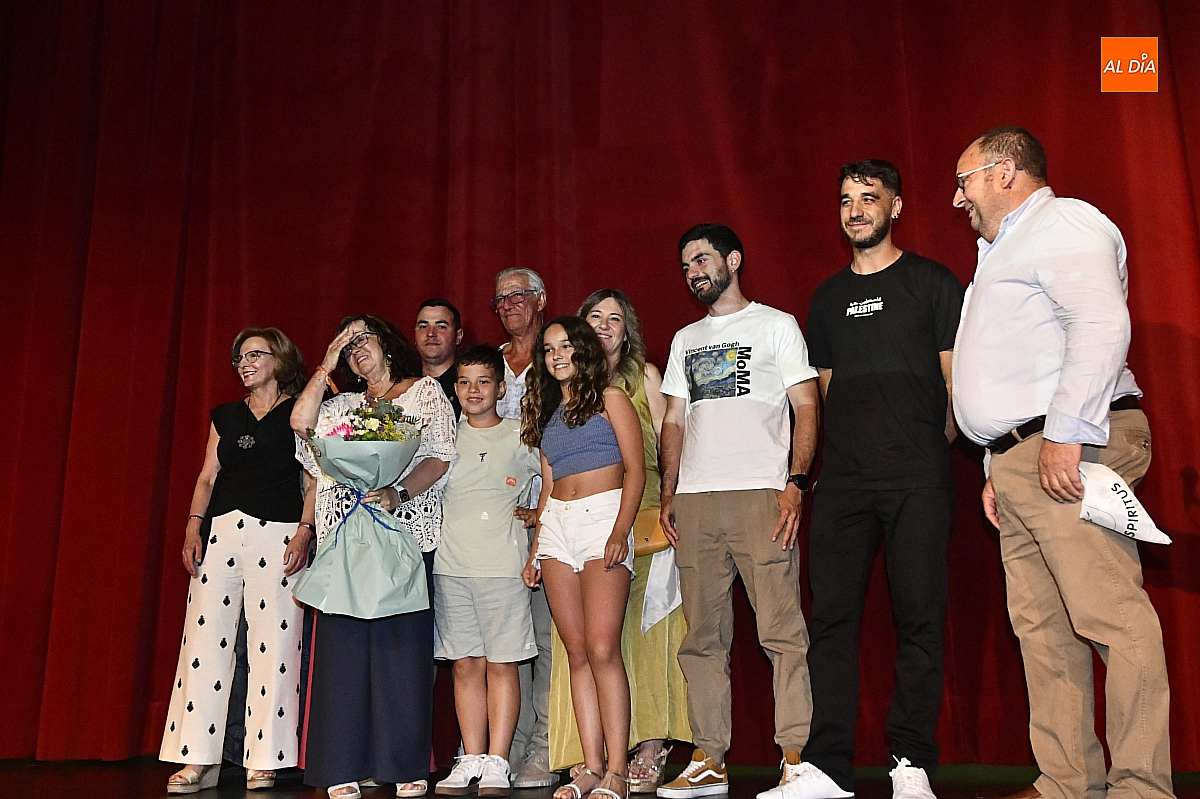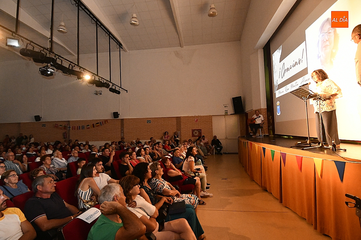 Conmovida, evocó también la calidez y generosidad con la que fue acogida en el pueblo, que terminó por convertirse en su hogar, y en el que —como ella misma expresó— logró sentirse “una más”. La proyección de vídeos de antiguos compañeros y familiares provocó una fuerte ovación y alguna lágrima, en una atmósfera de profunda gratitud.