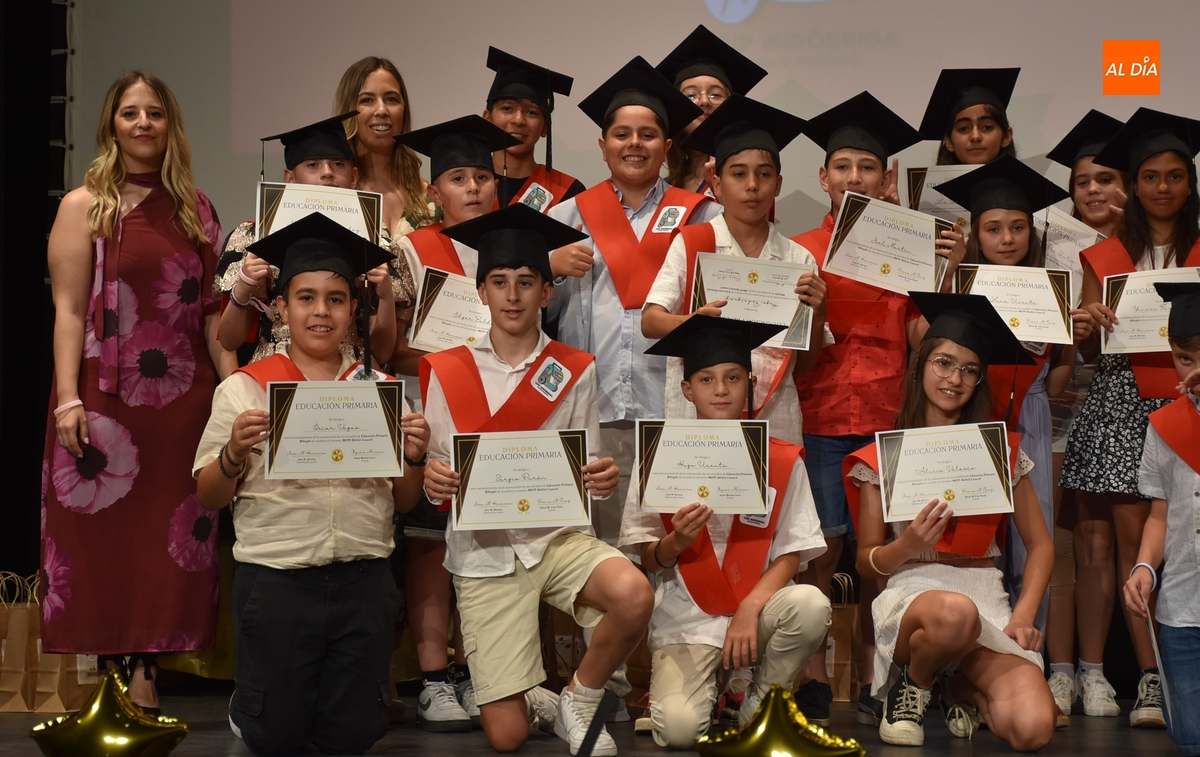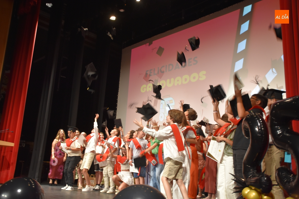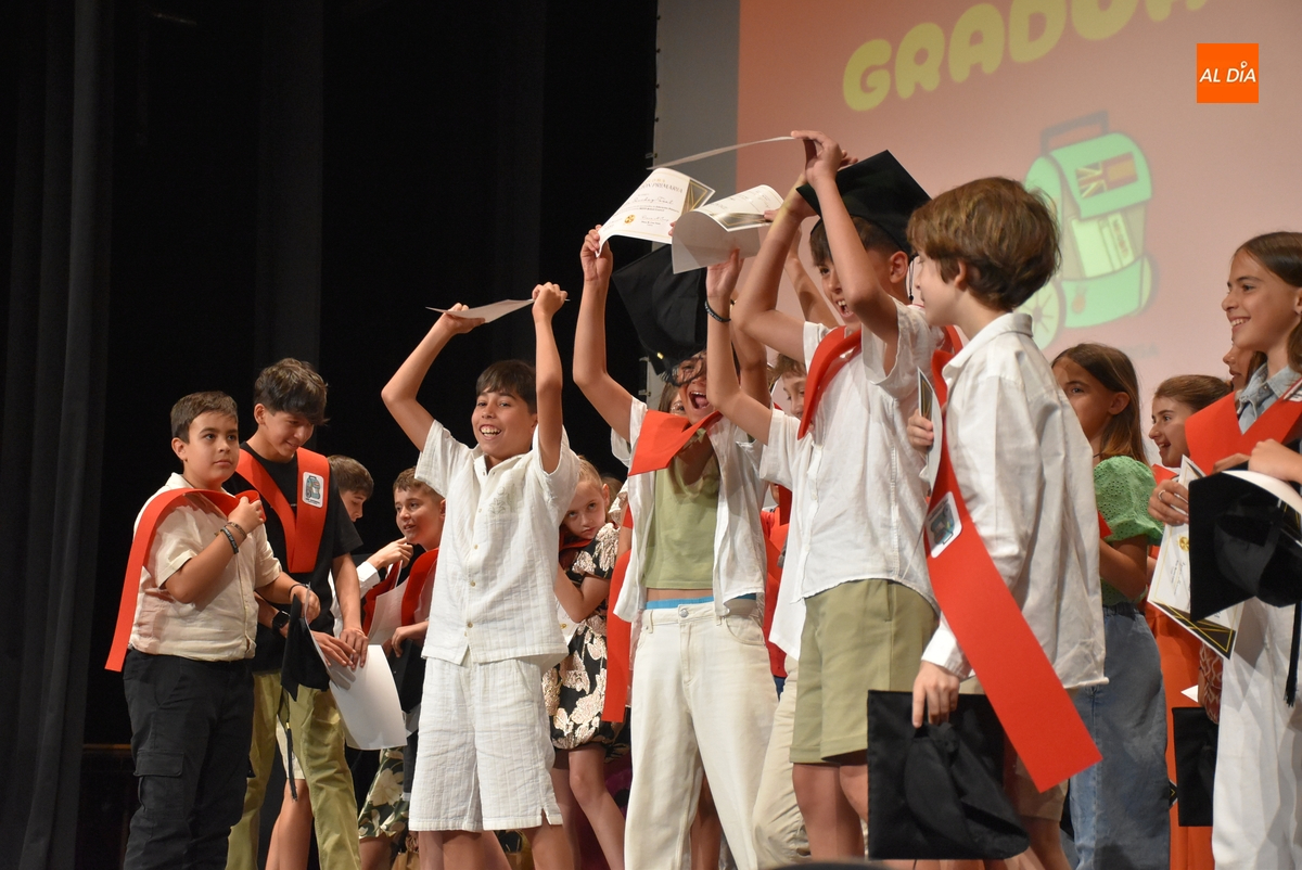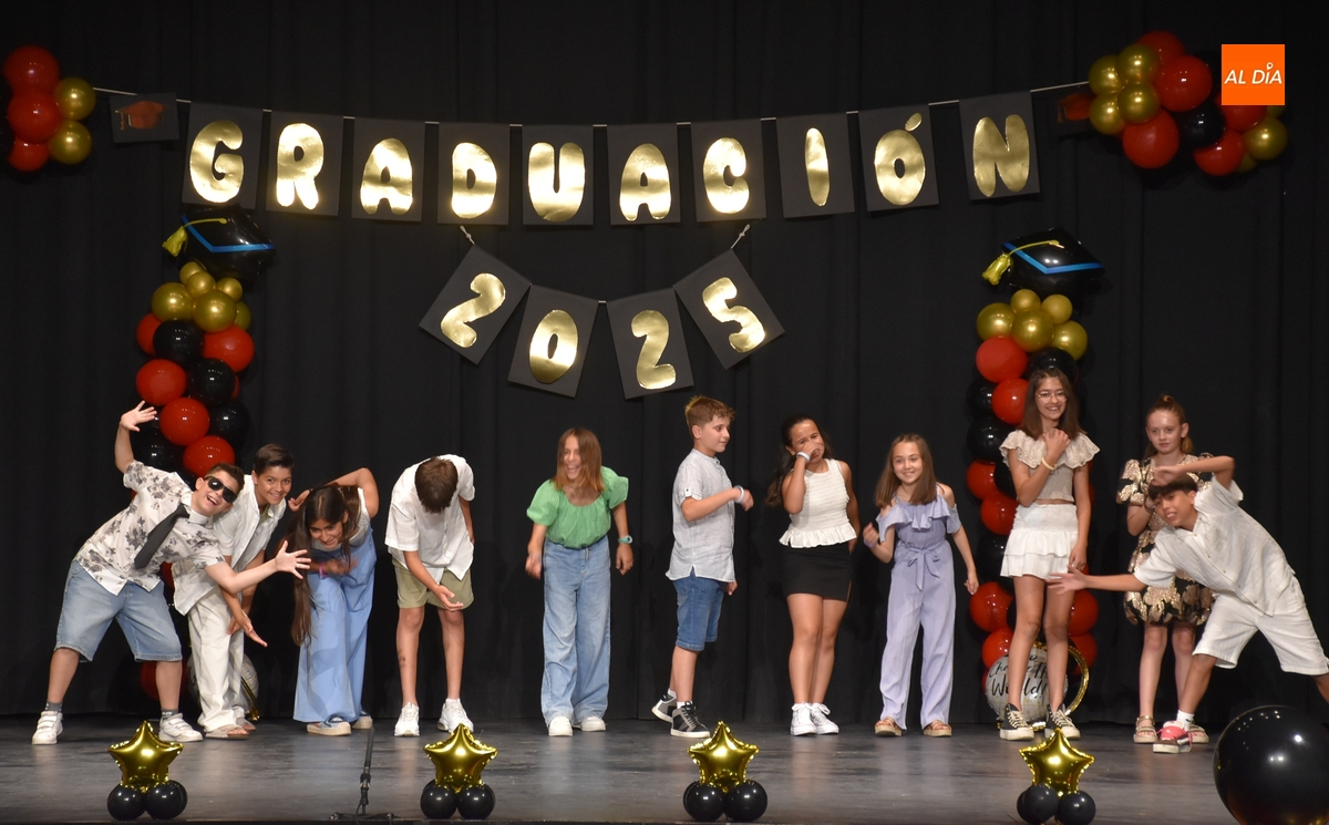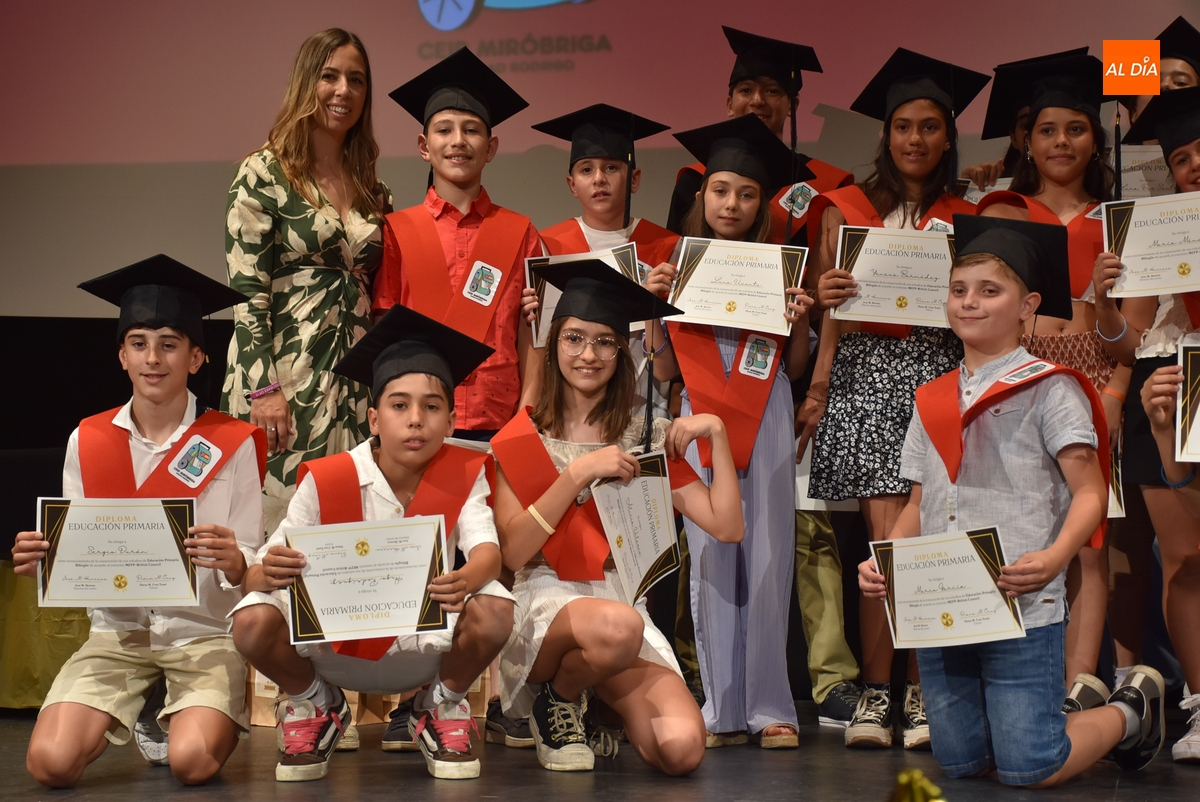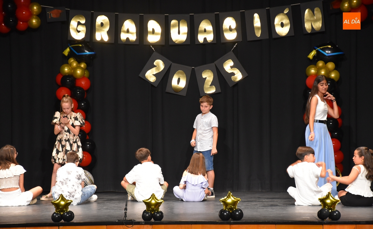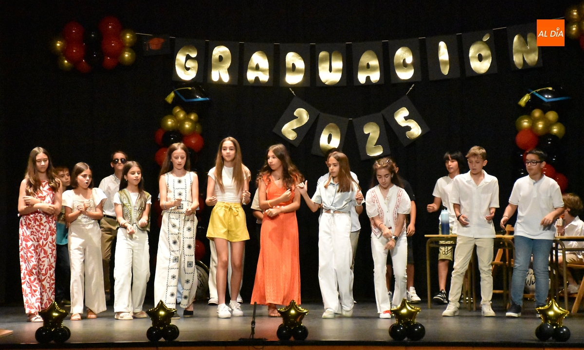 El Colegio Miróbriga de Ciudad Rodrigo graduó en la mañana del viernes a su promoción 2016-2025, con una ceremonia en el Teatro Nuevo Fernando Arrabal que, además de los componentes habituales de este tipo de actos, tuvo una parte artística, ya que cada una de las dos clases ofreció un ‘espectáculo’ (los de 6ºB pusieron en escena una obra de teatro creada por ellos mismos que repasa sus años en el Colegio, recordando por ejemplo cuando les tocó vivir el coronavirus).