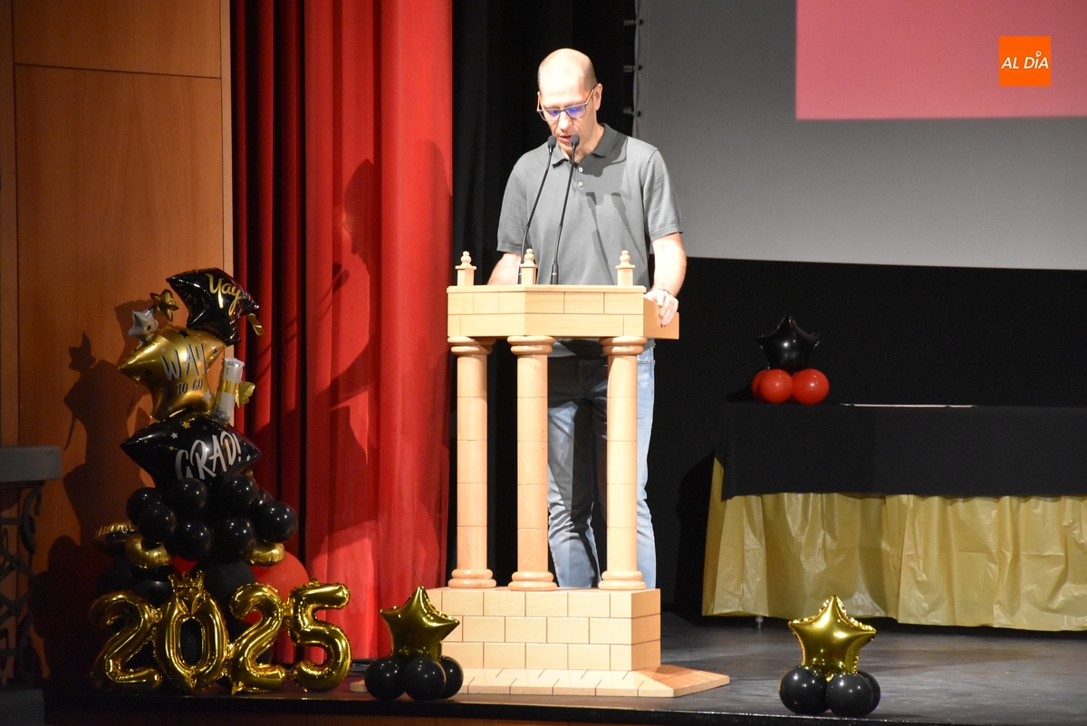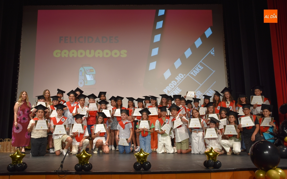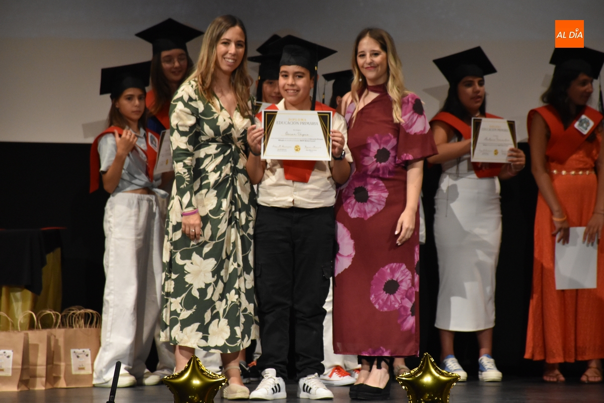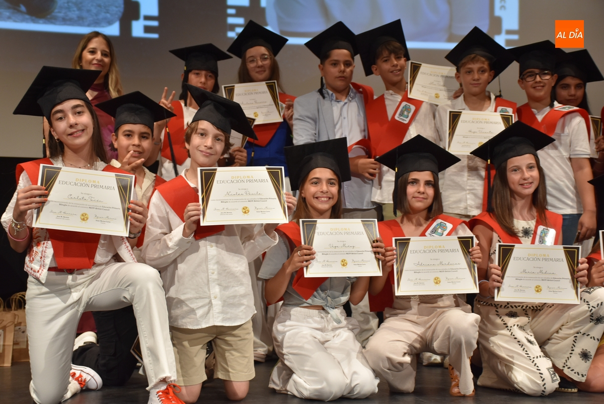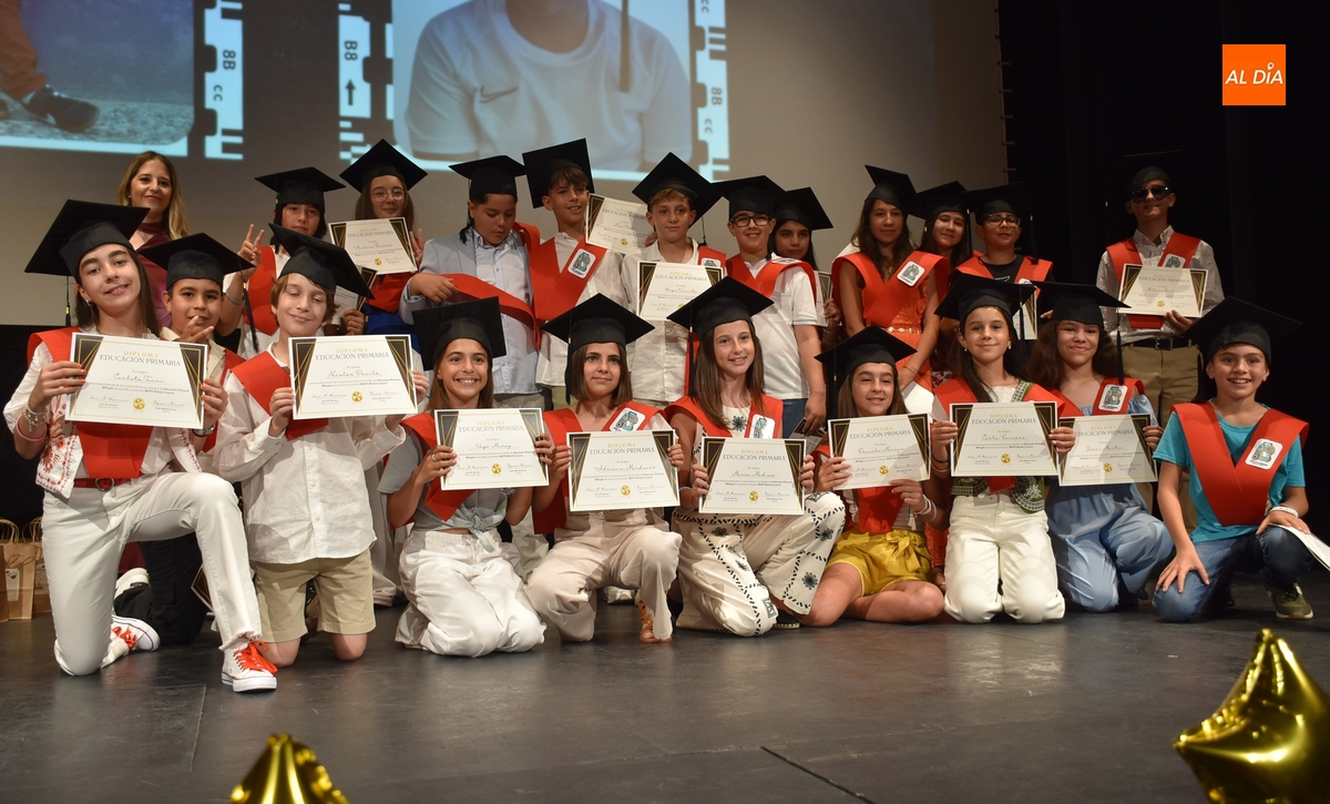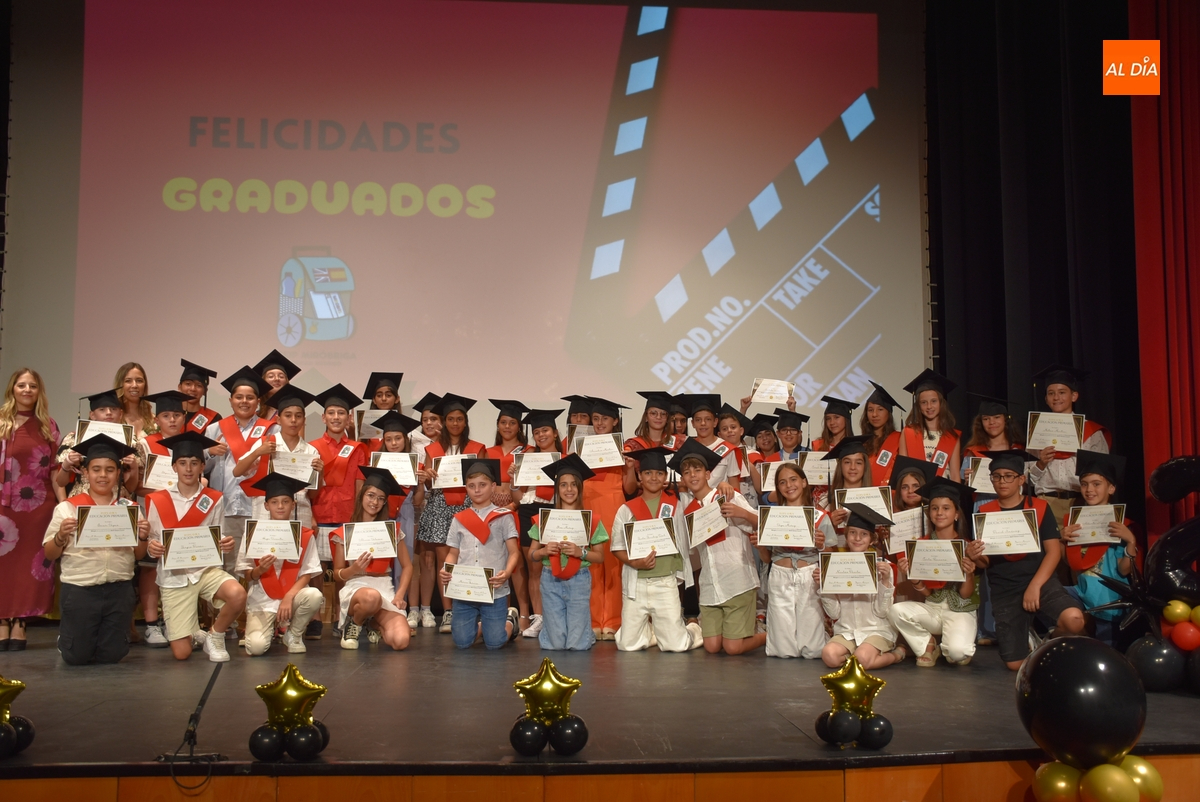 El Colegio Miróbriga de Ciudad Rodrigo graduó en la mañana del viernes a su promoción 2016-2025, con una ceremonia en el Teatro Nuevo Fernando Arrabal que, además de los componentes habituales de este tipo de actos, tuvo una parte artística, ya que cada una de las dos clases ofreció un ‘espectáculo’ (los de 6ºB pusieron en escena una obra de teatro creada por ellos mismos que repasa sus años en el Colegio, recordando por ejemplo cuando les tocó vivir el coronavirus).