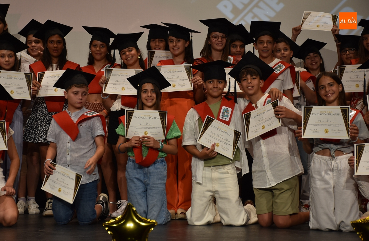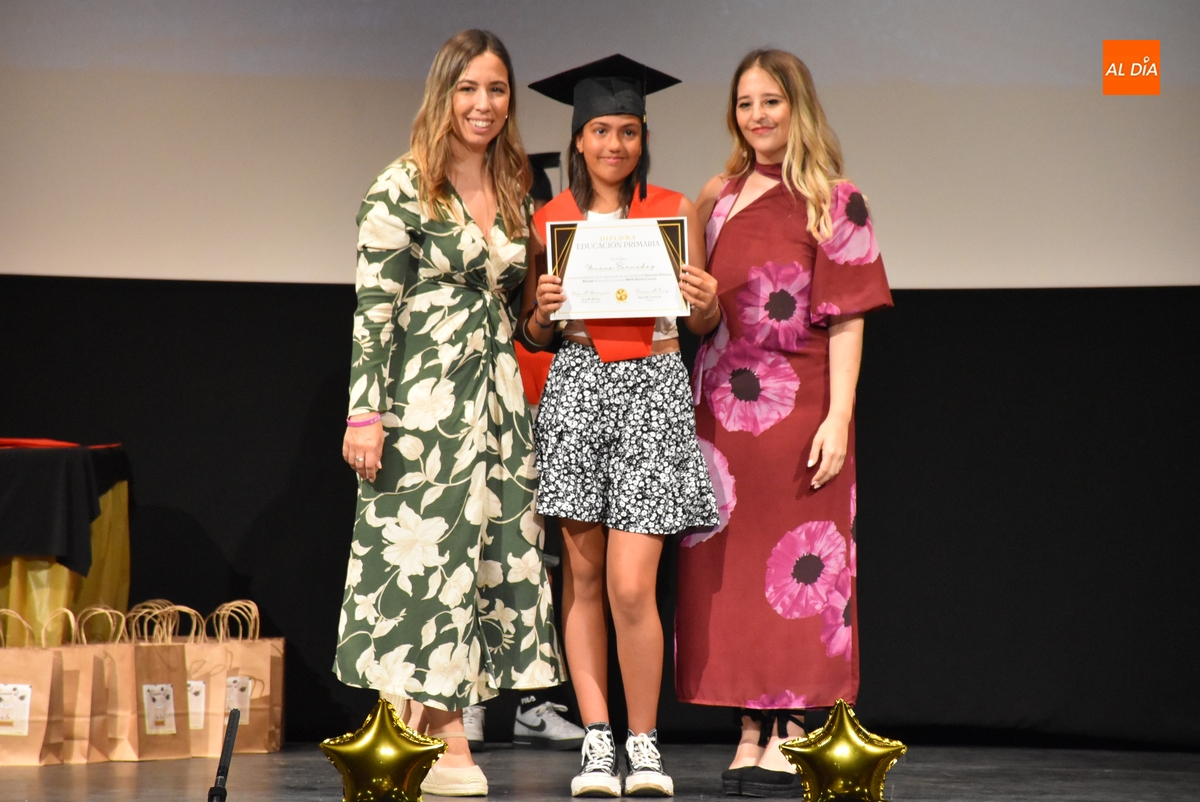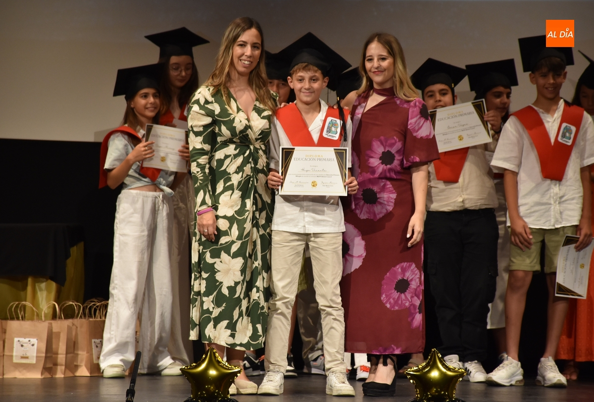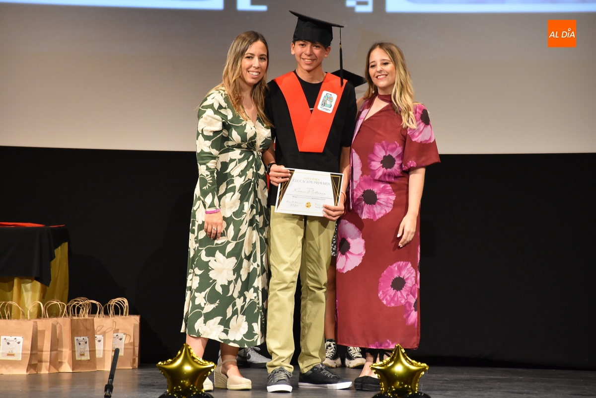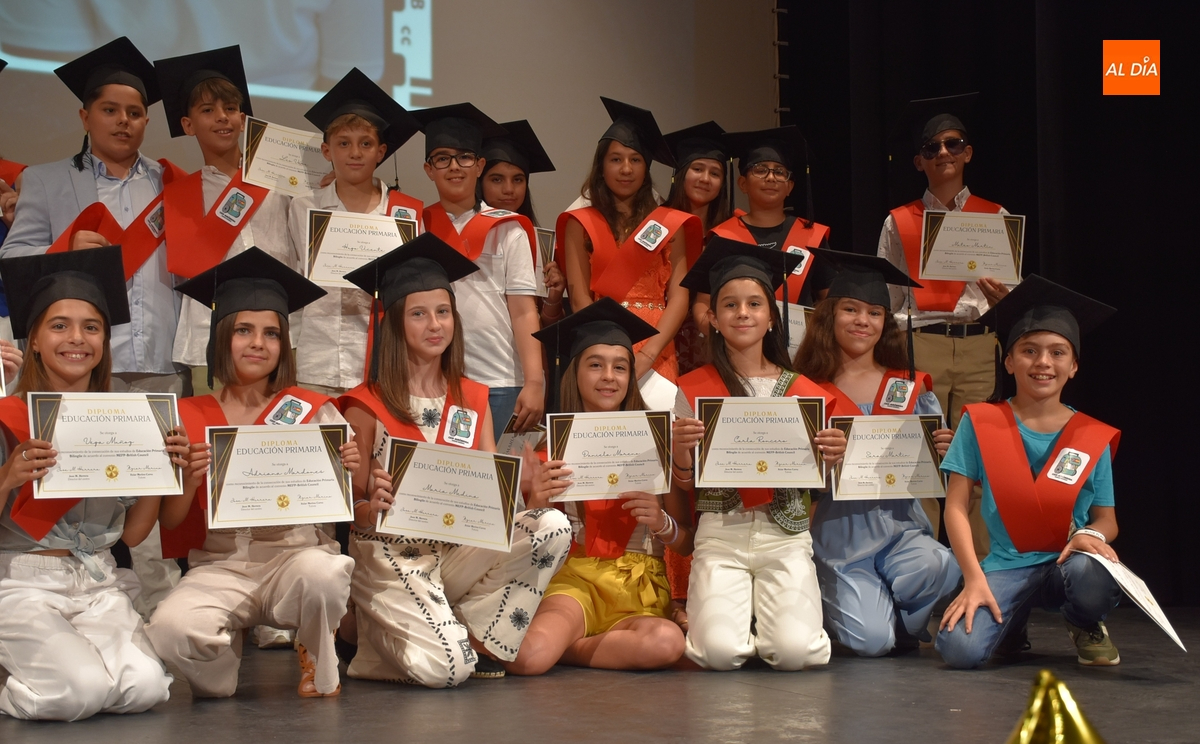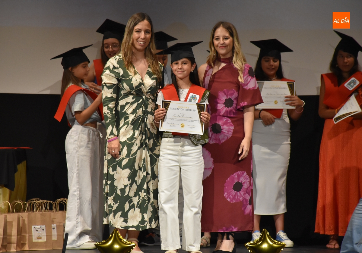 El Colegio Miróbriga de Ciudad Rodrigo graduó en la mañana del viernes a su promoción 2016-2025, con una ceremonia en el Teatro Nuevo Fernando Arrabal que, además de los componentes habituales de este tipo de actos, tuvo una parte artística, ya que cada una de las dos clases ofreció un ‘espectáculo’ (los de 6ºB pusieron en escena una obra de teatro creada por ellos mismos que repasa sus años en el Colegio, recordando por ejemplo cuando les tocó vivir el coronavirus).