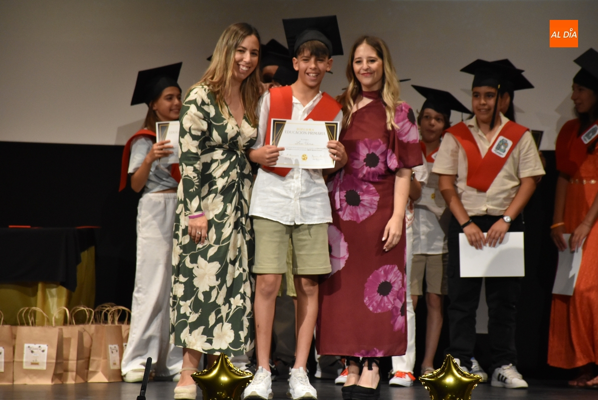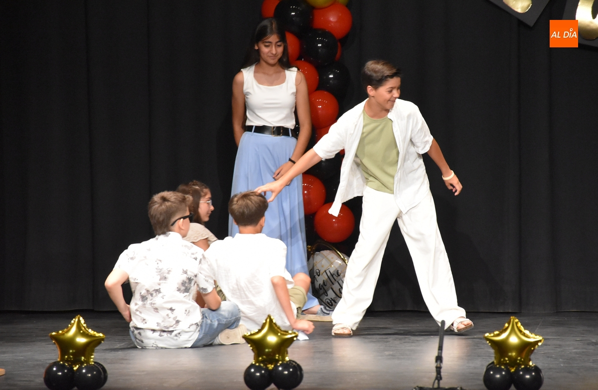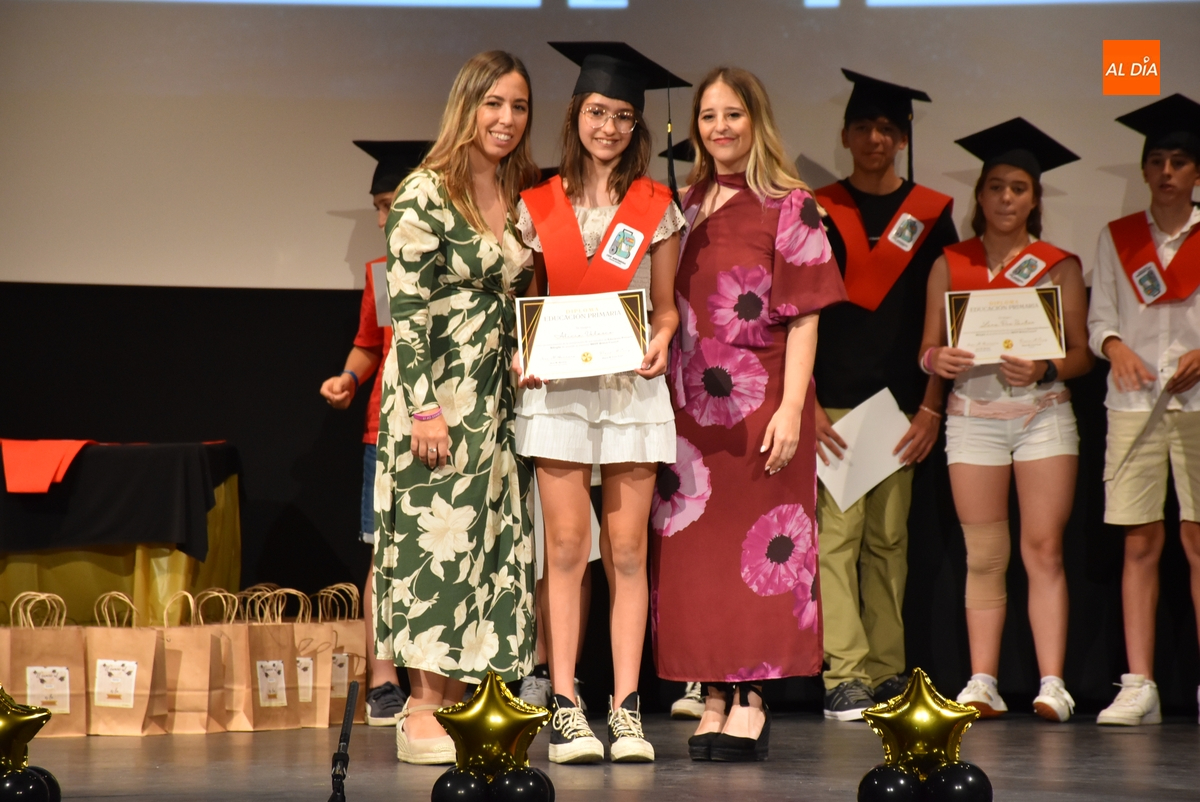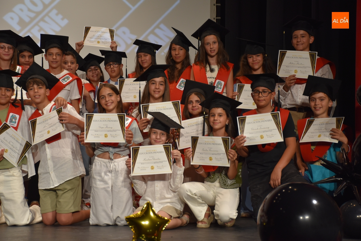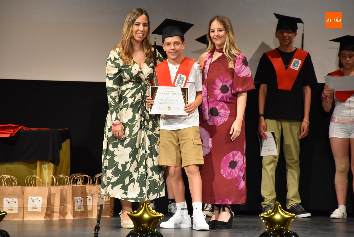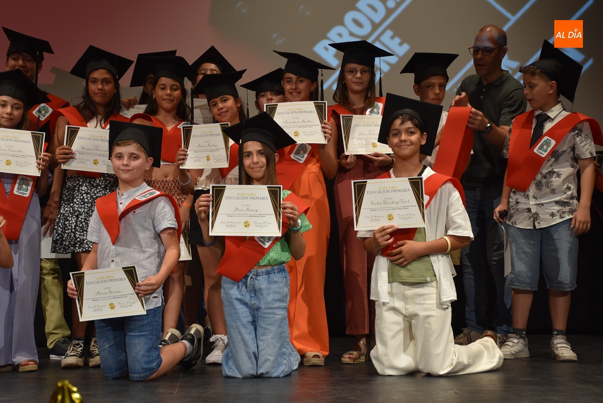 El Colegio Miróbriga de Ciudad Rodrigo graduó en la mañana del viernes a su promoción 2016-2025, con una ceremonia en el Teatro Nuevo Fernando Arrabal que, además de los componentes habituales de este tipo de actos, tuvo una parte artística, ya que cada una de las dos clases ofreció un ‘espectáculo’ (los de 6ºB pusieron en escena una obra de teatro creada por ellos mismos que repasa sus años en el Colegio, recordando por ejemplo cuando les tocó vivir el coronavirus).