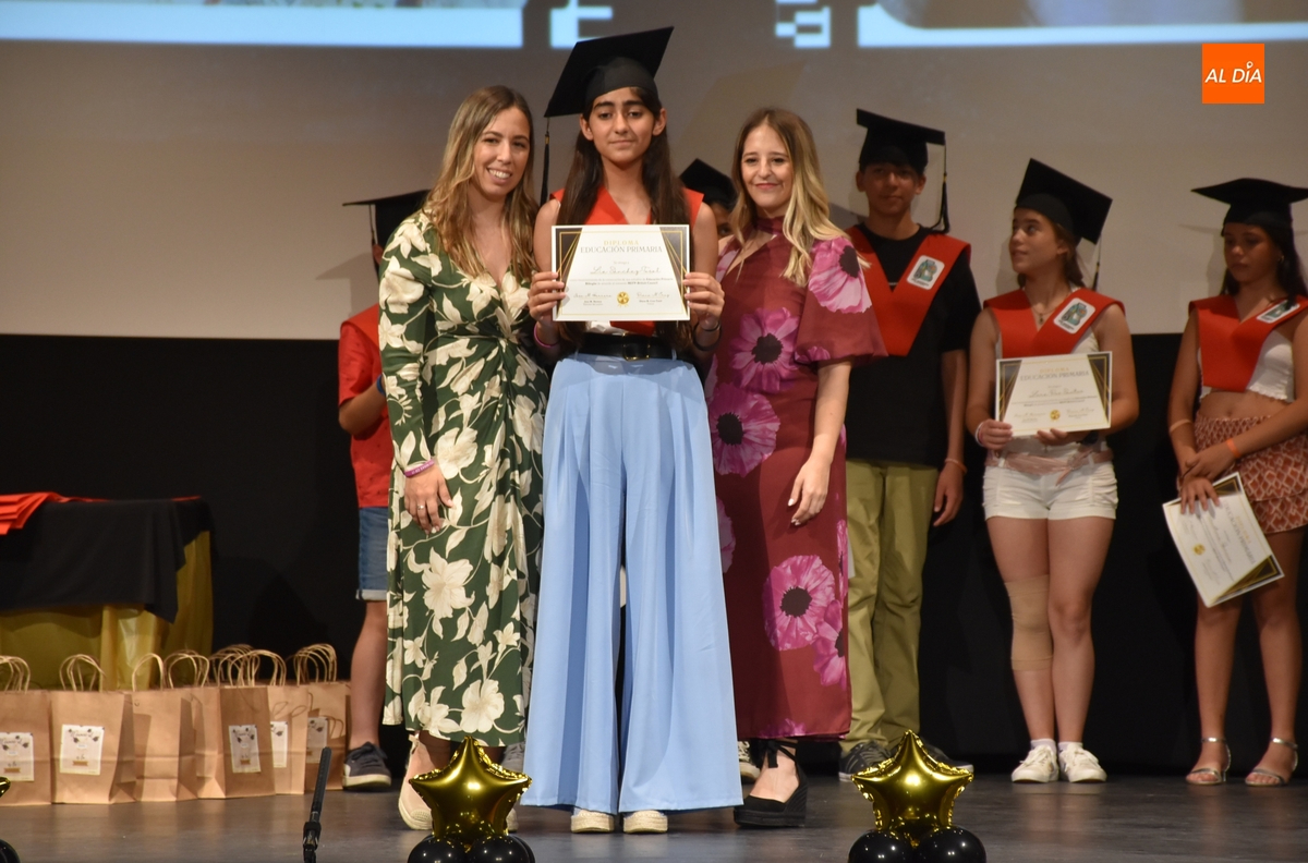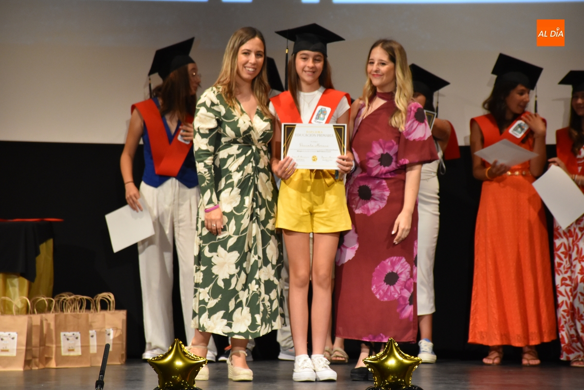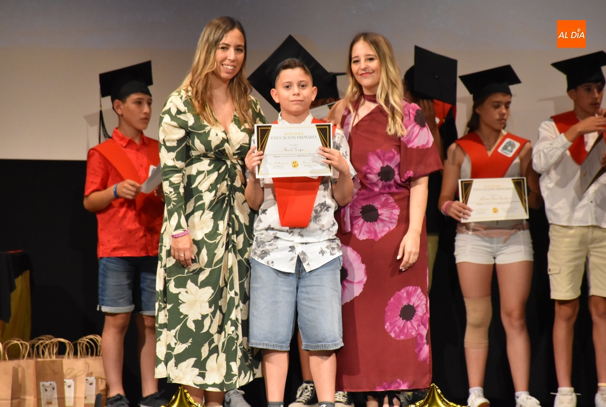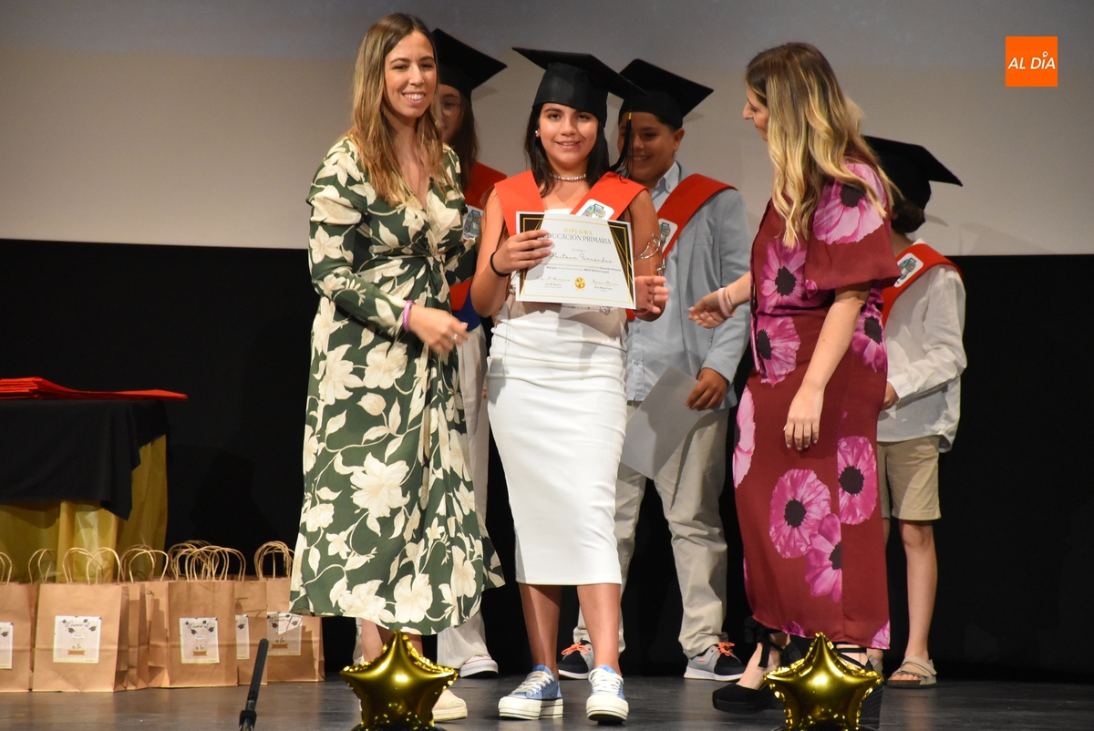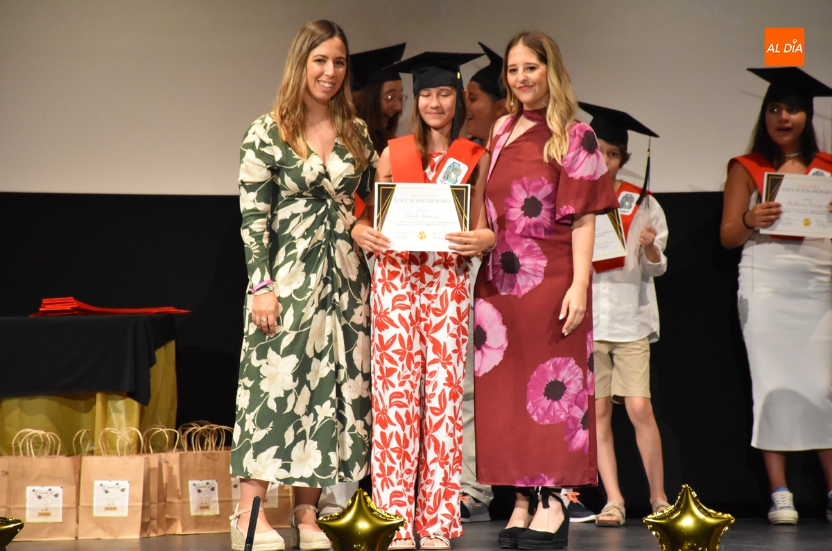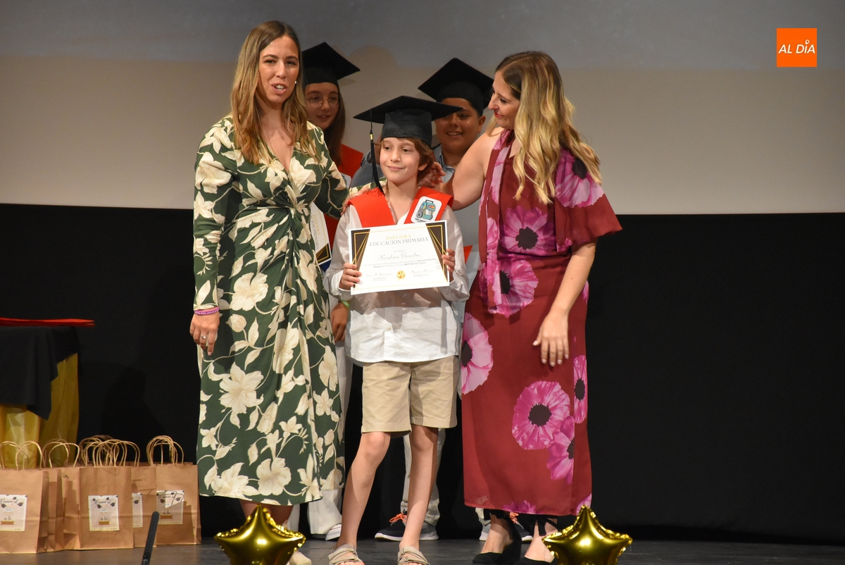 El Colegio Miróbriga de Ciudad Rodrigo graduó en la mañana del viernes a su promoción 2016-2025, con una ceremonia en el Teatro Nuevo Fernando Arrabal que, además de los componentes habituales de este tipo de actos, tuvo una parte artística, ya que cada una de las dos clases ofreció un ‘espectáculo’ (los de 6ºB pusieron en escena una obra de teatro creada por ellos mismos que repasa sus años en el Colegio, recordando por ejemplo cuando les tocó vivir el coronavirus).