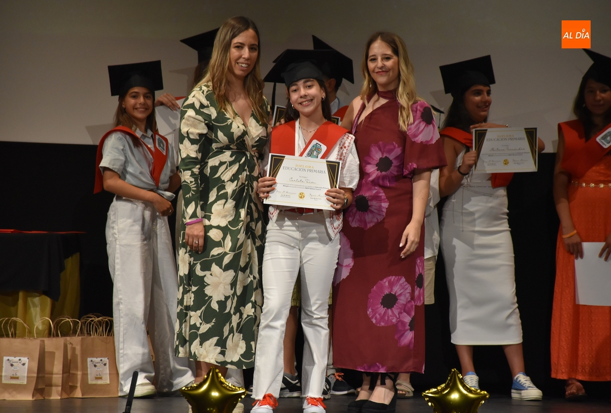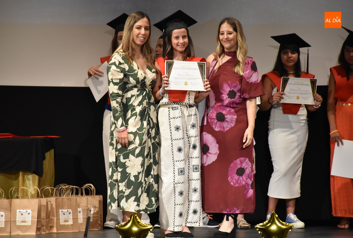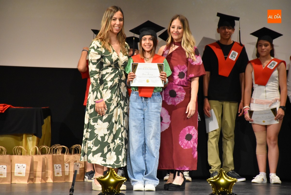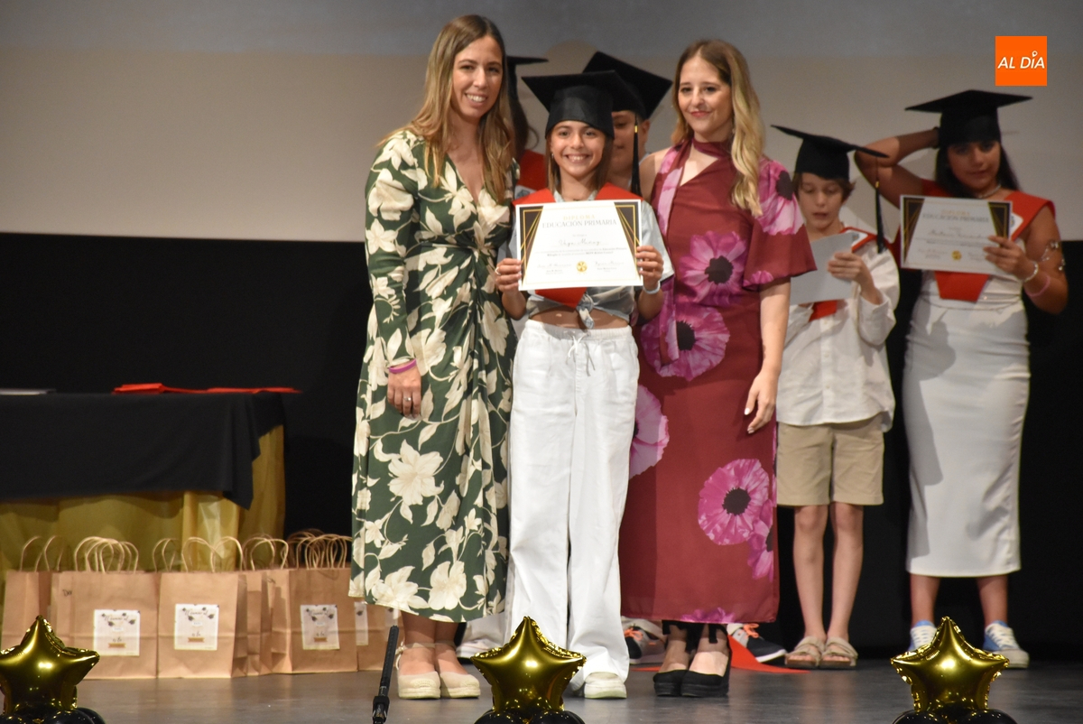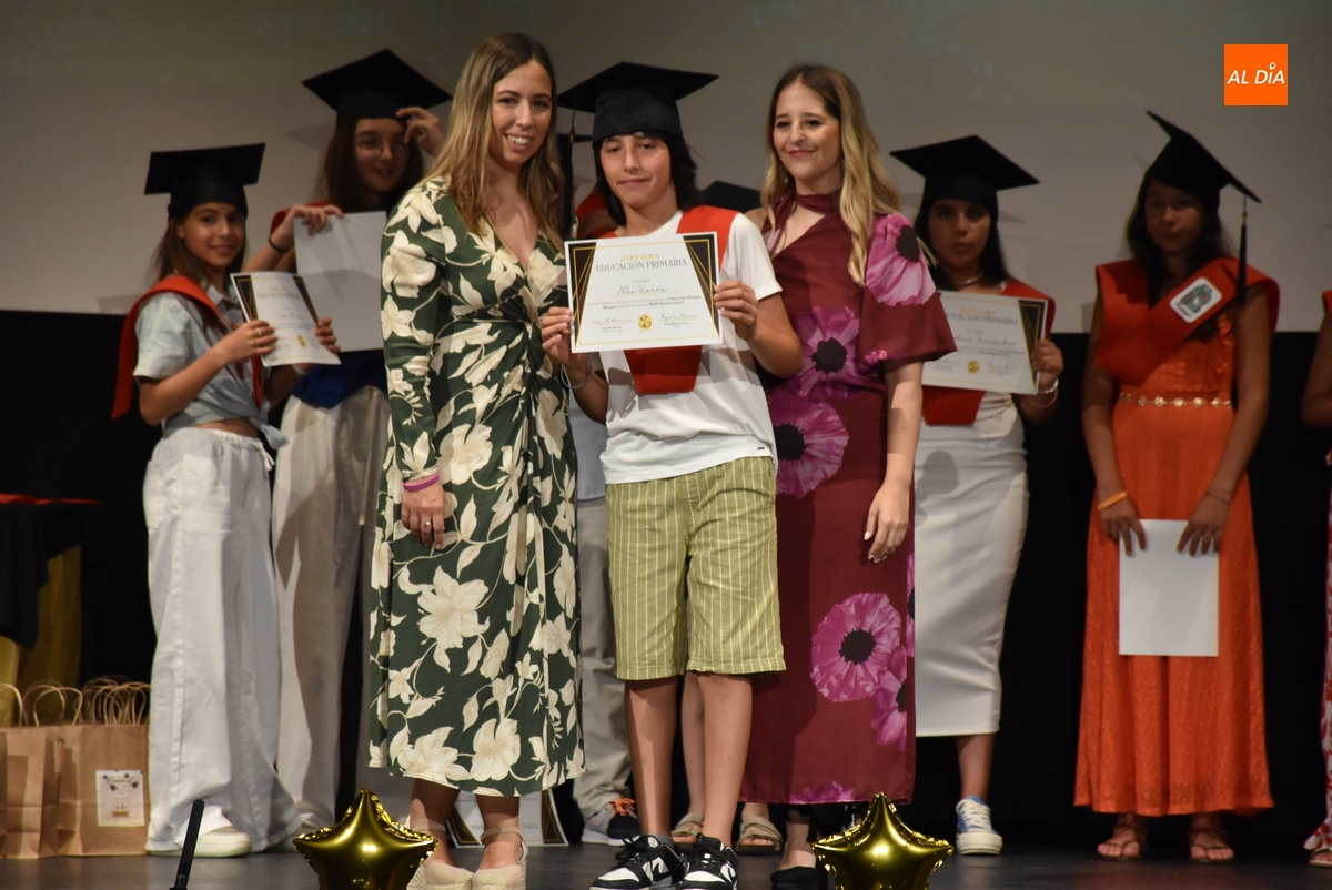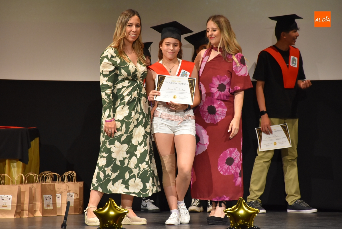 El Colegio Miróbriga de Ciudad Rodrigo graduó en la mañana del viernes a su promoción 2016-2025, con una ceremonia en el Teatro Nuevo Fernando Arrabal que, además de los componentes habituales de este tipo de actos, tuvo una parte artística, ya que cada una de las dos clases ofreció un ‘espectáculo’ (los de 6ºB pusieron en escena una obra de teatro creada por ellos mismos que repasa sus años en el Colegio, recordando por ejemplo cuando les tocó vivir el coronavirus).