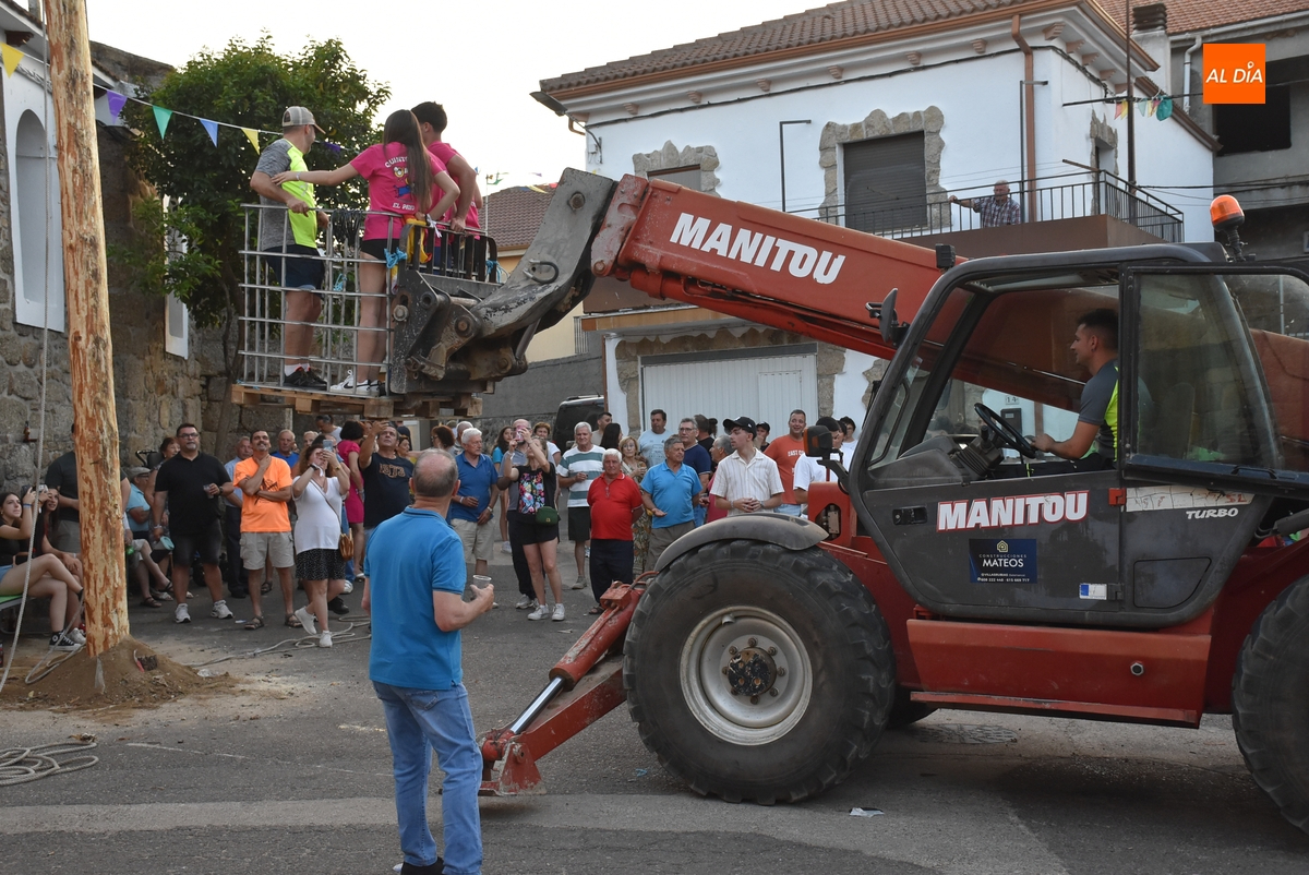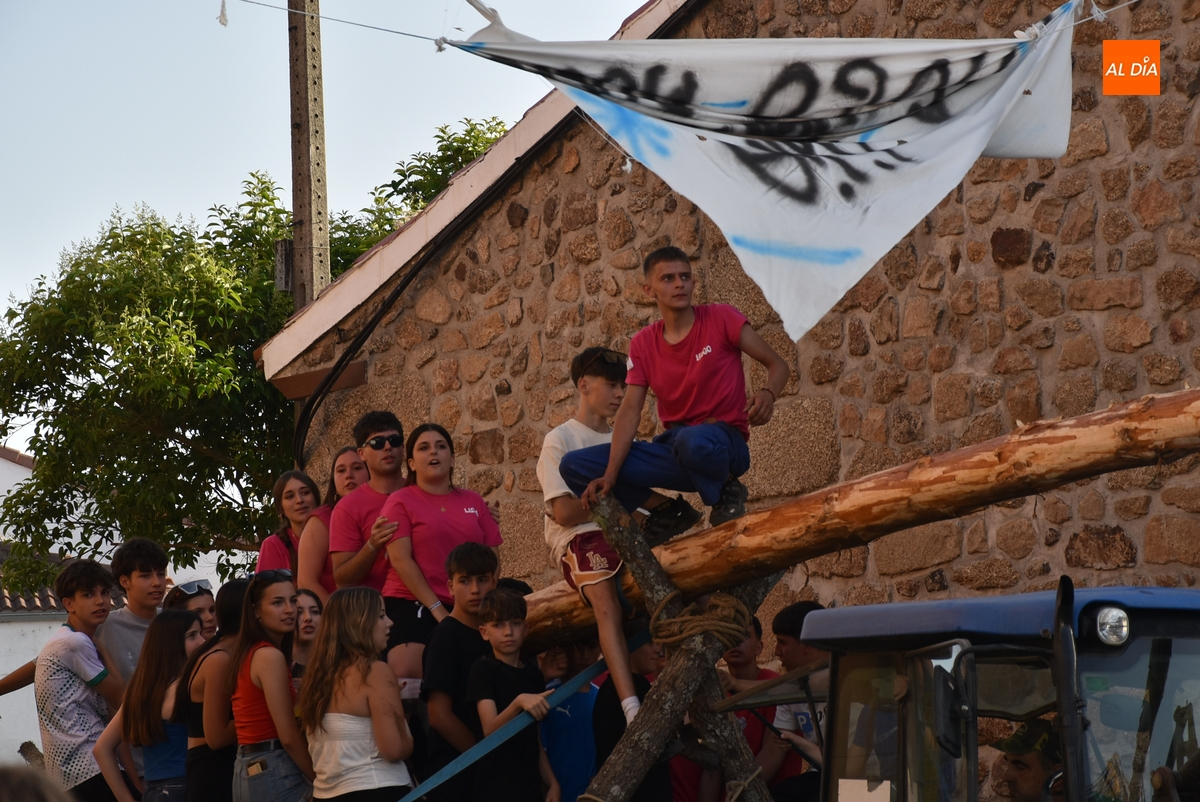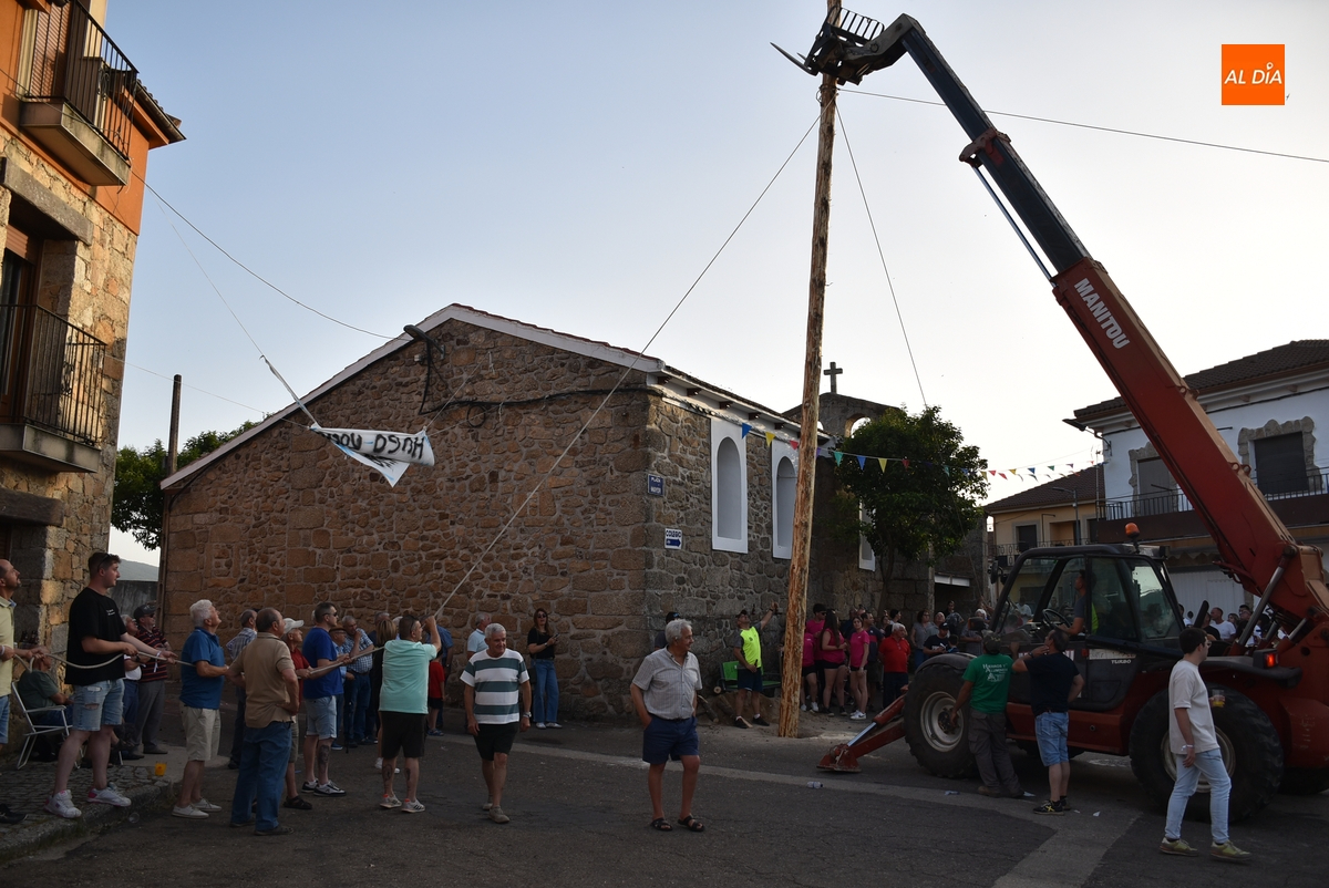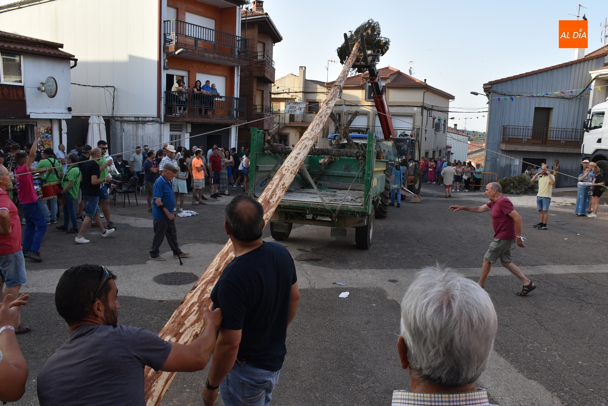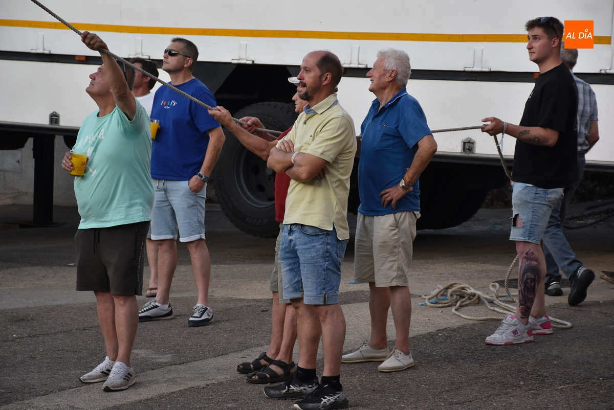 El Payo estalla en fiestas izando de forma minuciosa una espectacular viga de 23 metros