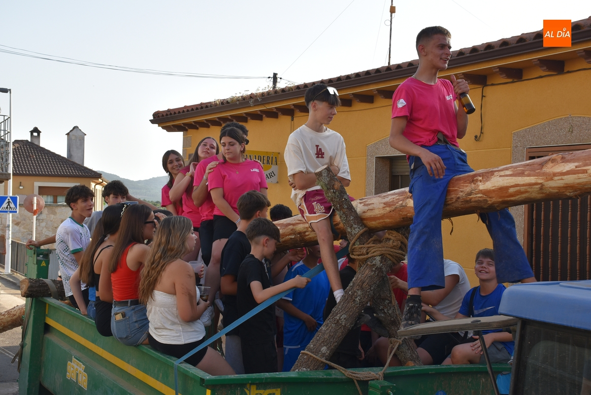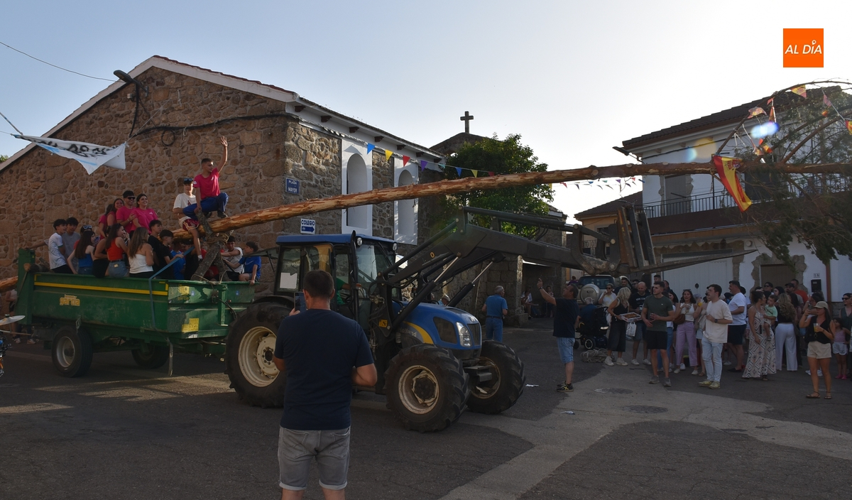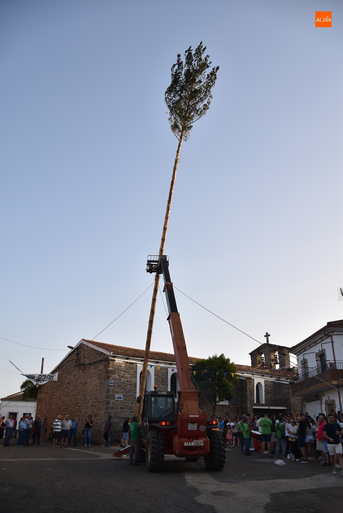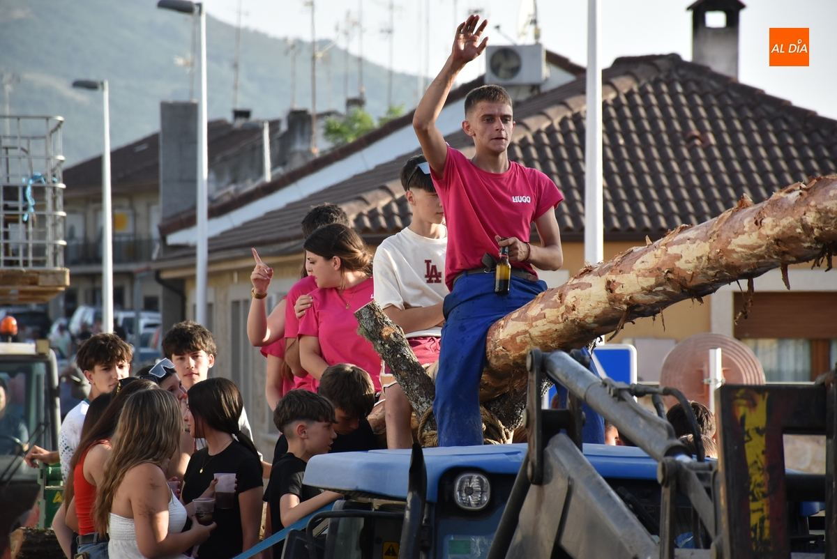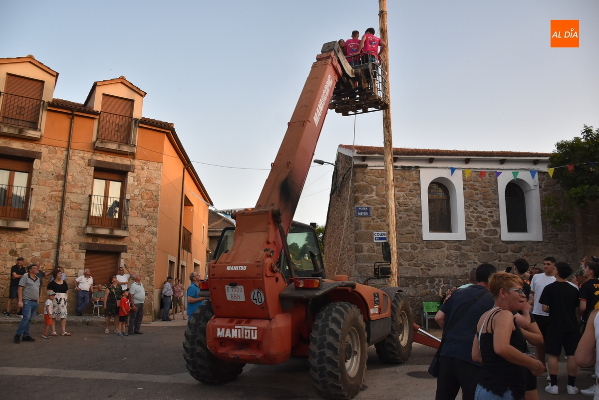 El Payo estalla en fiestas izando de forma minuciosa una espectacular viga de 23 metros