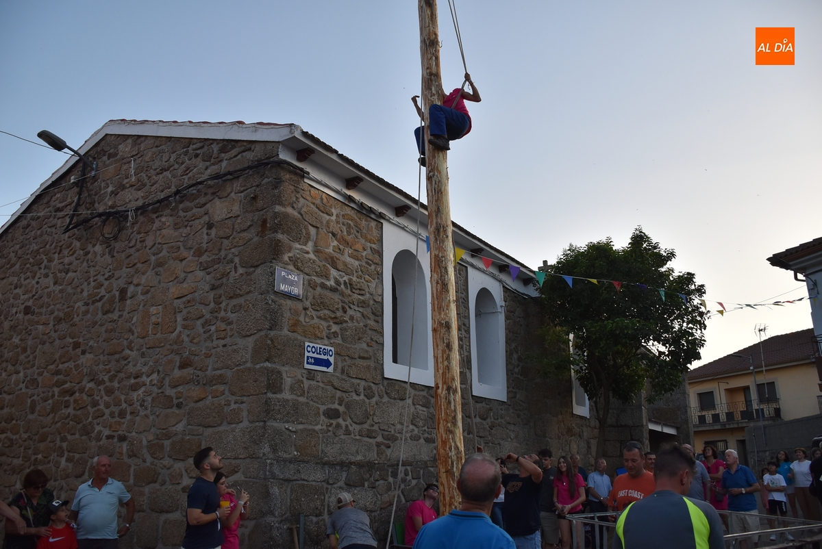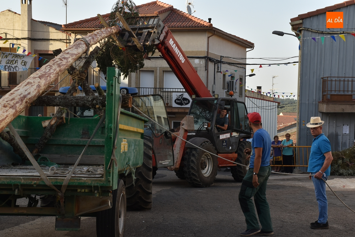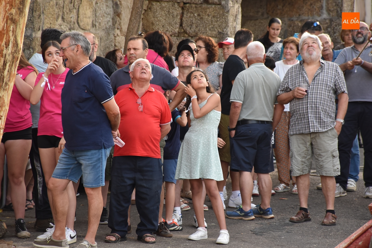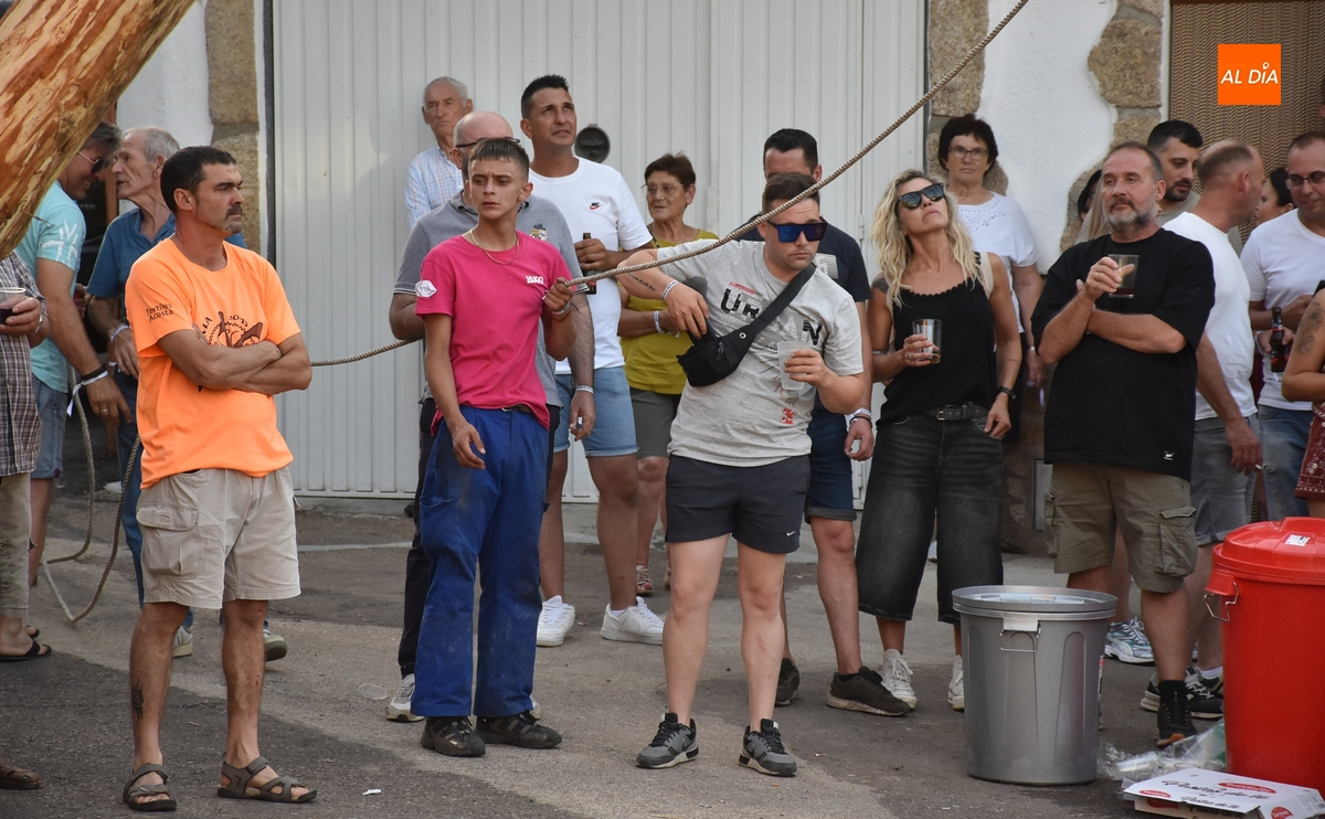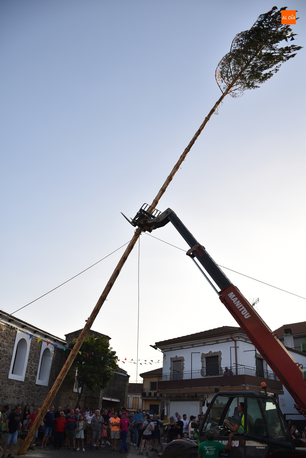 El Payo estalla en fiestas izando de forma minuciosa una espectacular viga de 23 metros