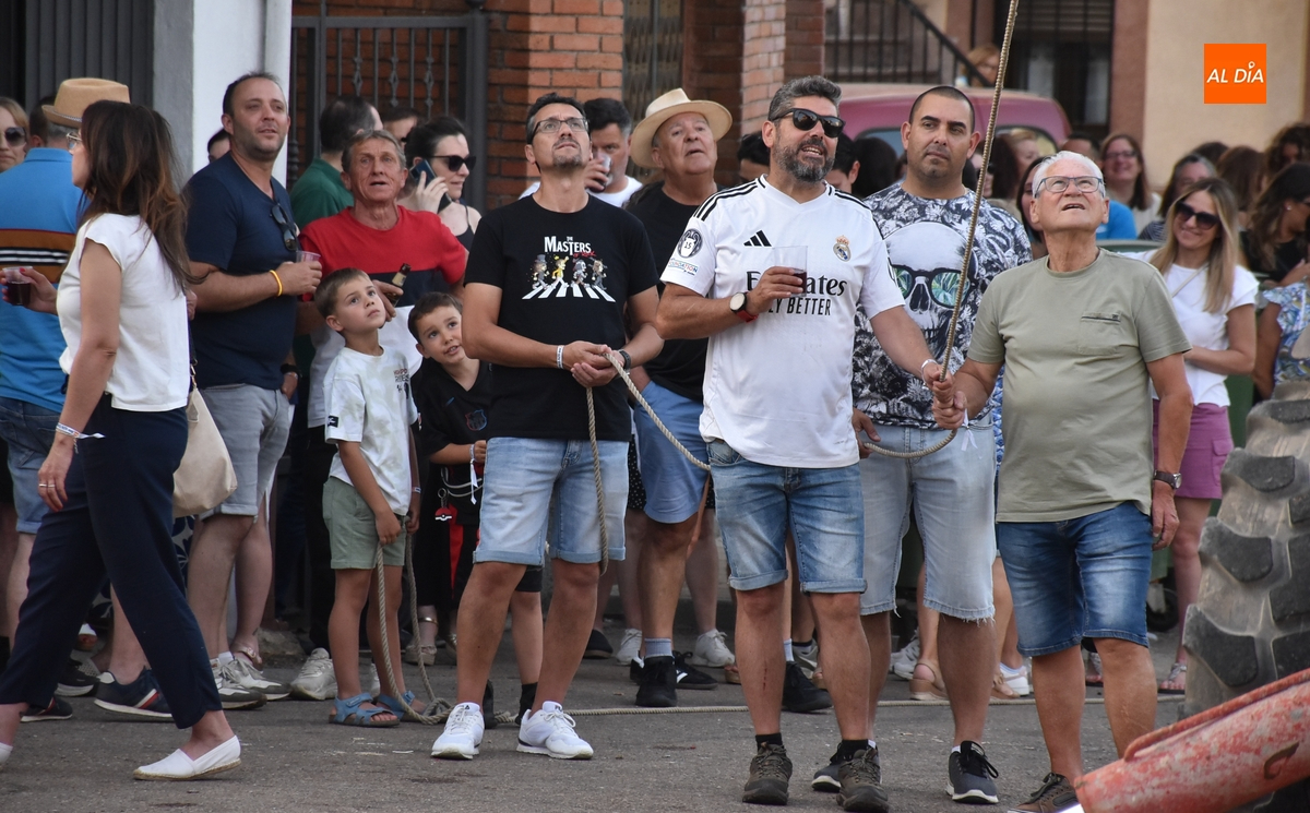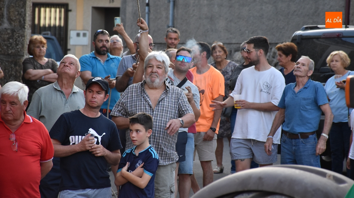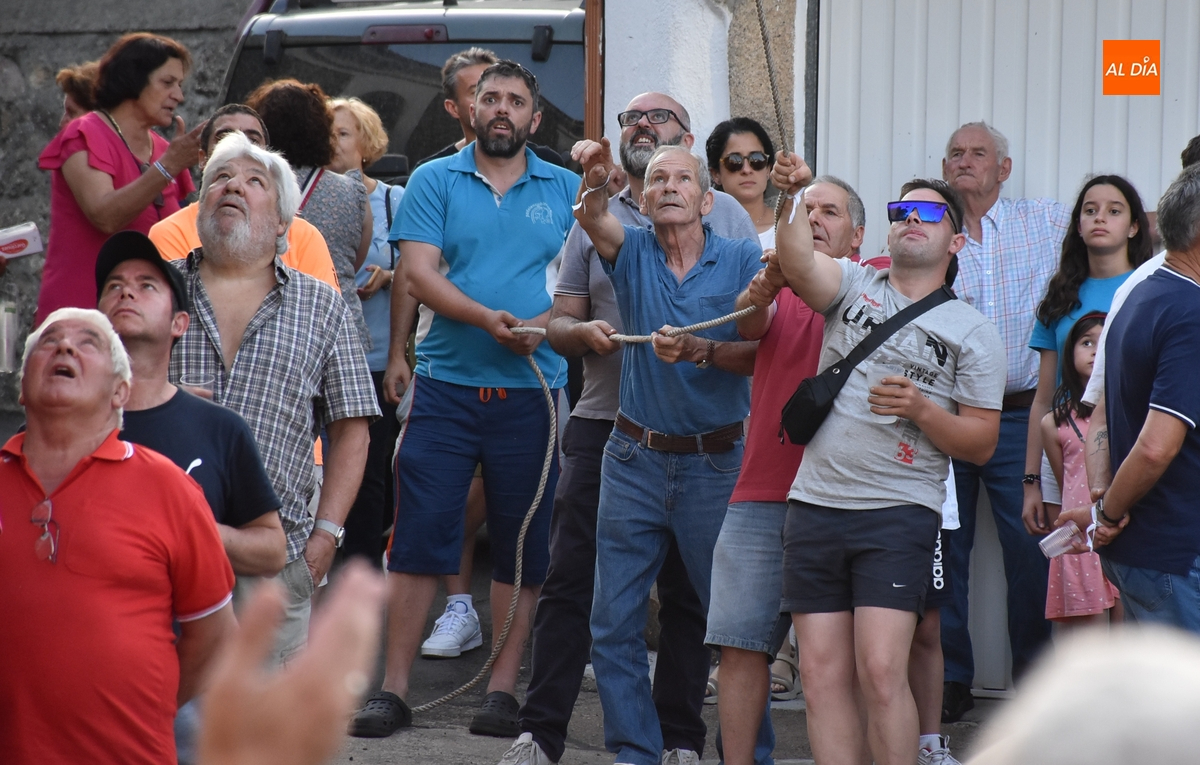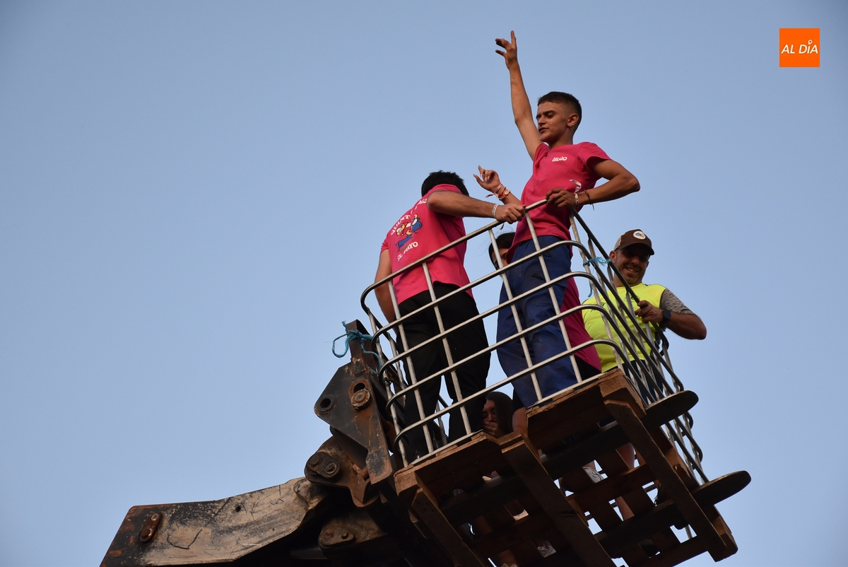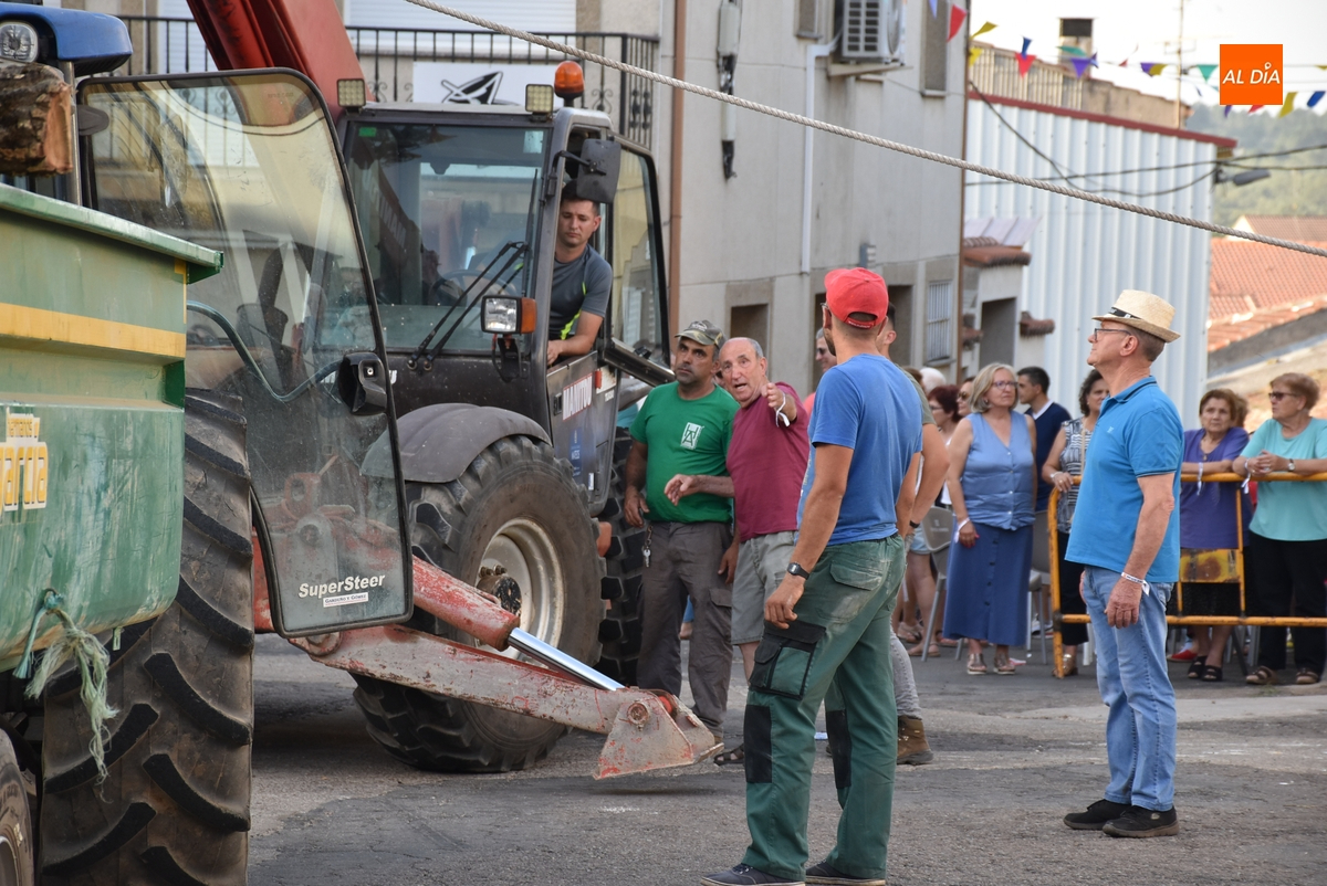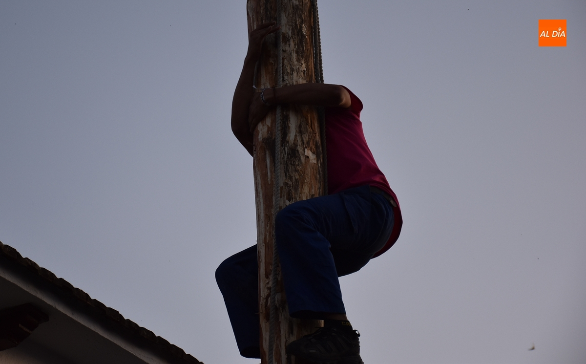 El Payo estalla en fiestas izando de forma minuciosa una espectacular viga de 23 metros
