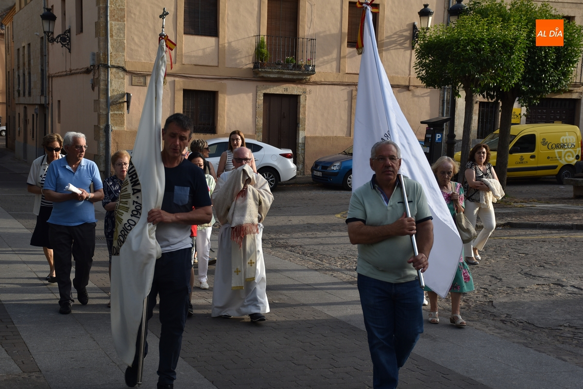 El día grande será este domingo, con la solemne misa en la Catedral y posterior procesión a partir de las 11.00 horas, pero la celebración de la festividad del Corpus Christi en el centro histórico de Ciudad Rodrigo arrancó en el tramo final de la tarde del sábado, con la histórica Vigilia de Adoración al Santísimo Sacramento promovida por el movimiento de Adoración Nocturna.