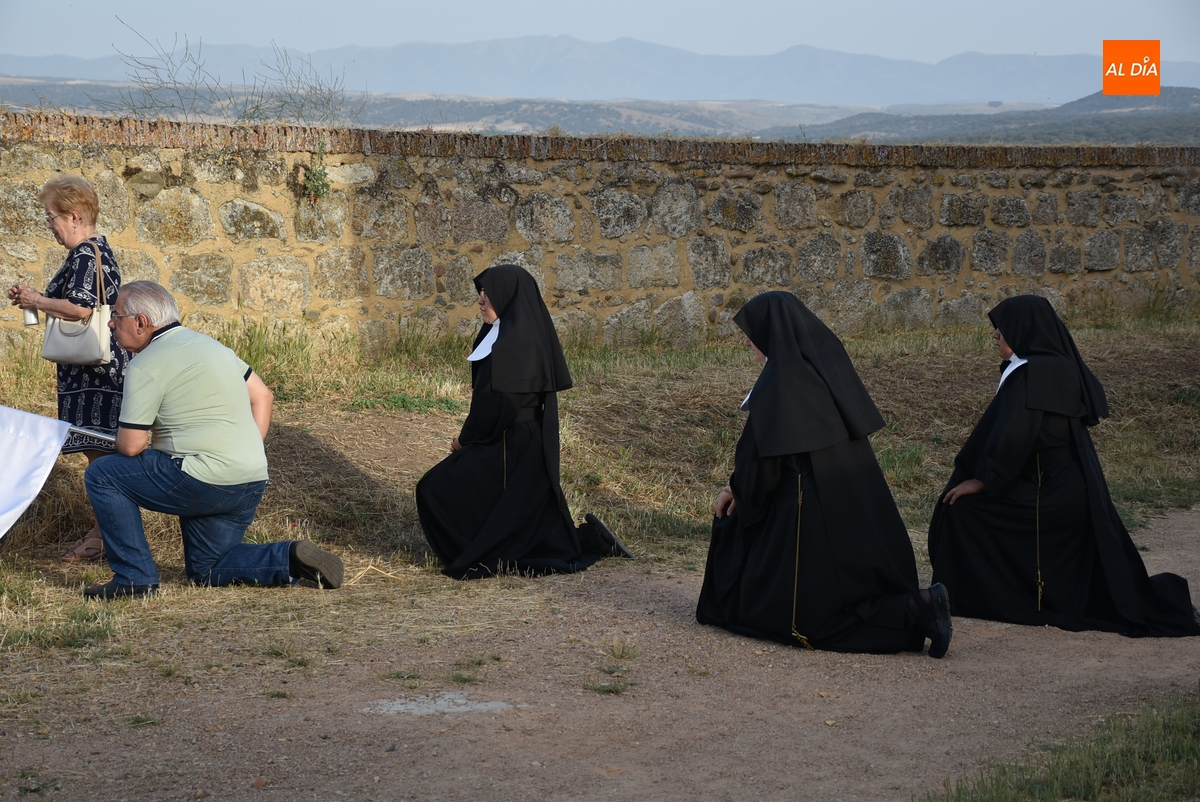 Una vez en el adarve, el Santísimo fue situado en una cañonera, para impartir la bendición con los adoradores arrodillados (incluidos los que portaban las banderas de la Adoración Nocturna), una situación que causó sorpresa a varias personas que estaban transitando por la muralla en esos momentos (entre ellos un par de parejas de turistas).
