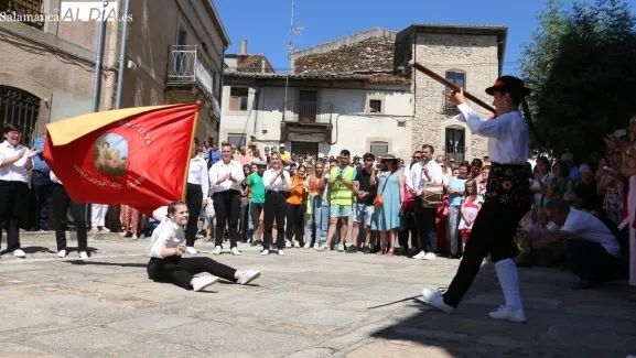 A continuación de la misa, Hinojosa revivirá uno de sus momentos más emblemáticos: el Baile de la Bandera. Esta danza no es un mero acto folclórico; es la representación viva de una leyenda que hunde sus raíces en el siglo XV. Los hechos reales, ocurridos en febrero de 1441, enfrentaron a los señores de estas tierras contra el obispo de Ciudad Rodrigo. Sin embargo, la tradición oral ha mitificado aquel acontecimiento hasta convertirlo en el mayor símbolo de los hinojoseros: la victoria del pueblo (la bandera) frente al poder del feudal (alabarda).