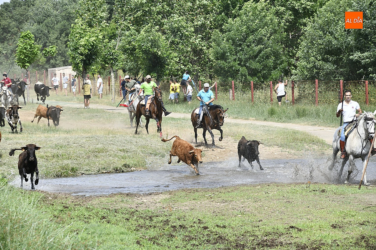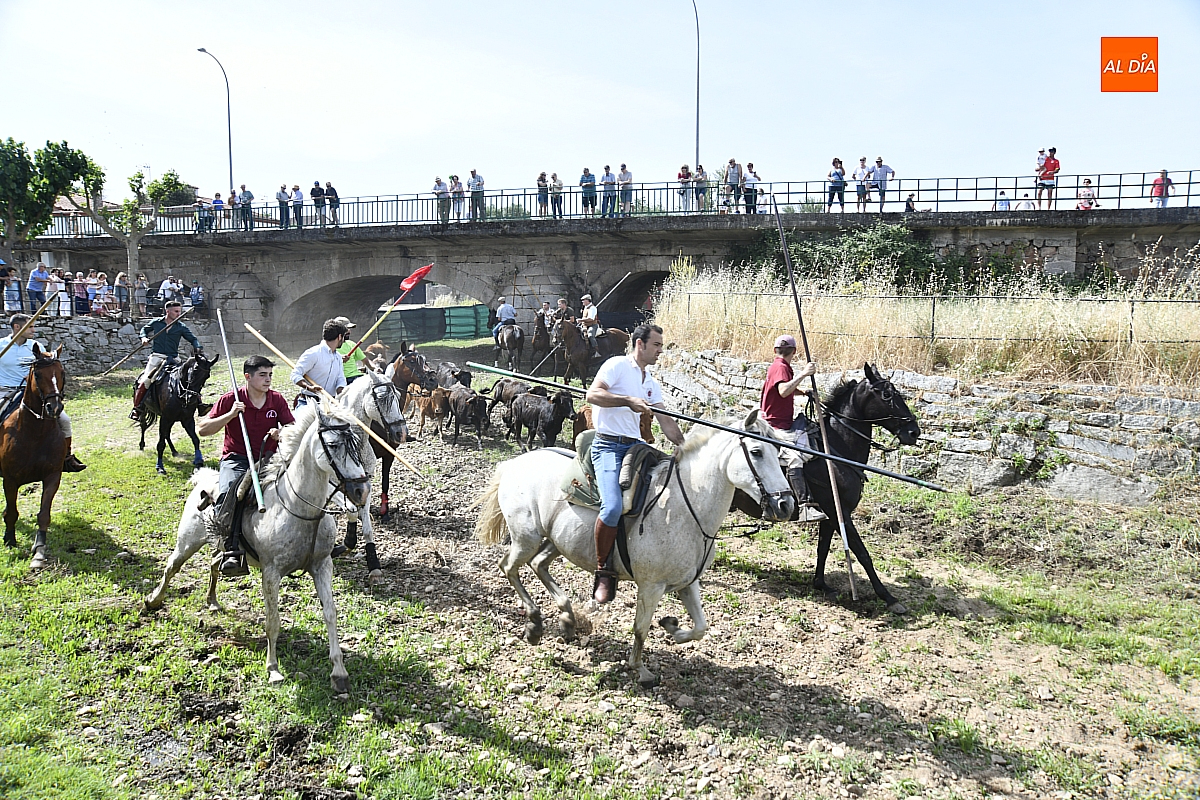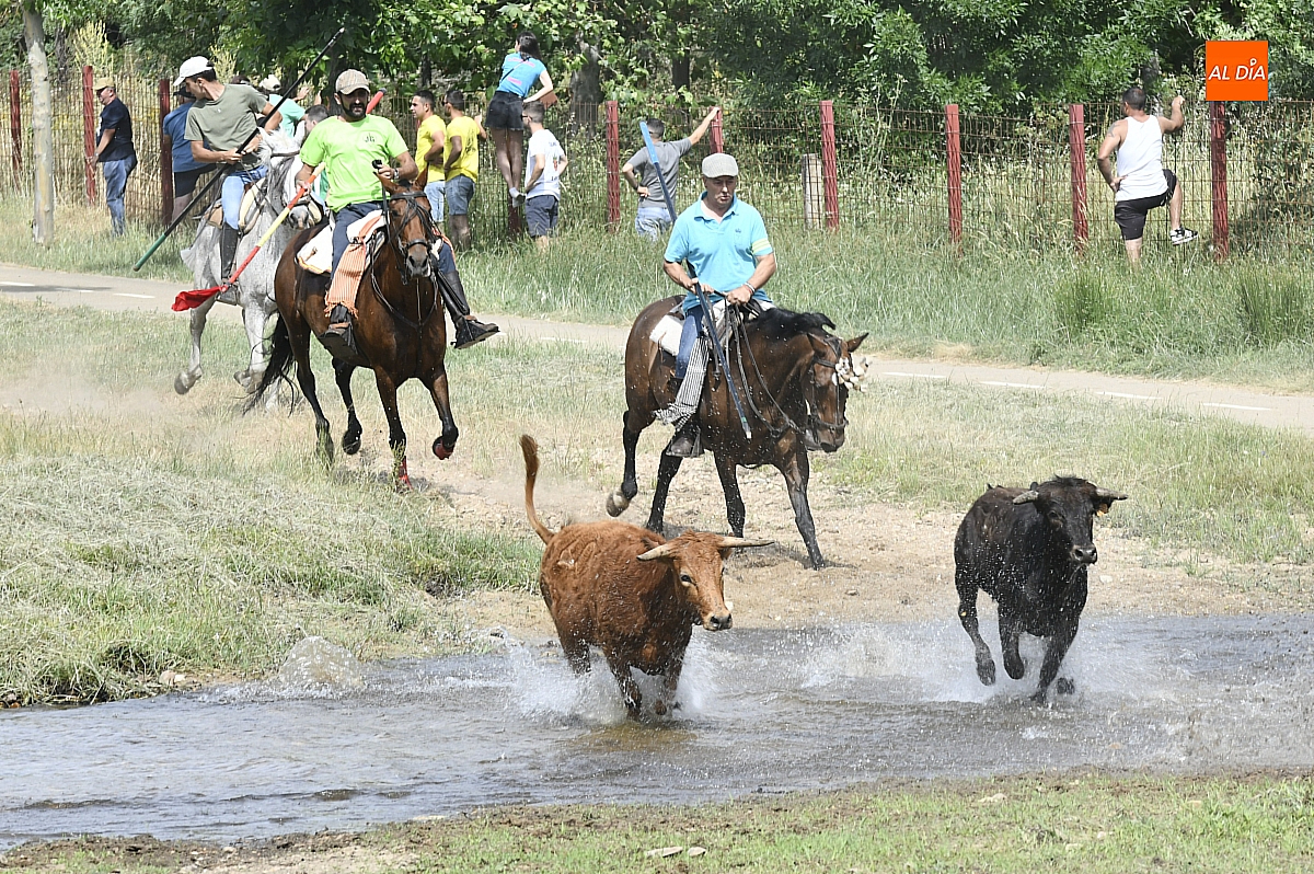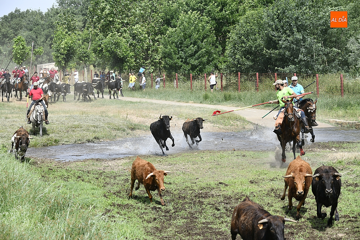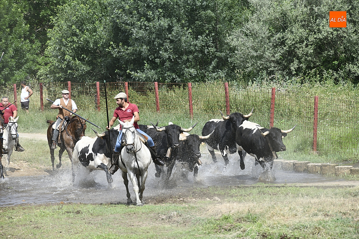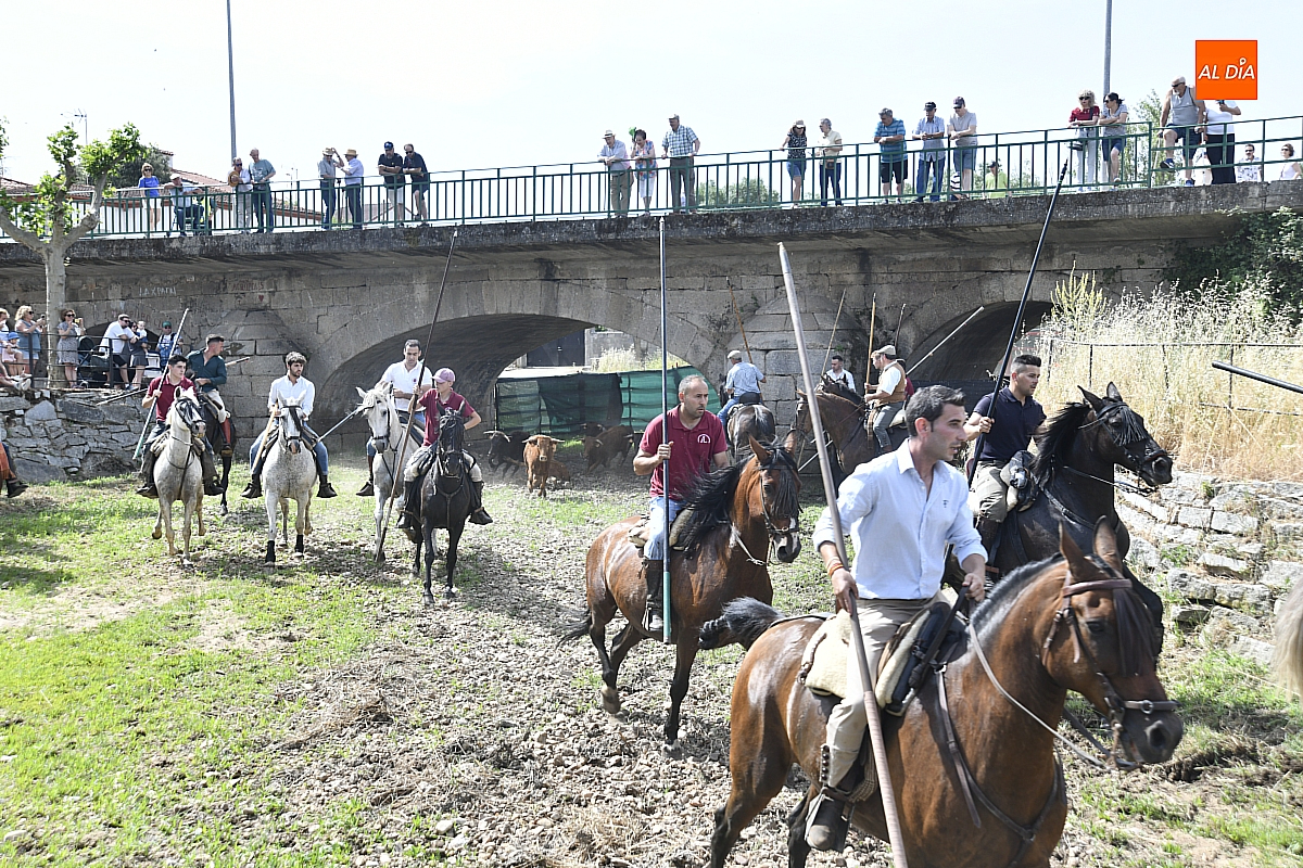 La singularidad del encierro —ambientado en un entorno natural y con un componente escénico notable— residió en el uso del propio cauce fluvial como recorrido. Aunque el río presentaba escaso caudal, tan solo visible en sus tramos más hondos, ello no restó espectacularidad al evento. Muy al contrario, la estampa de las reses cruzando entre salpicaduras de agua y el galope de los caballos proporcionó un atractivo visual que fue muy celebrado por el público.