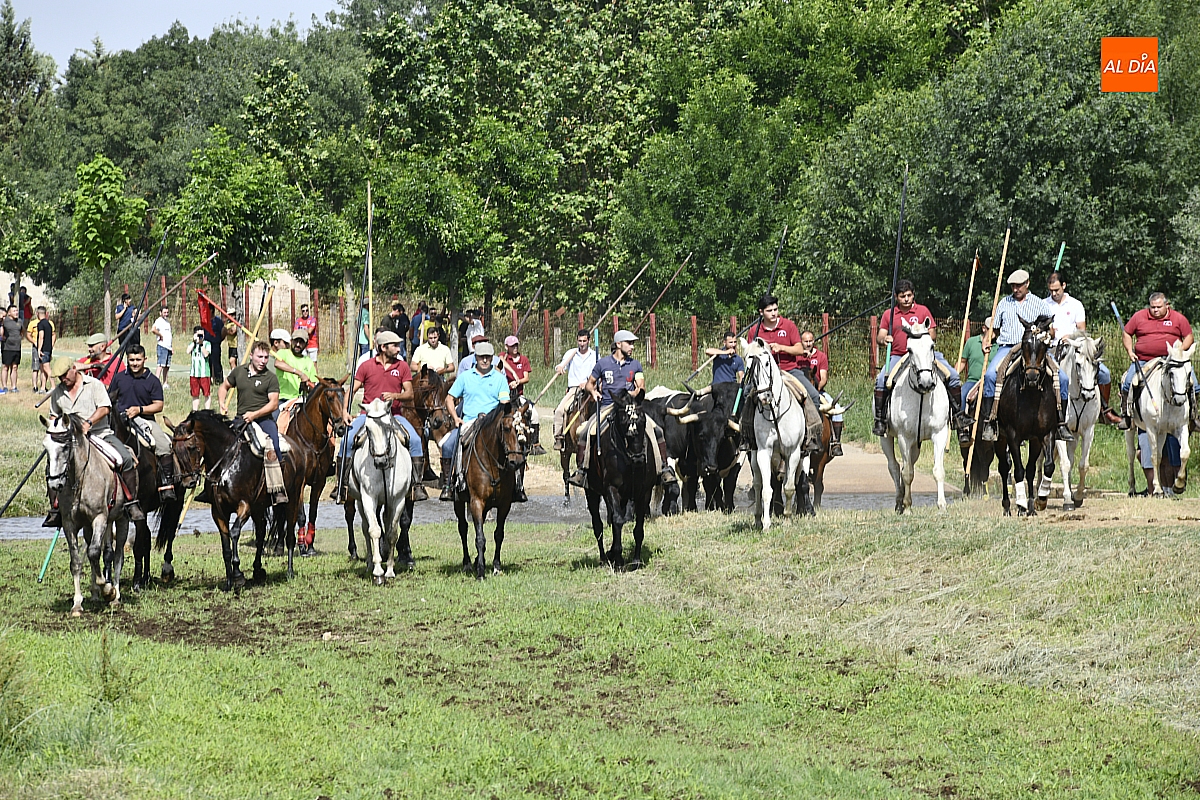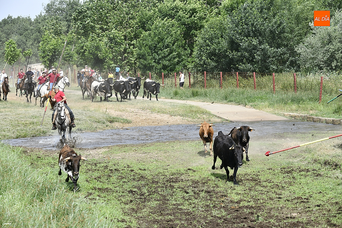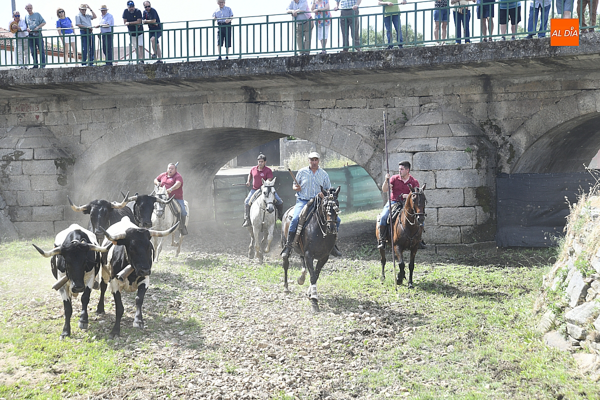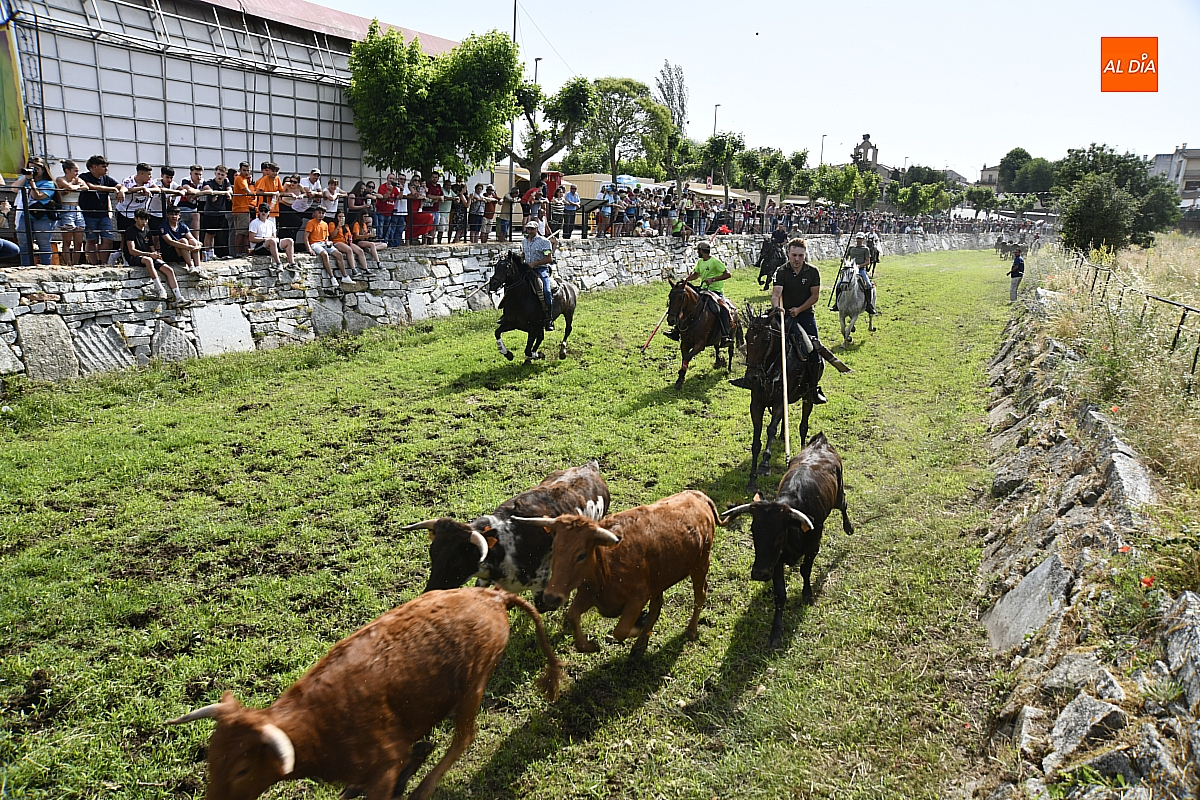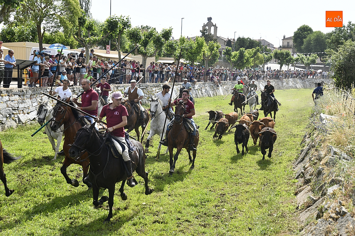 La singularidad del encierro —ambientado en un entorno natural y con un componente escénico notable— residió en el uso del propio cauce fluvial como recorrido. Aunque el río presentaba escaso caudal, tan solo visible en sus tramos más hondos, ello no restó espectacularidad al evento. Muy al contrario, la estampa de las reses cruzando entre salpicaduras de agua y el galope de los caballos proporcionó un atractivo visual que fue muy celebrado por el público.