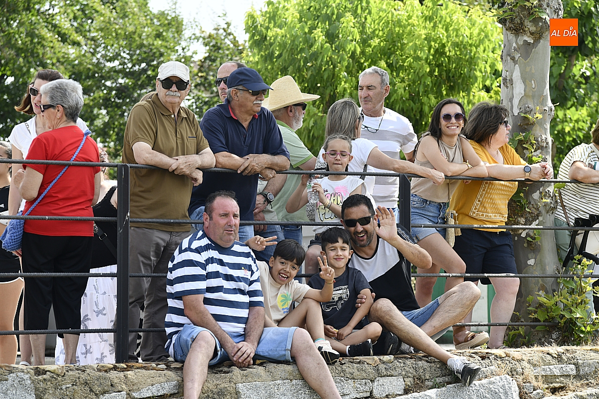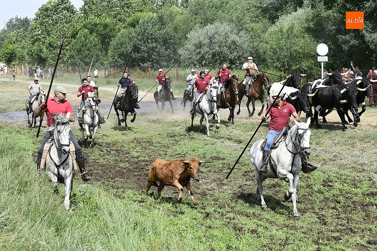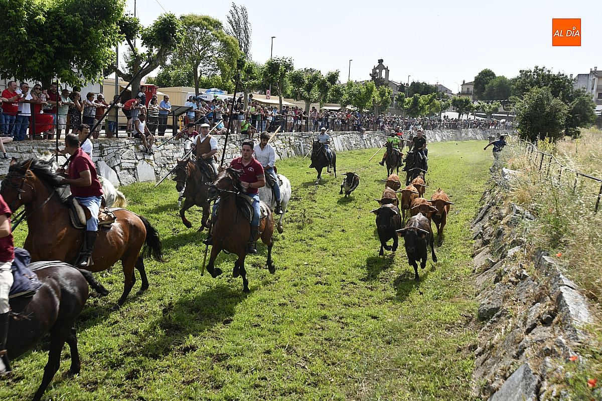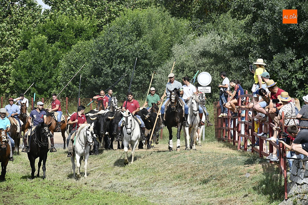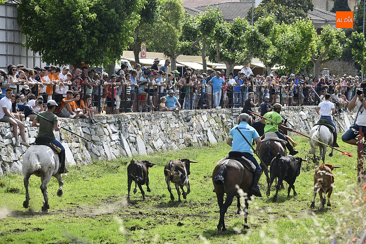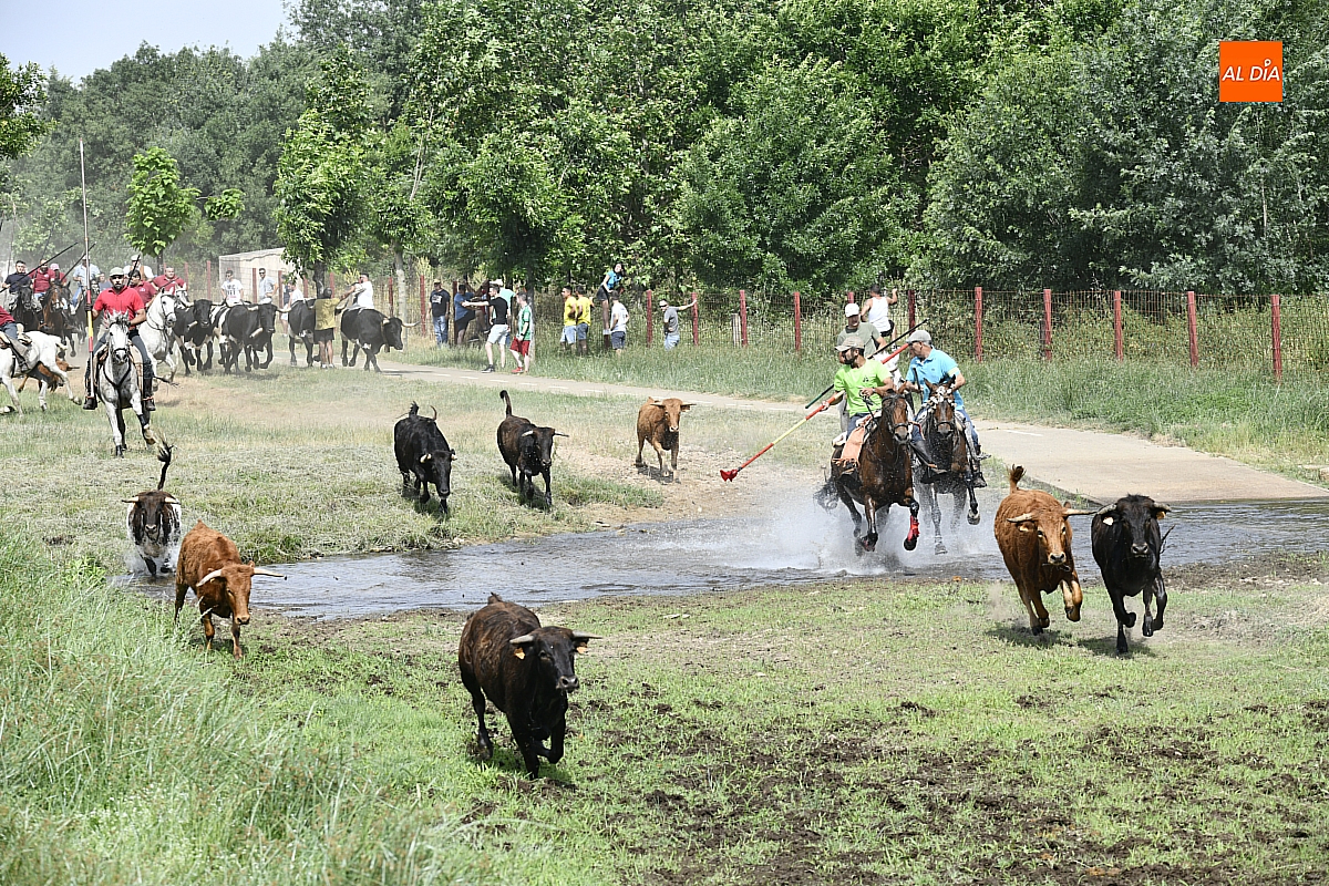 La singularidad del encierro —ambientado en un entorno natural y con un componente escénico notable— residió en el uso del propio cauce fluvial como recorrido. Aunque el río presentaba escaso caudal, tan solo visible en sus tramos más hondos, ello no restó espectacularidad al evento. Muy al contrario, la estampa de las reses cruzando entre salpicaduras de agua y el galope de los caballos proporcionó un atractivo visual que fue muy celebrado por el público.