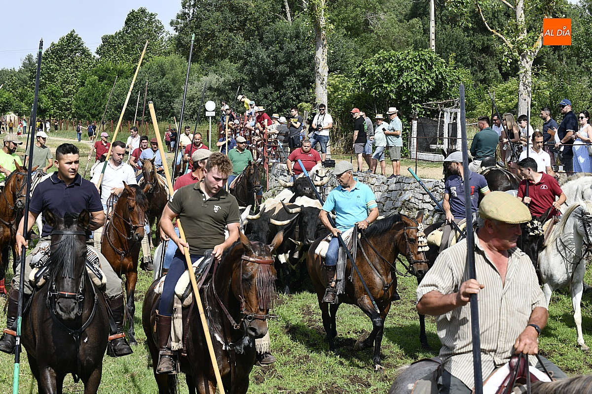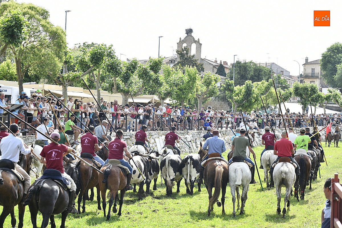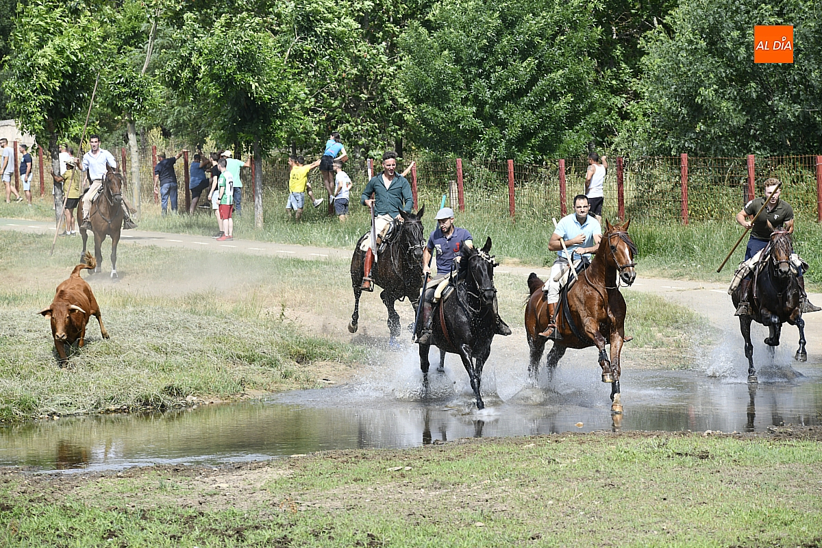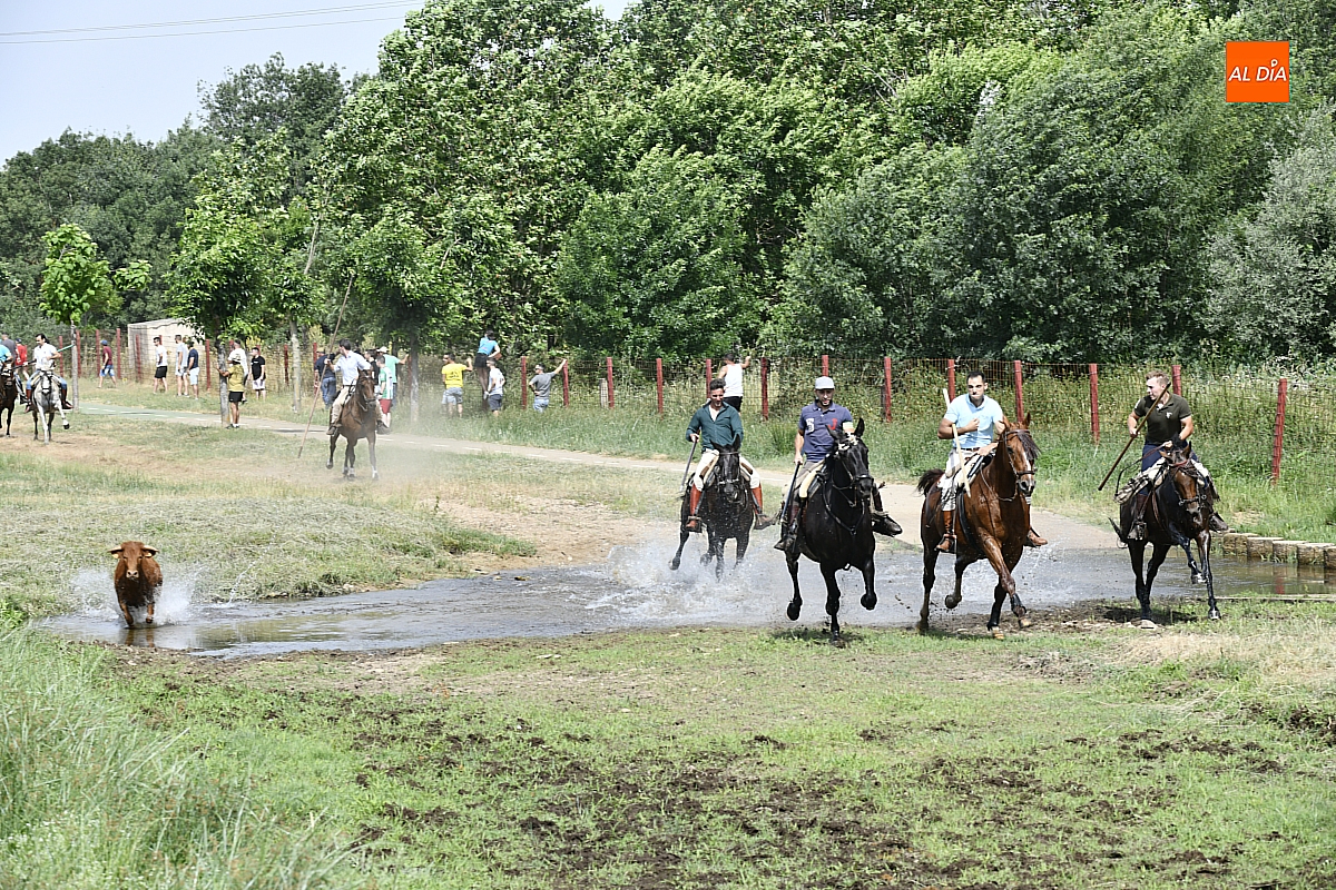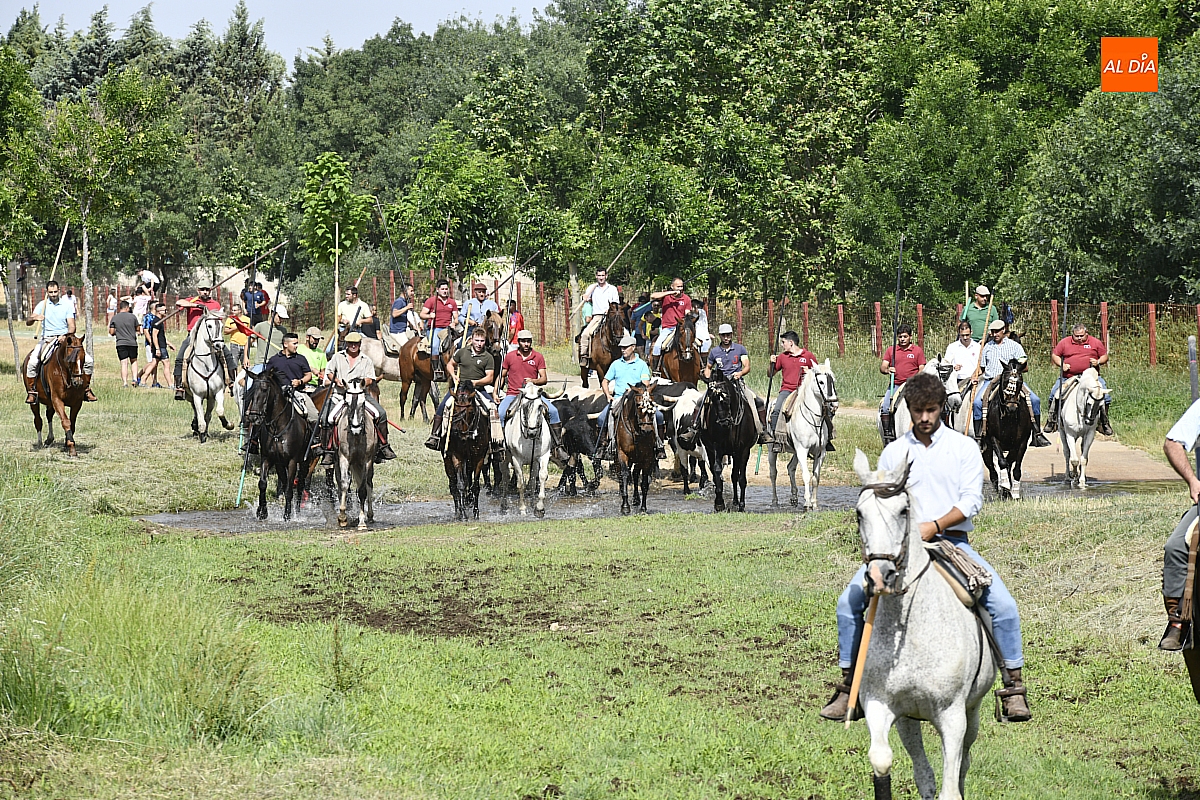 La singularidad del encierro —ambientado en un entorno natural y con un componente escénico notable— residió en el uso del propio cauce fluvial como recorrido. Aunque el río presentaba escaso caudal, tan solo visible en sus tramos más hondos, ello no restó espectacularidad al evento. Muy al contrario, la estampa de las reses cruzando entre salpicaduras de agua y el galope de los caballos proporcionó un atractivo visual que fue muy celebrado por el público.