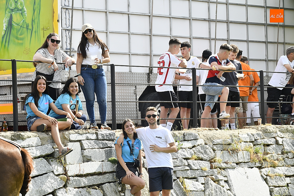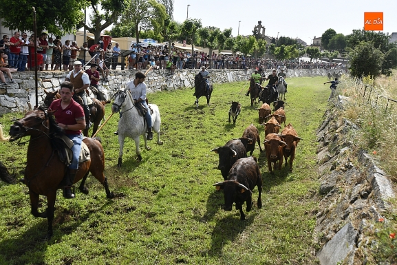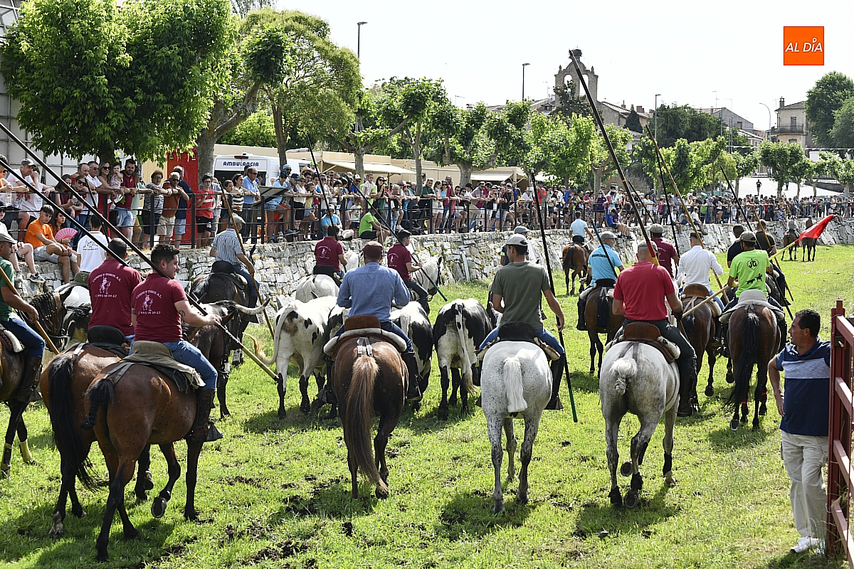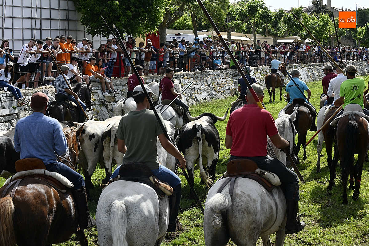 La jornada comenzó con un desayuno popular a base de huevos fritos con farinato, ofrecido por el Ayuntamiento a las puertas de la antigua iglesia, situada a escasa distancia del lugar del encierro. Posteriormente, ya en el centro urbano, una “probadilla” de vacas en la plaza portátil instalada para la ocasión permitió a los más intrépidos medirse con el ganado, en una actividad amenizada por la charanga El Bombazo.