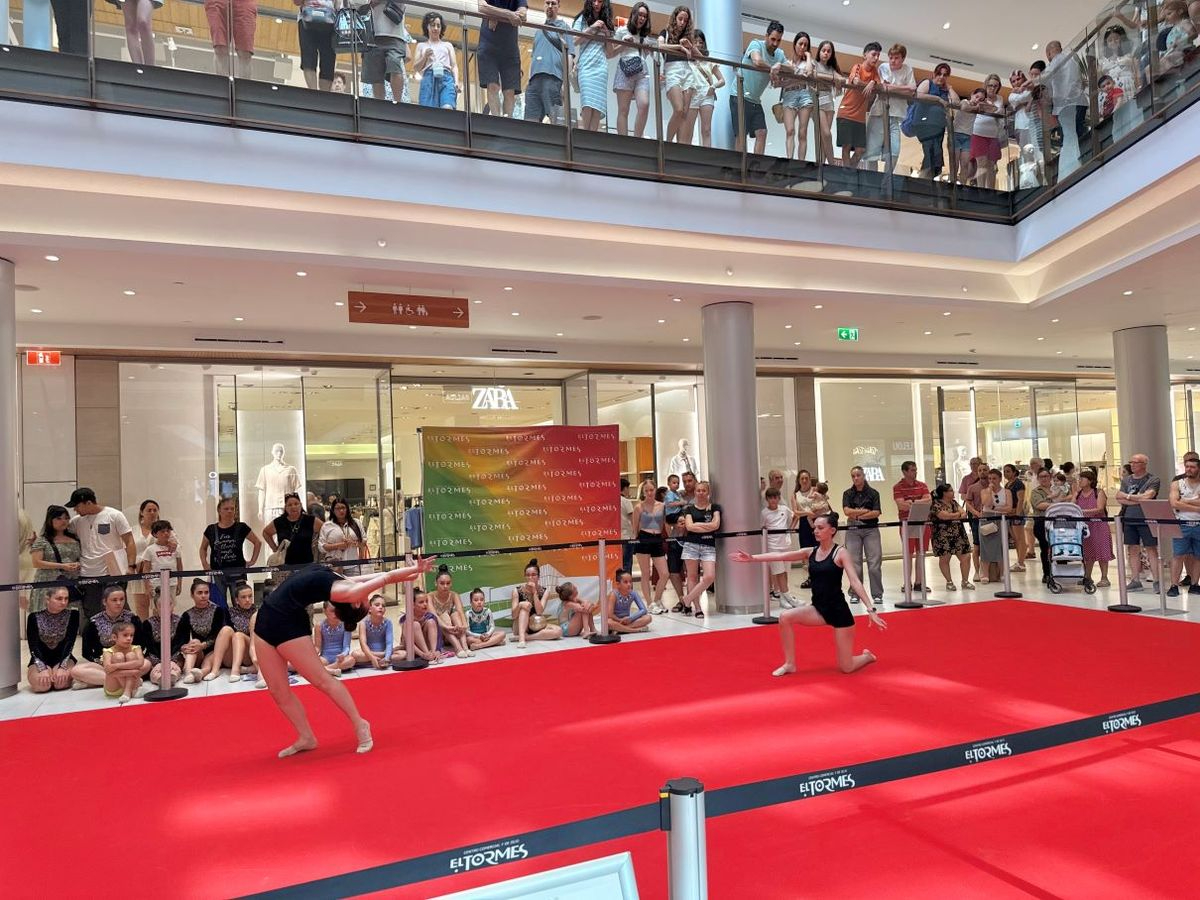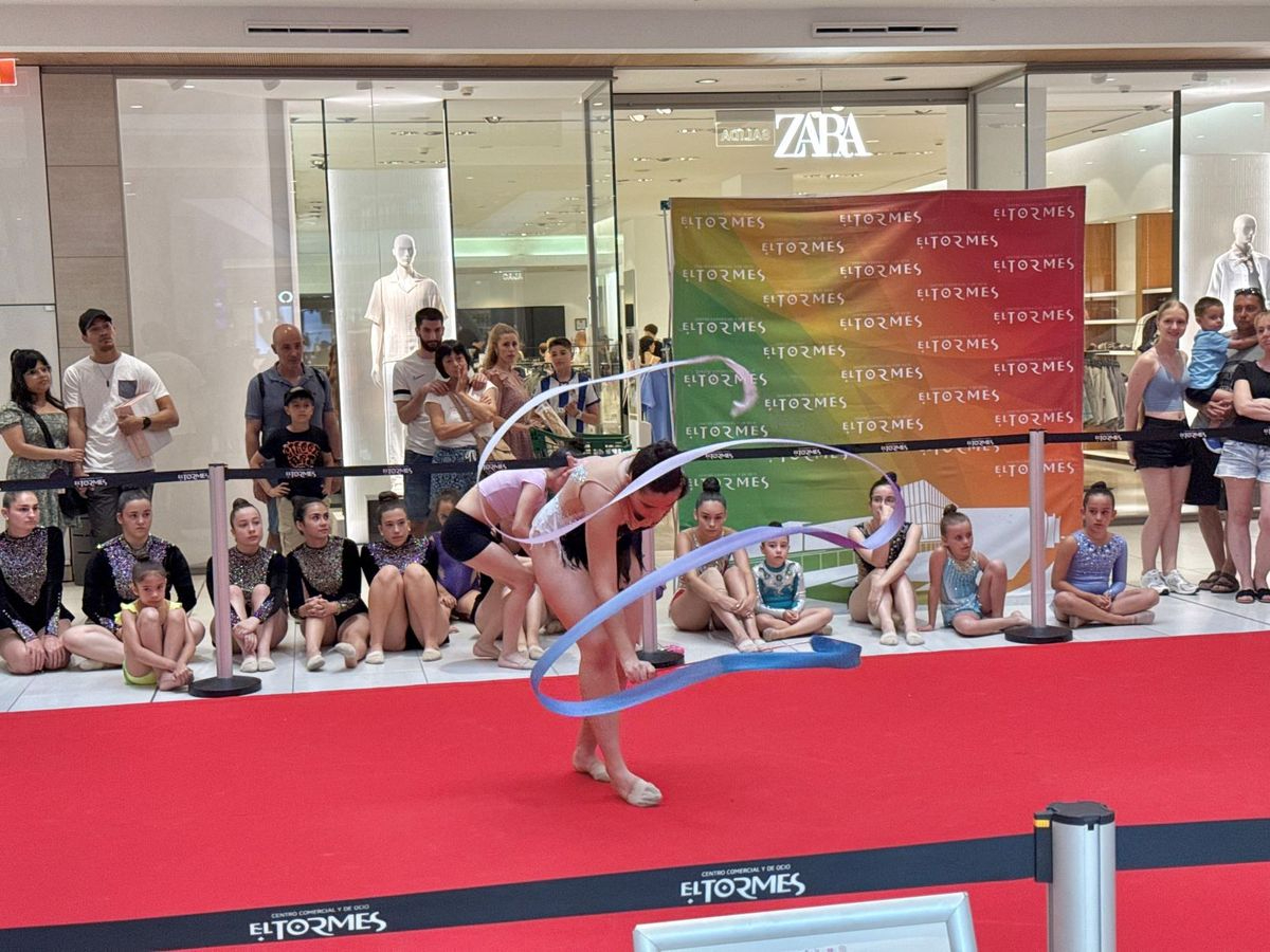 La plaza central del Centro Comercial El Tormes ha sido este sábado 21 de junio el escenario de una vibrante exhibición de gimnasia rítmica a cargo del Club Deportivo Salmantino, que ha reunido a un numeroso público entre aplausos, emoción y momentos memorables.